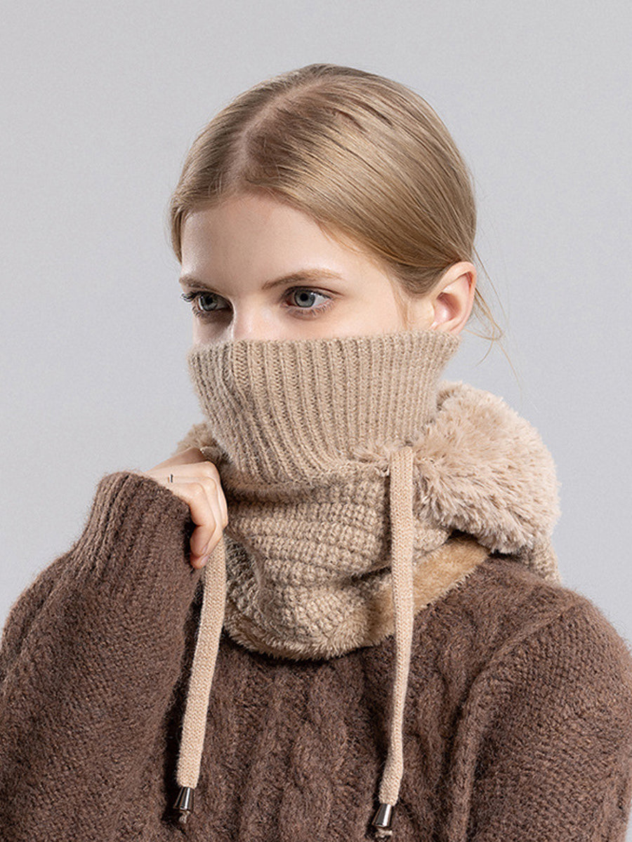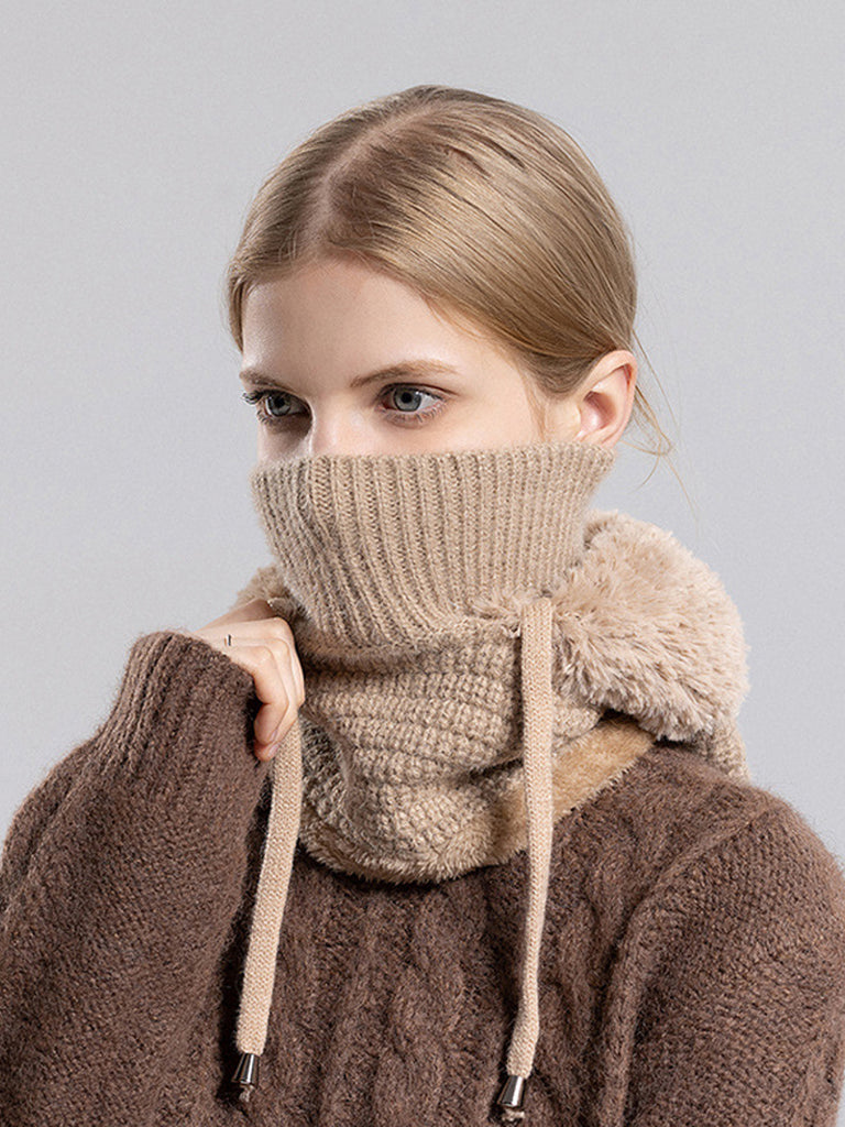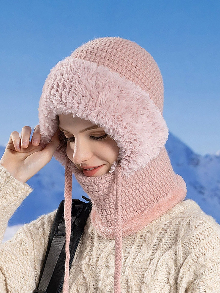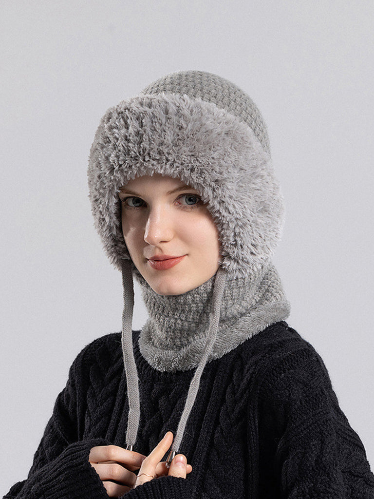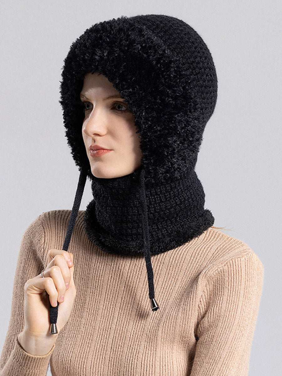 כובע צעיף קטיפה סרוג חם לנשים בחורף