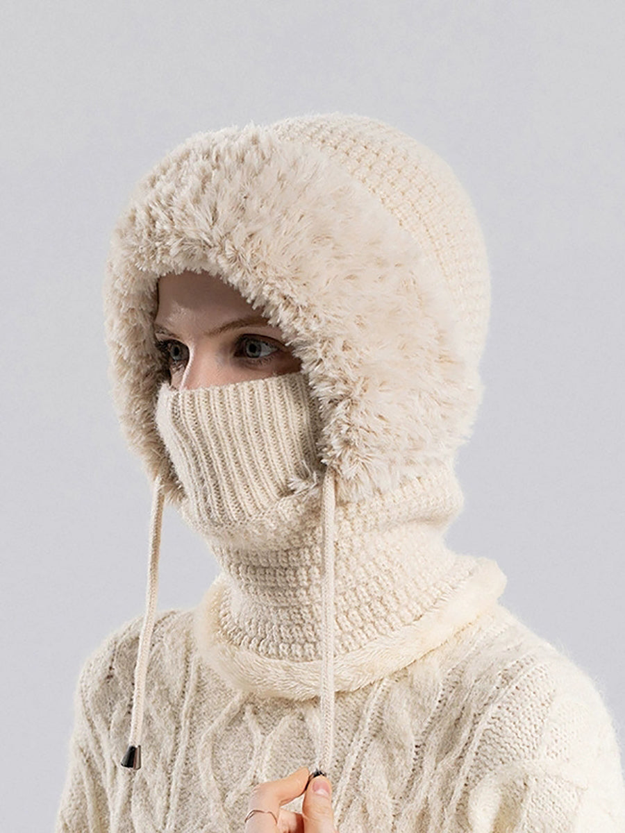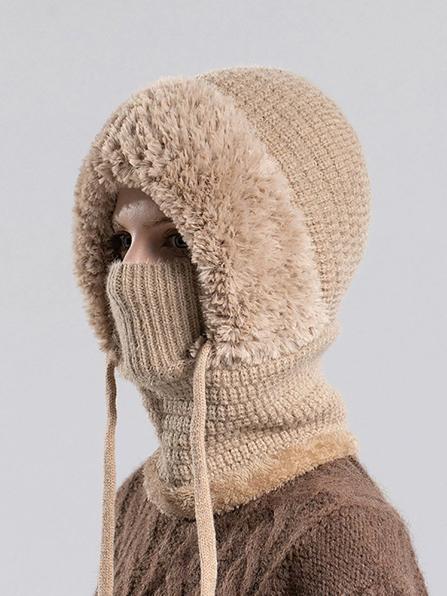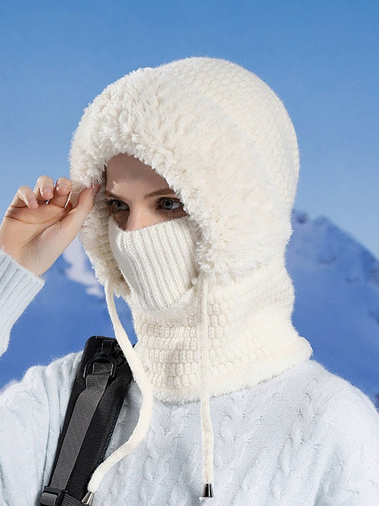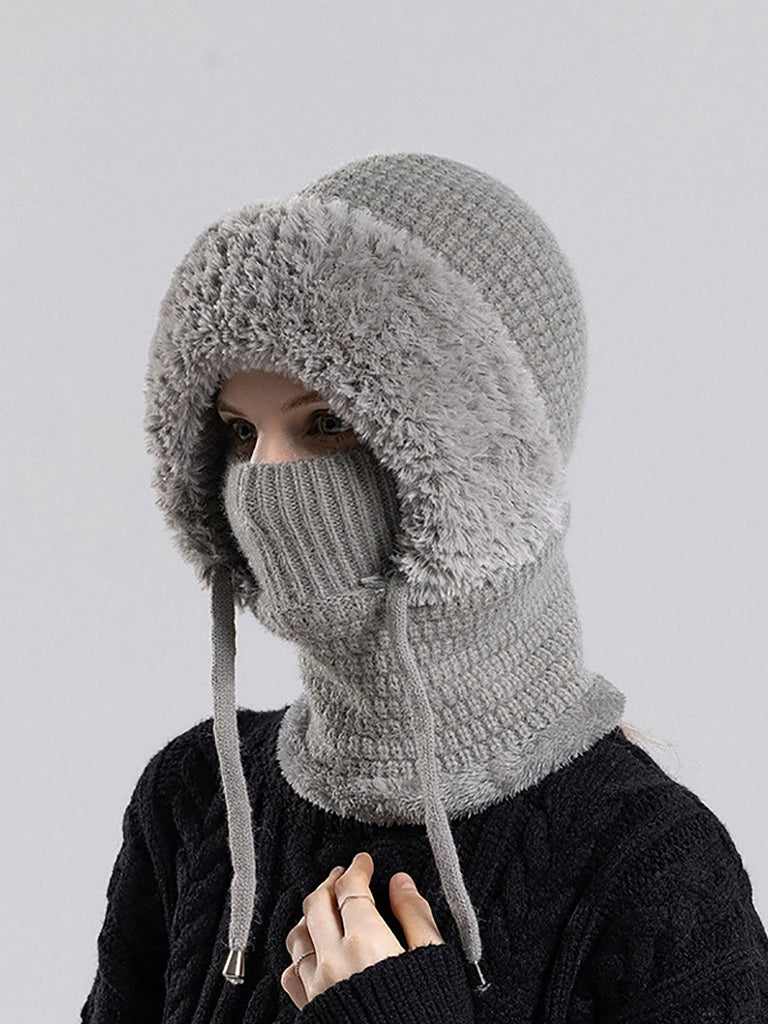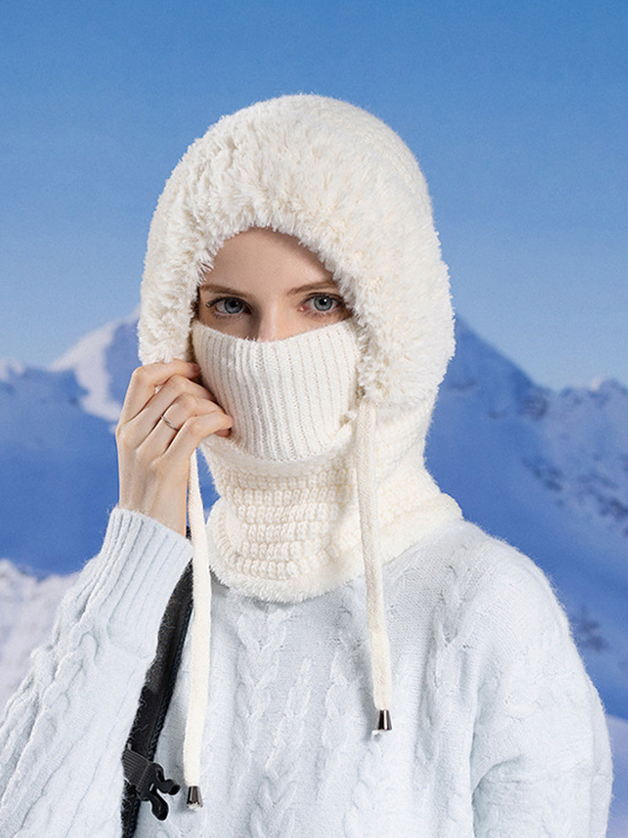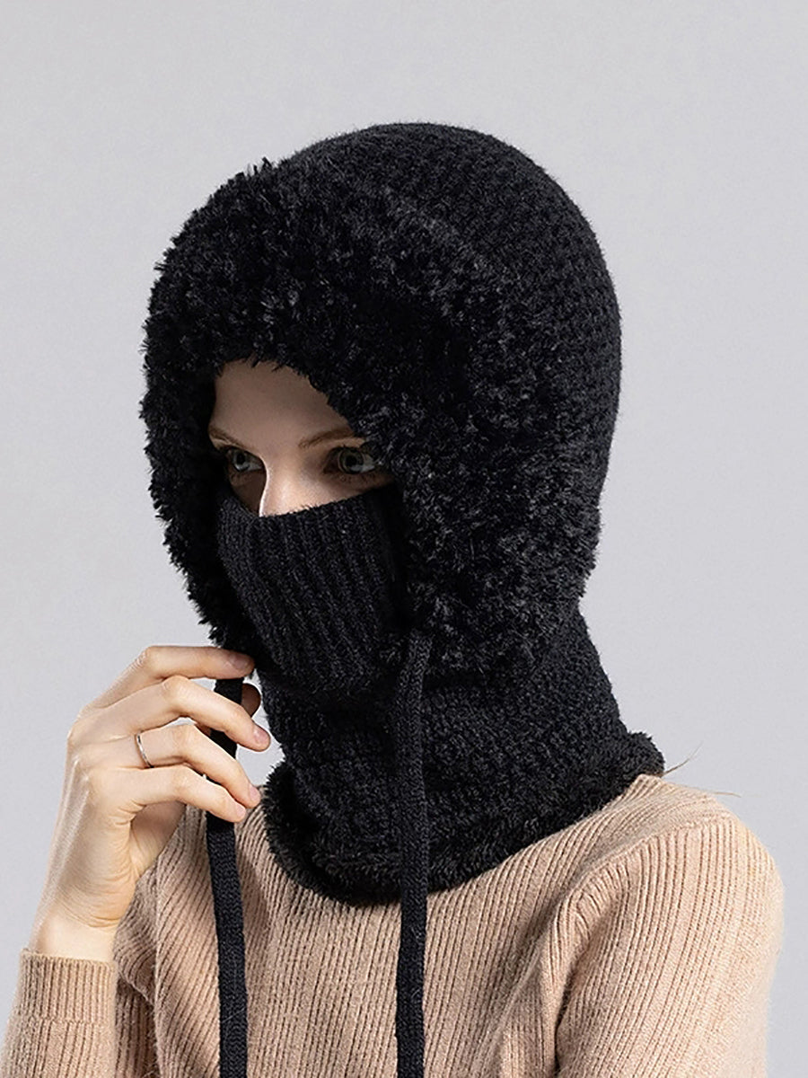 כובע צעיף קטיפה סרוג חם לנשים בחורף