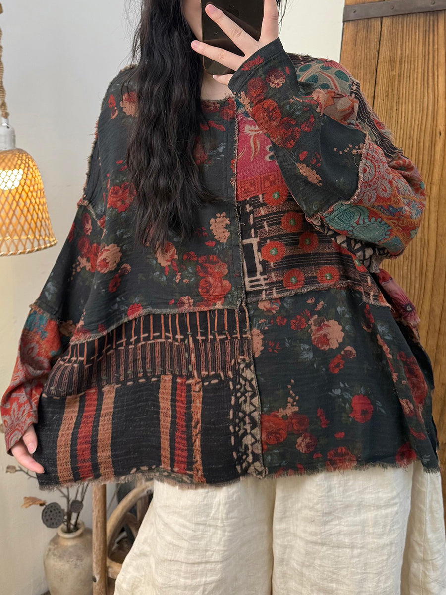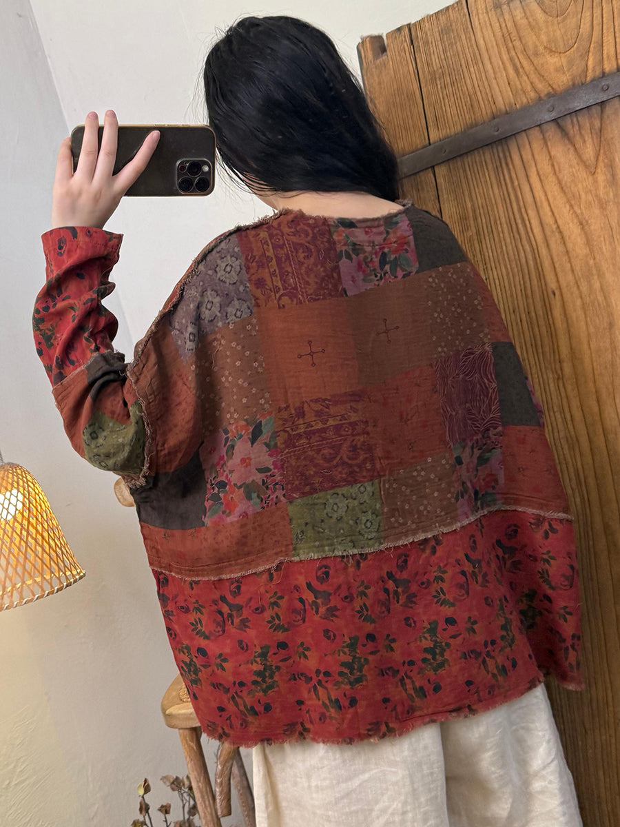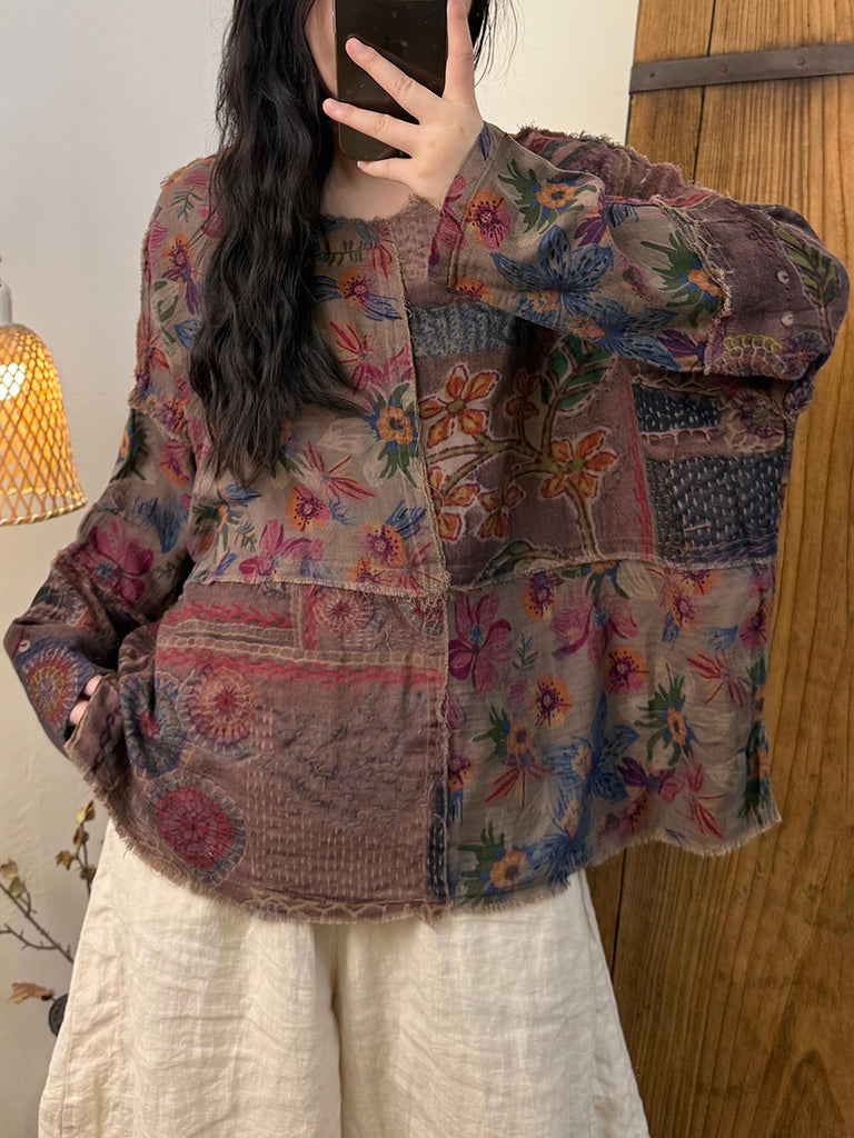 מעיל כותנה עם צווארון O ואגלי פרחוניים בסגנון רטרו לנשים