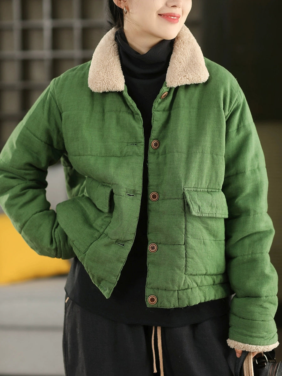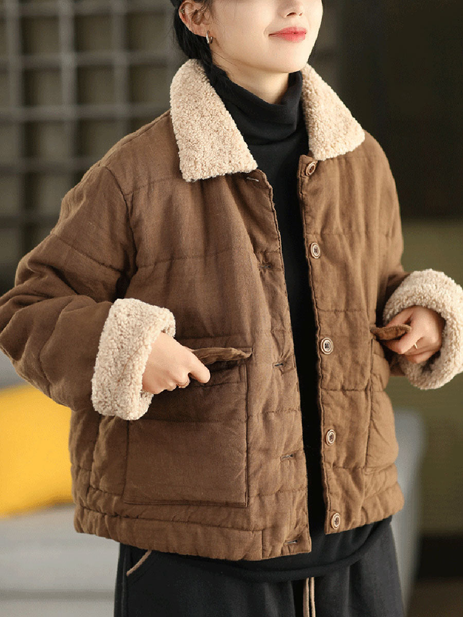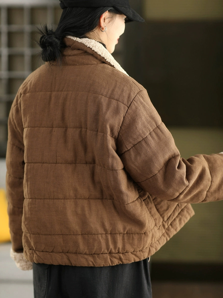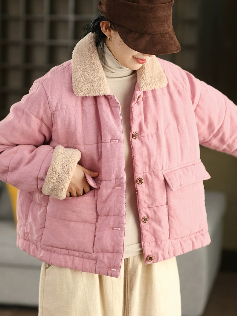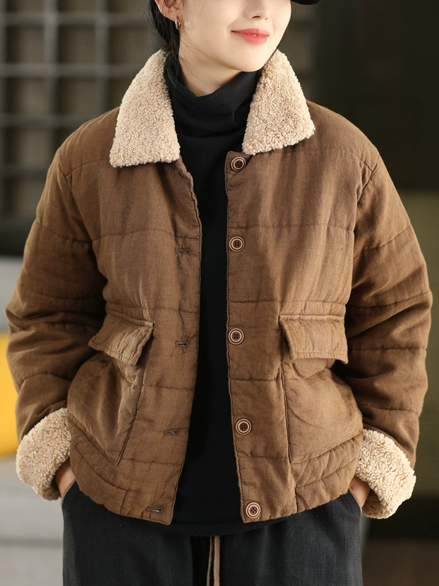 מעיל חורף רטרו לנשים עשוי פליז 100% פשתן מרופד