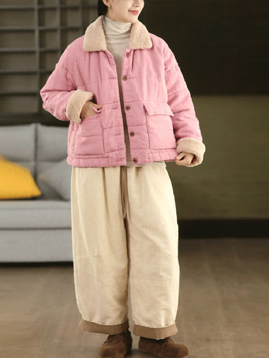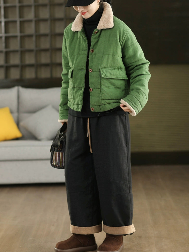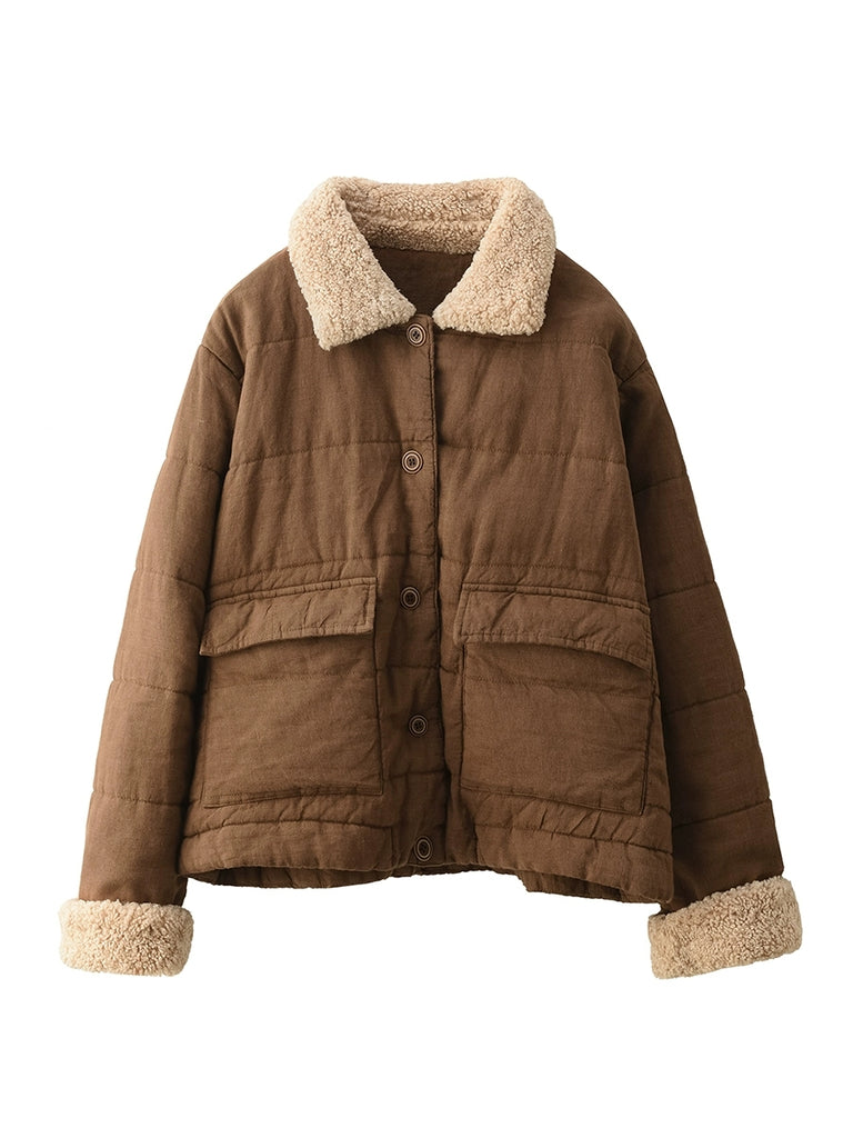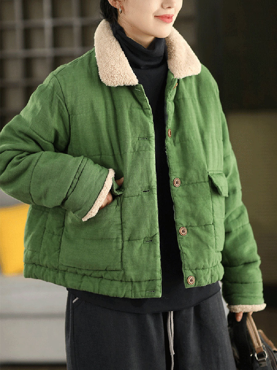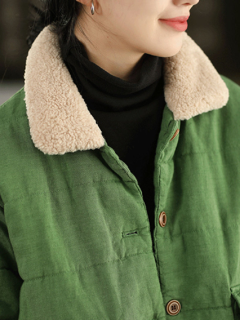 מעיל חורף רטרו לנשים עשוי פליז 100% פשתן מרופד