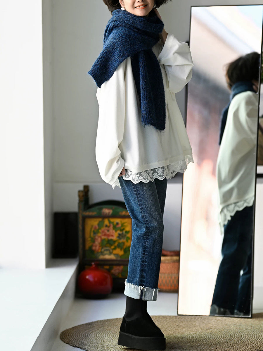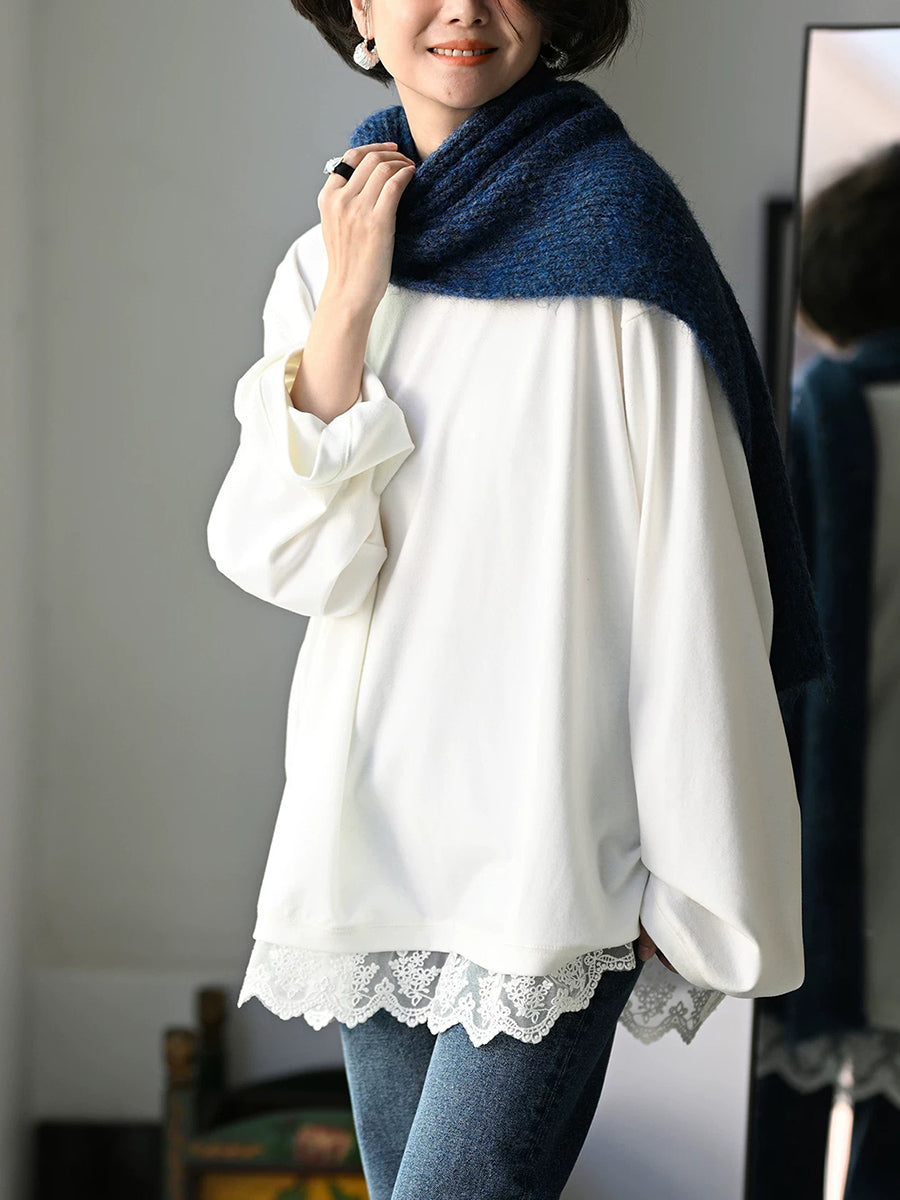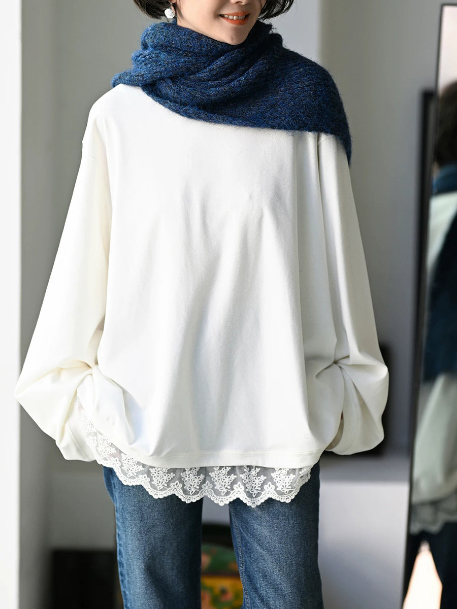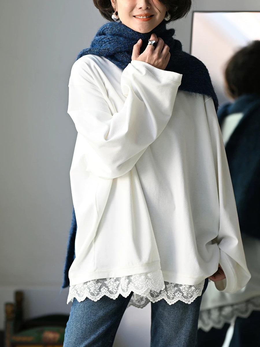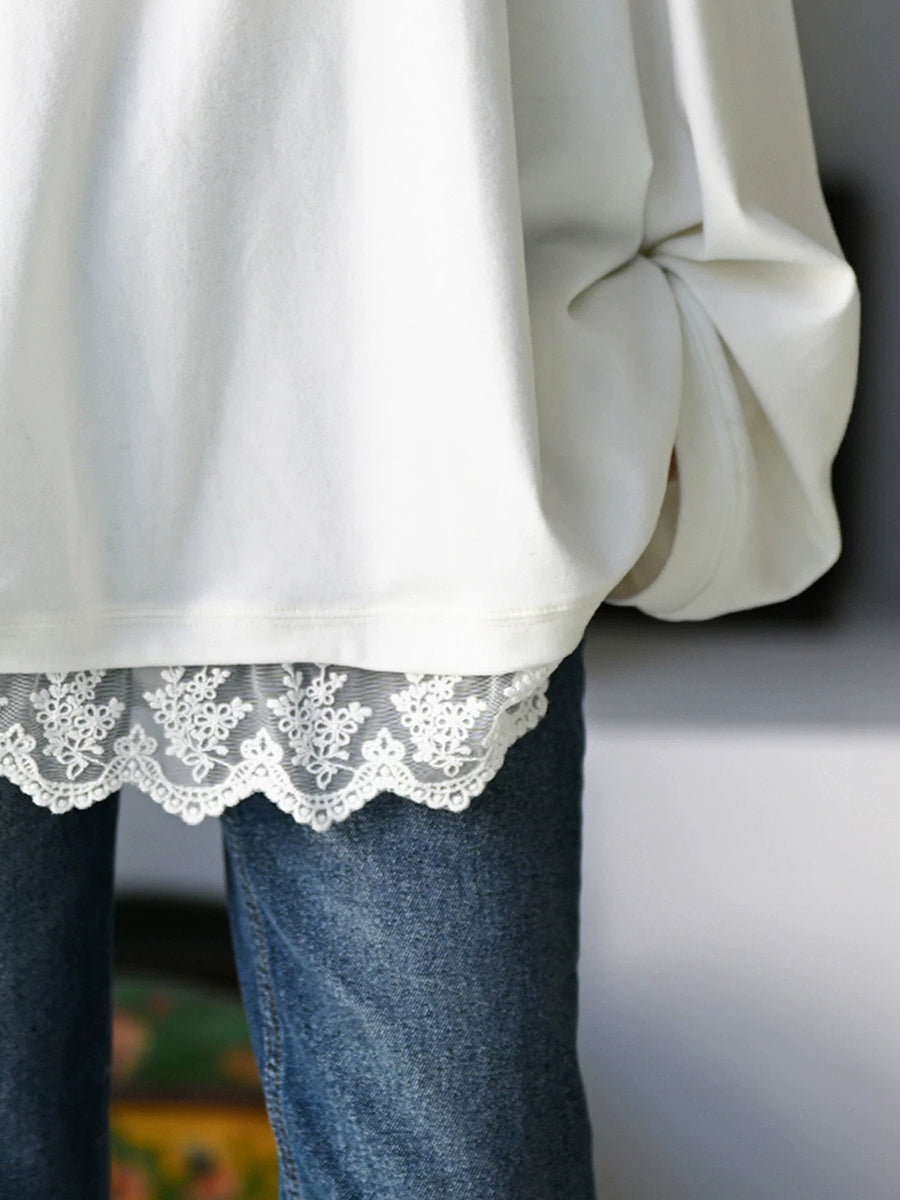 חולצה אומנותית סתיו עם צווארון O תחרה לנשים 100% כותנה