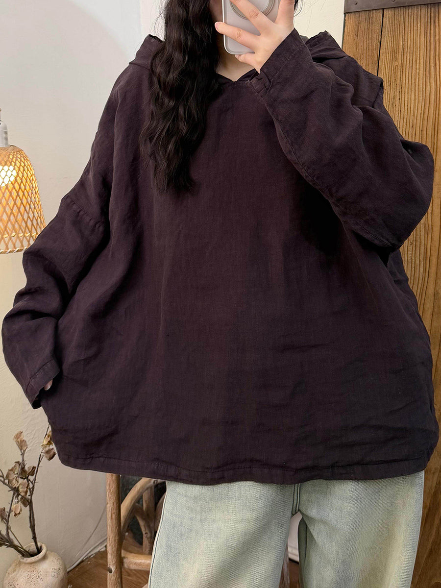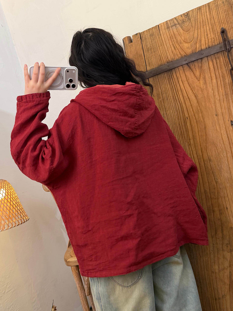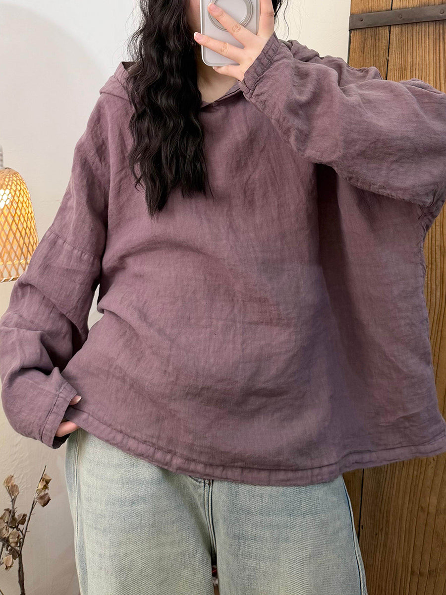 קפוצ'ון פשתן בצבע טהור בסגנון סתיו לנשים