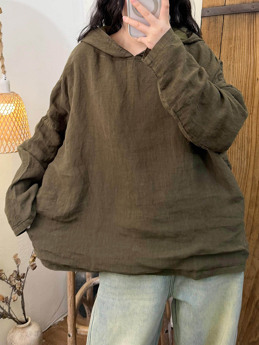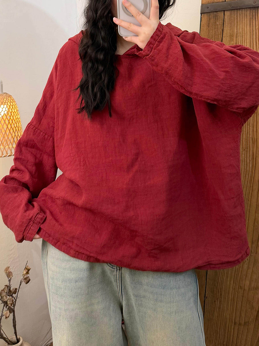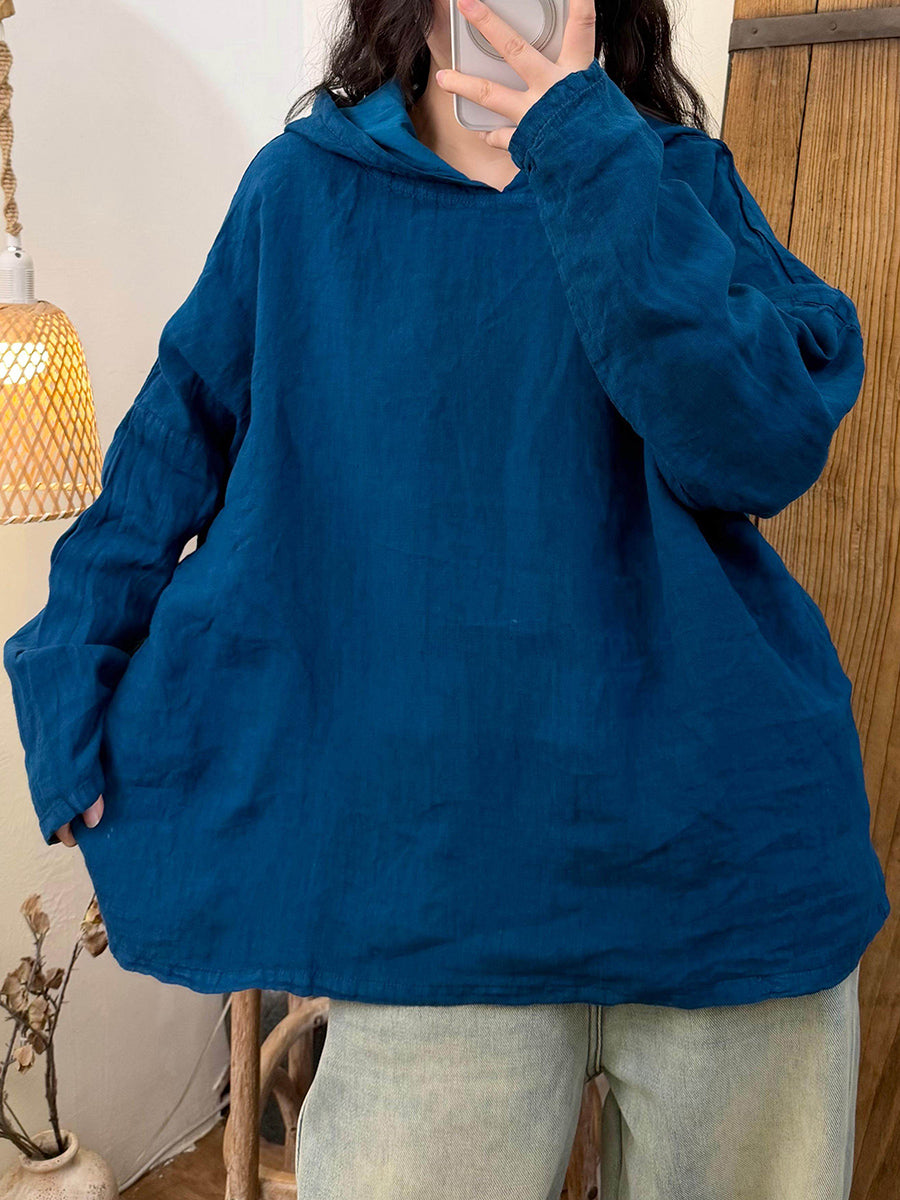 קפוצ'ון פשתן בצבע טהור בסגנון סתיו לנשים