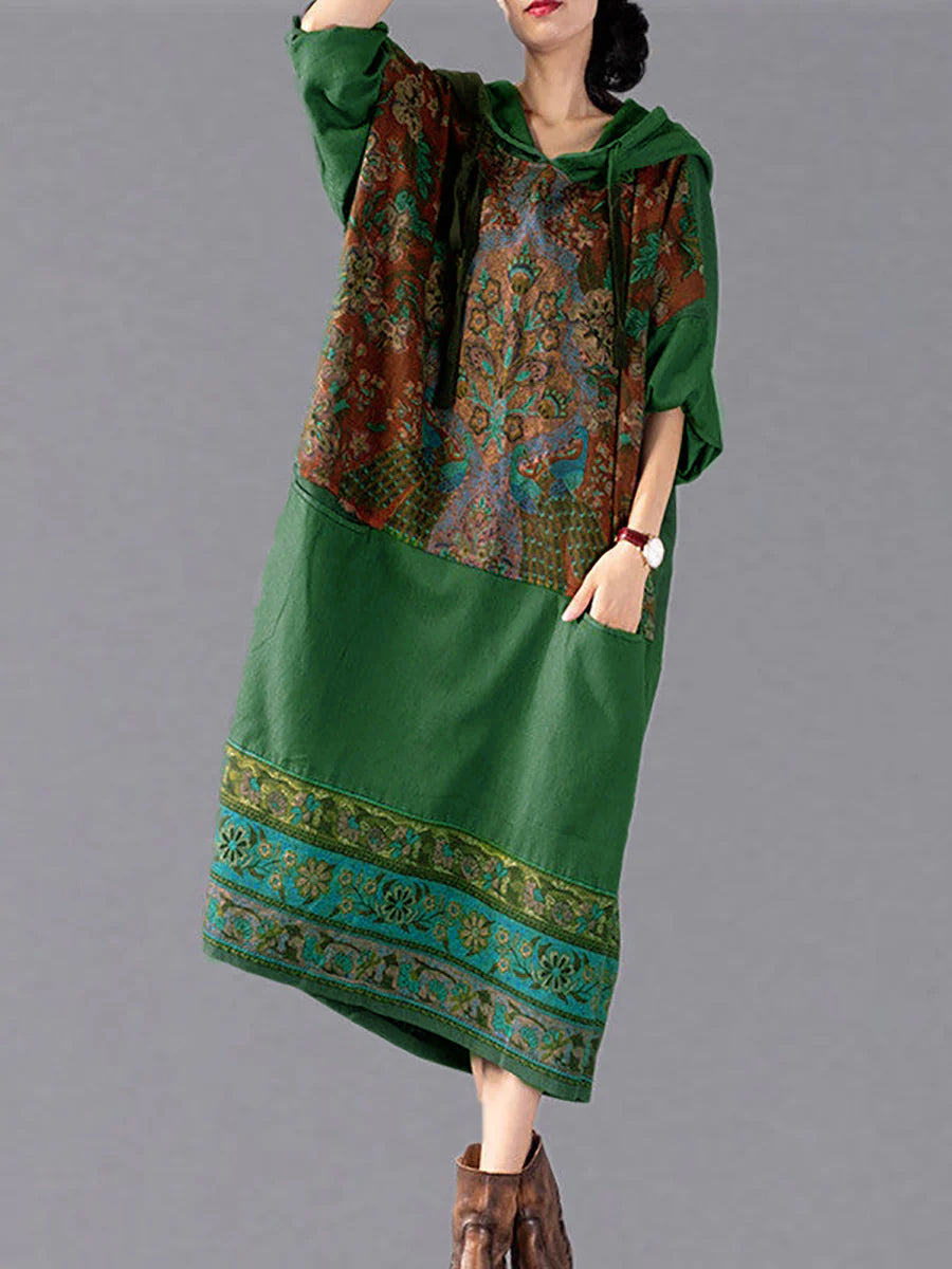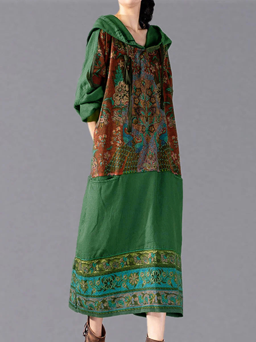 נשים אתני פרח ספייס ארוך כיס שמלת ברדס