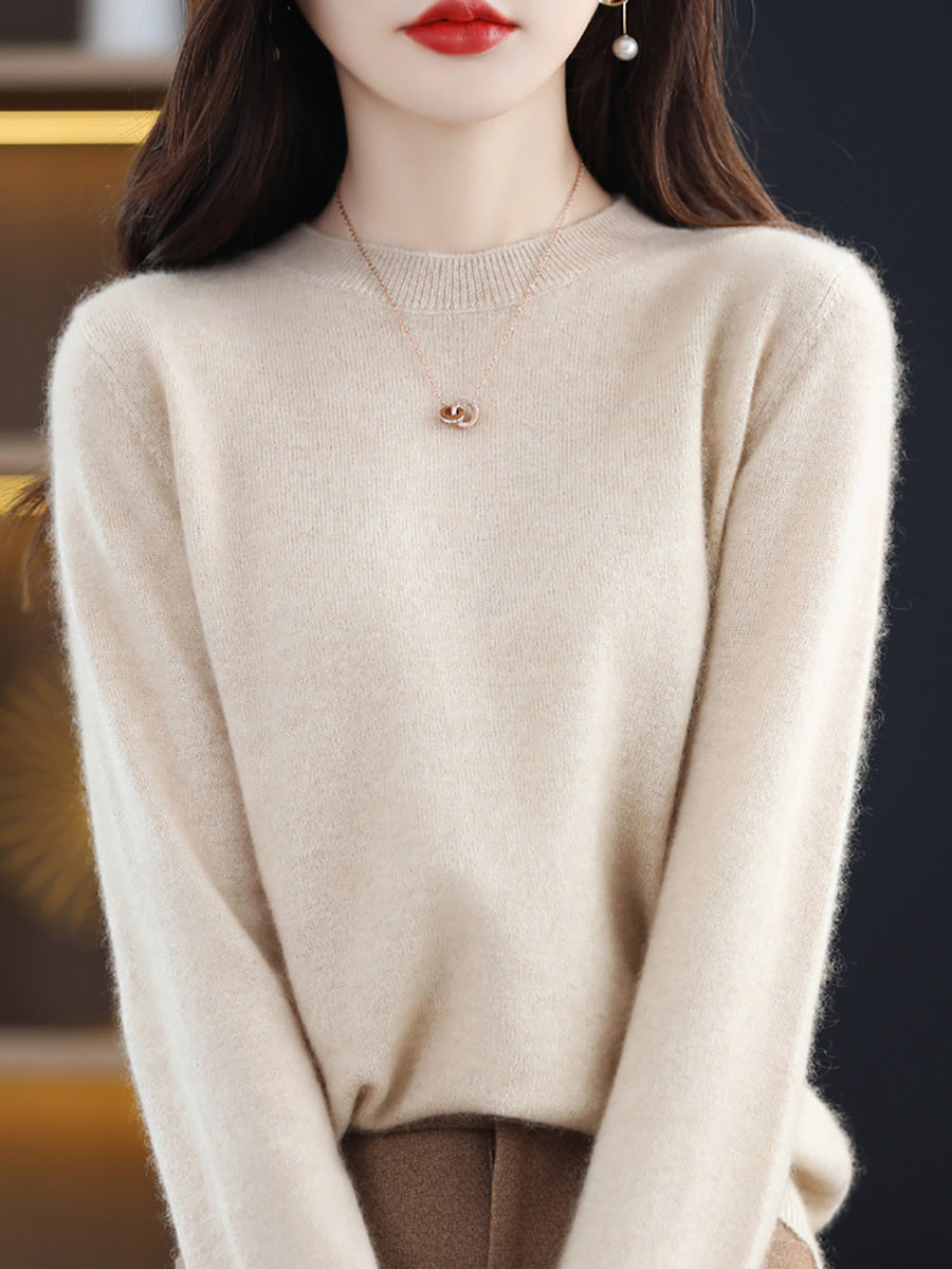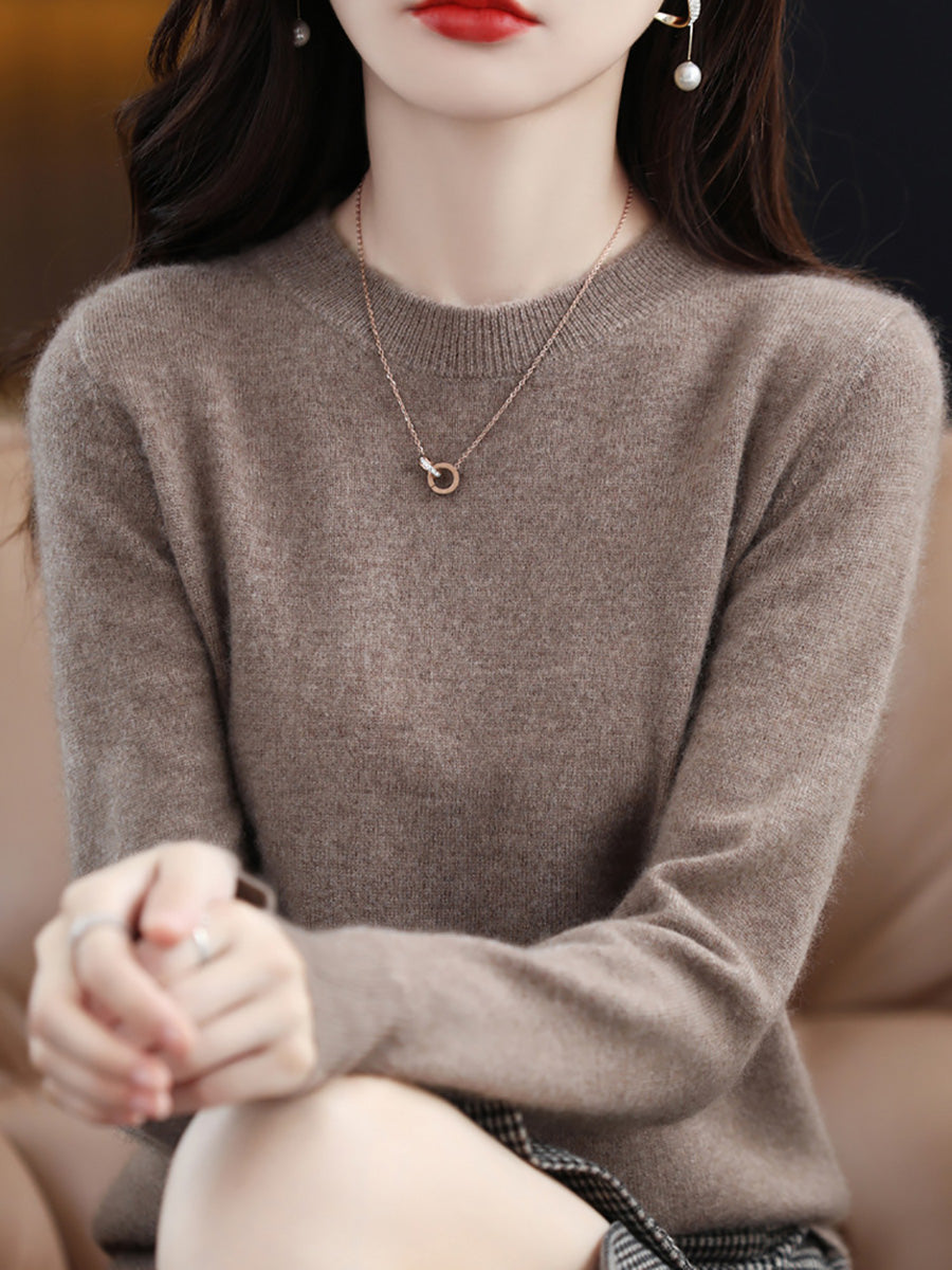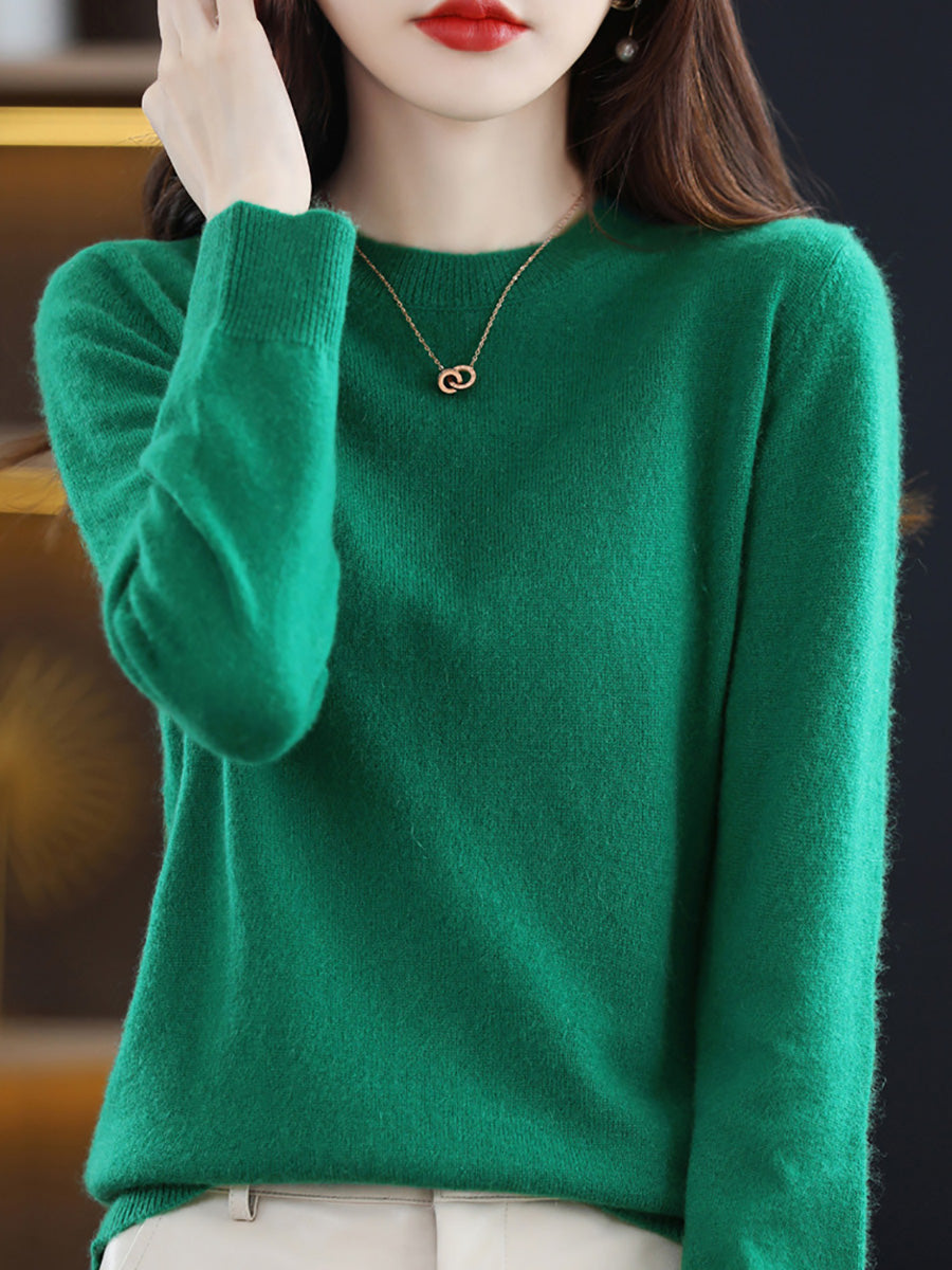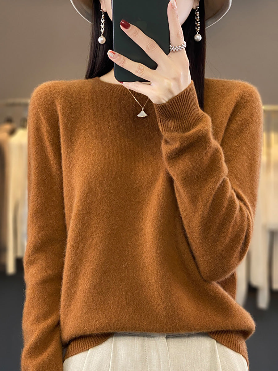 סוודר צמר O-צוואר בצבע טהור אומנותי לסתיו לנשים