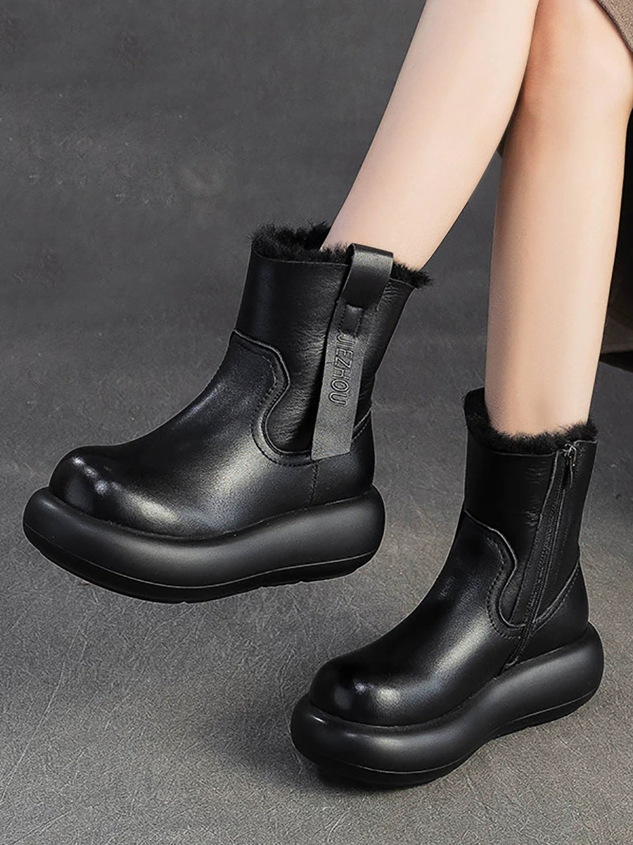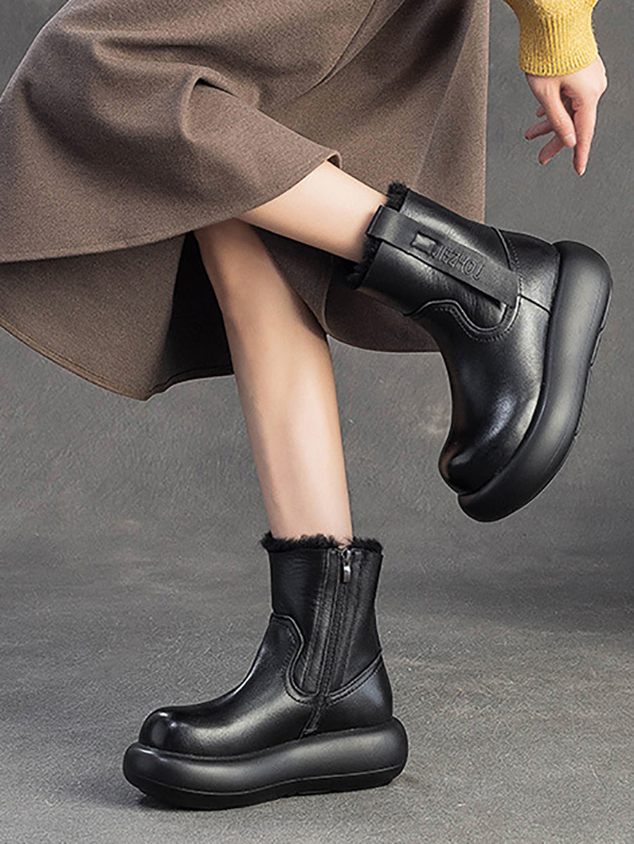 מגפי חורף מעור אמיתי עם בטנת פליז לנשים