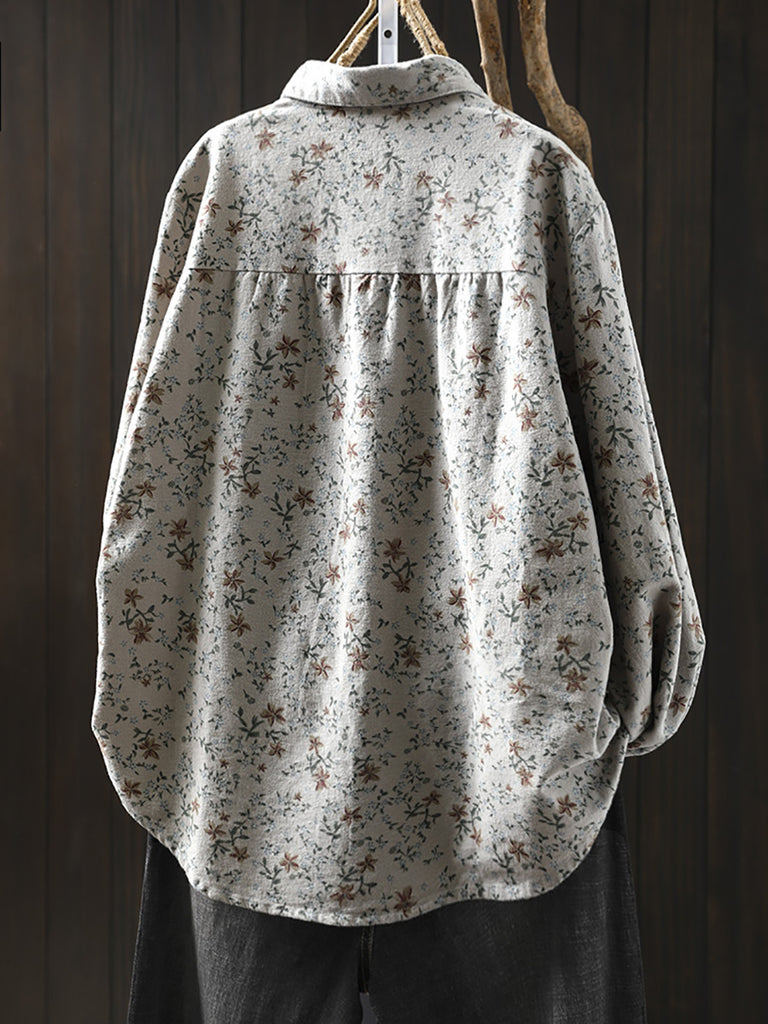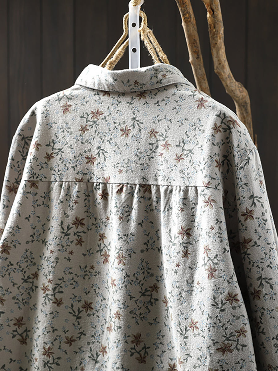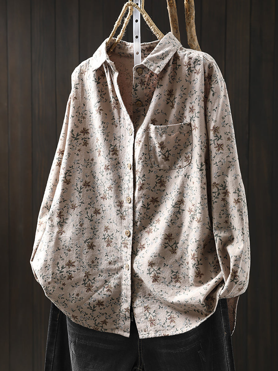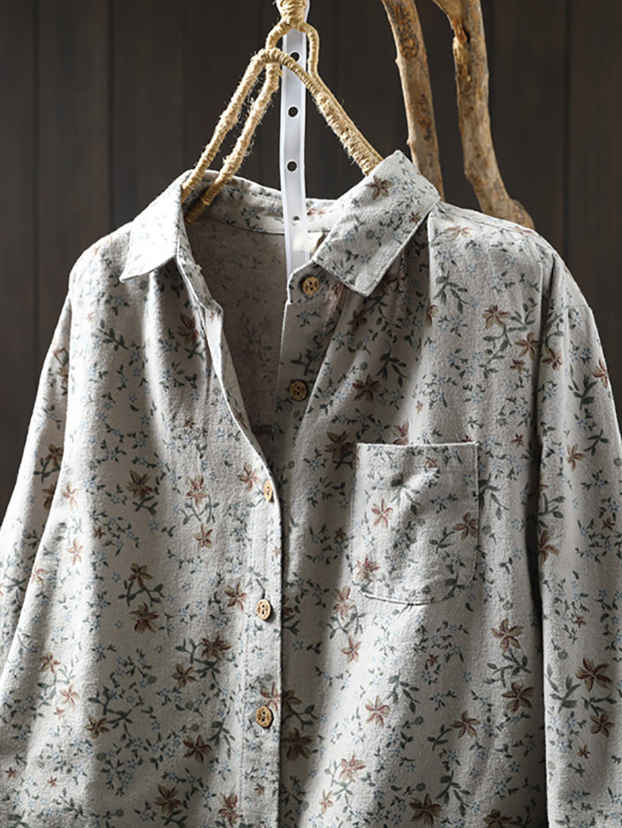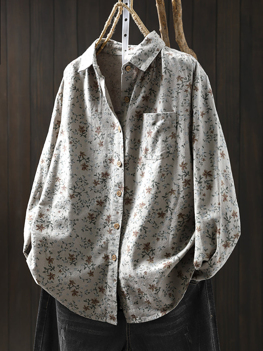 חולצת חורף אומנותית לנשים עם צווארון הפוך פרחונית 100% כותנה