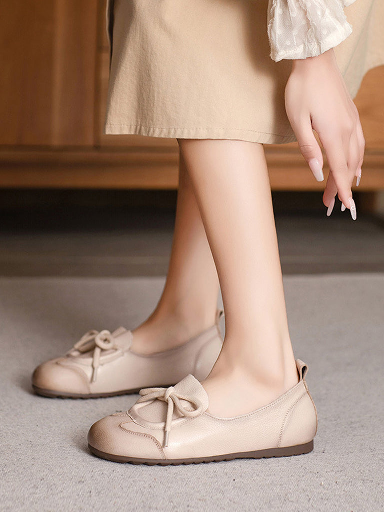 נעליים שטוחות מעור אמיתי עם רצועות שוליים לנשים בסתיו