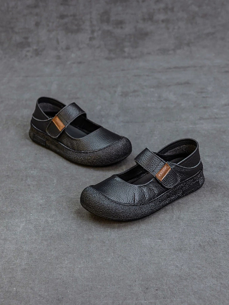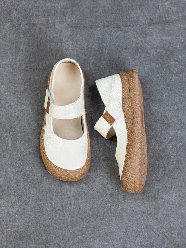 נעליים שטוחות מעור אמיתי מזדמן לנשים בצבע אחיד