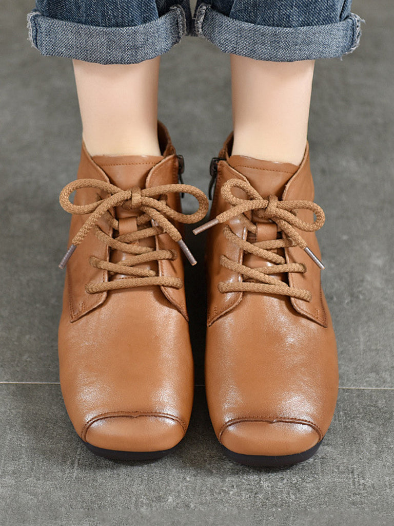 מגפי קרסול עם עקב נמוך מעור אמיתי לנשים בסתיו