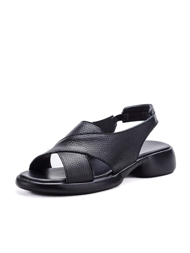סנדלי עור אמיתיים מזדמנים לנשים עם עקבים נמוכים בצורת צלב