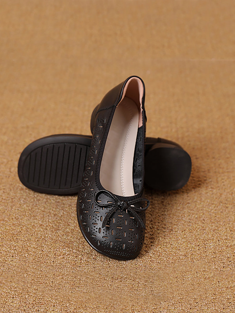 נעלי קיץ אומנותיות מעור אמיתי עם עקב נמוך לנשים