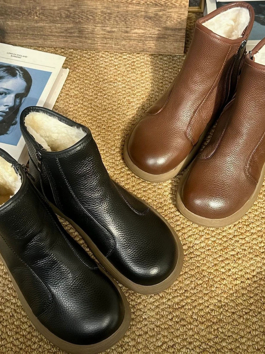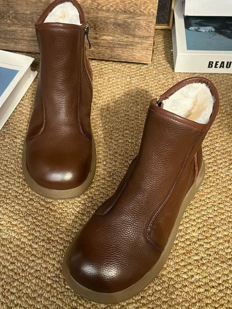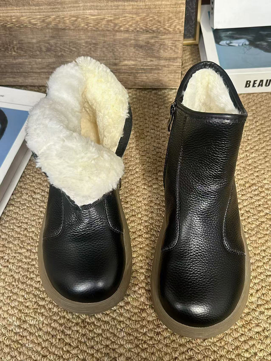 מגפי חורף מעור אמיתי עם בטנת פליז לנשים