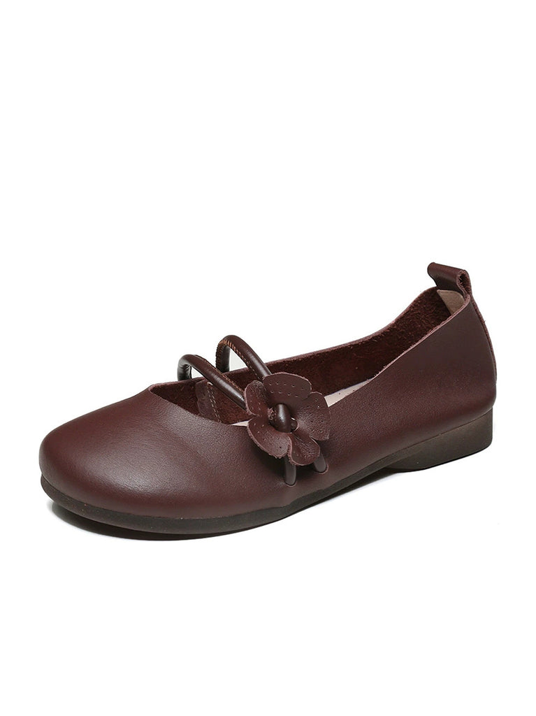 נעלי עור רכות אומנותיות עם עקבים נמוכים של פרח לנשים