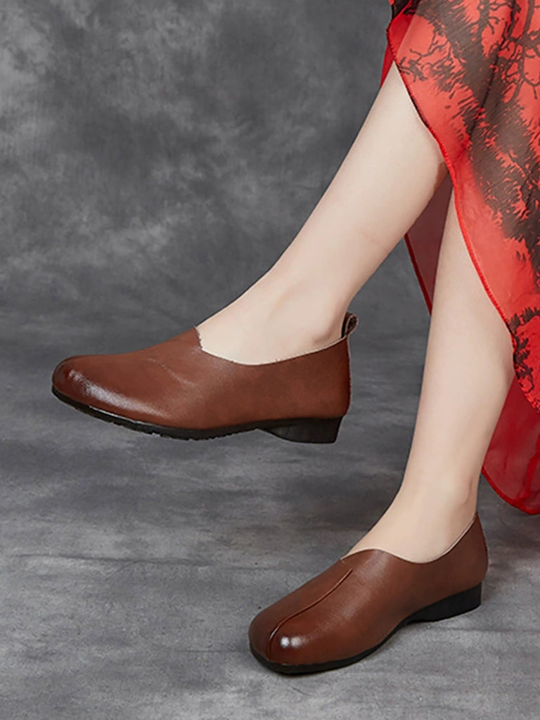 נעלי עור אמיתי רכות לנשים עם עקב נמוך