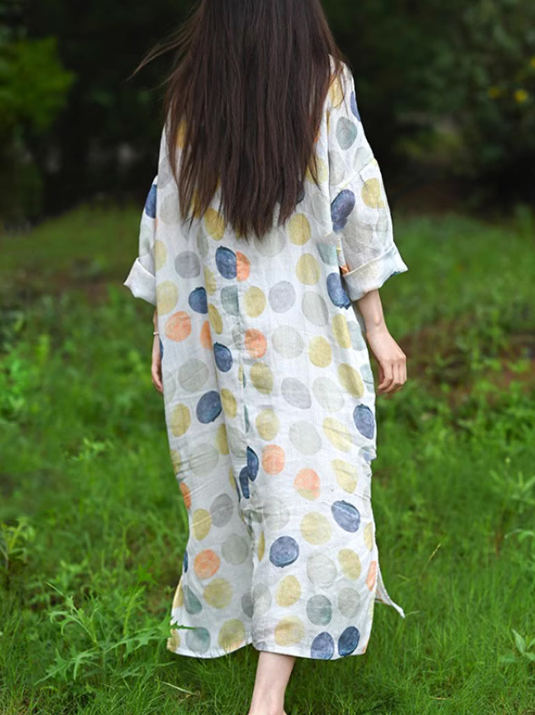 שמלת גלימה אתנית צבעונית עם נקודות 100% רמי לקיץ לנשים