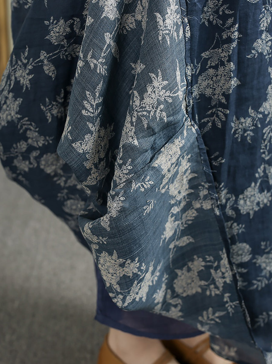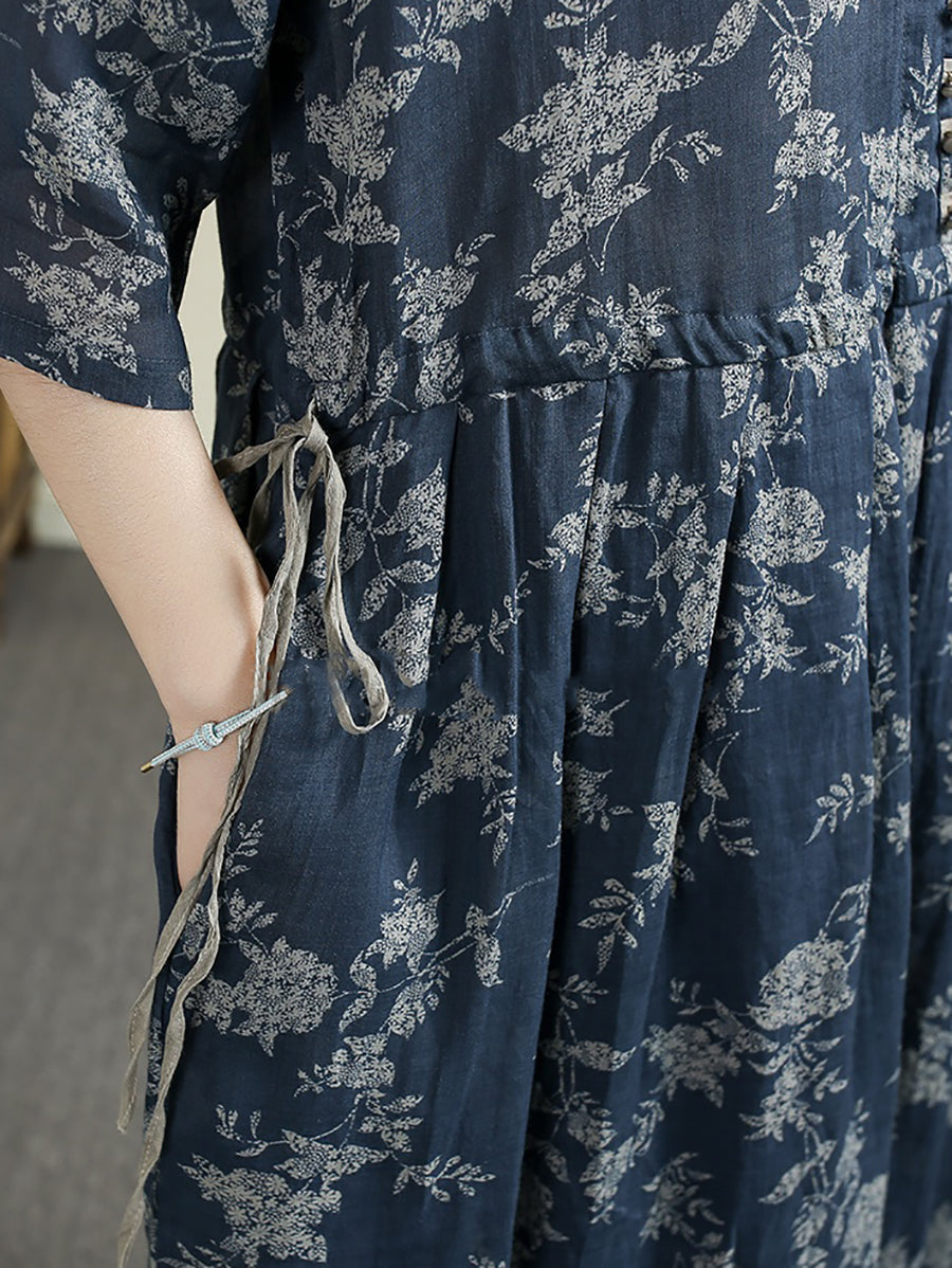 שמלת קיץ וינטג' פרחונית עם צווארון V 100% רמי לנשים