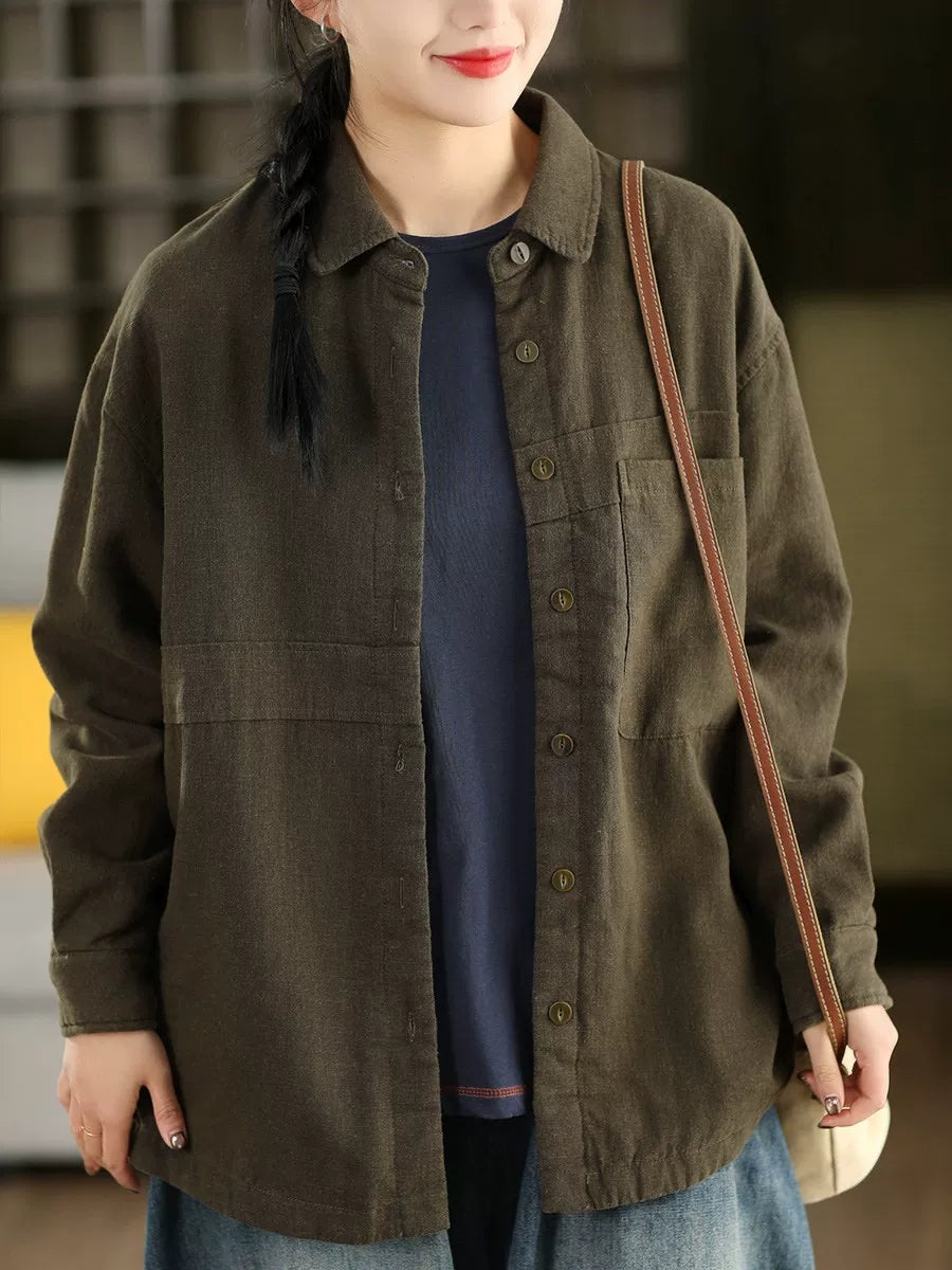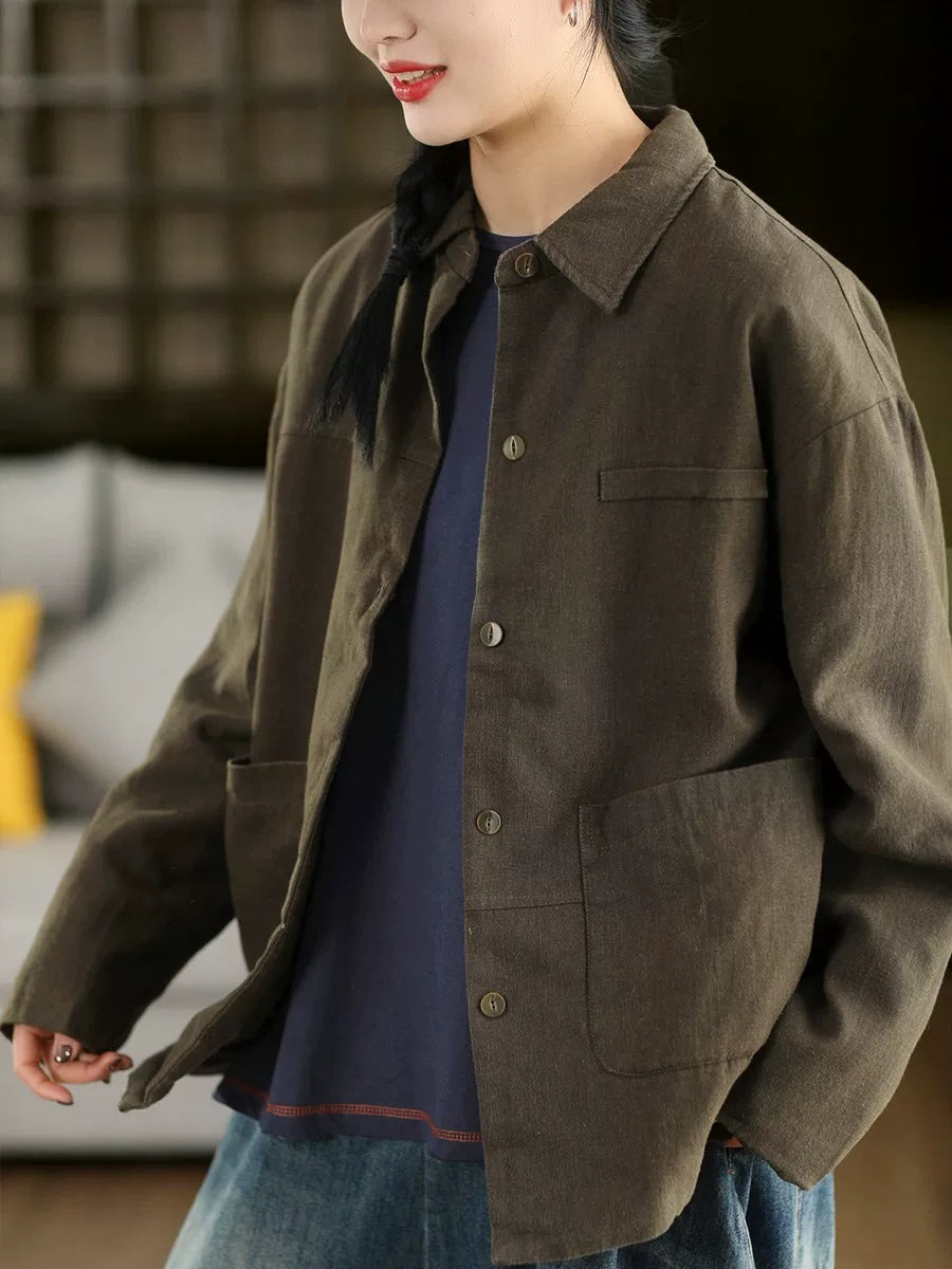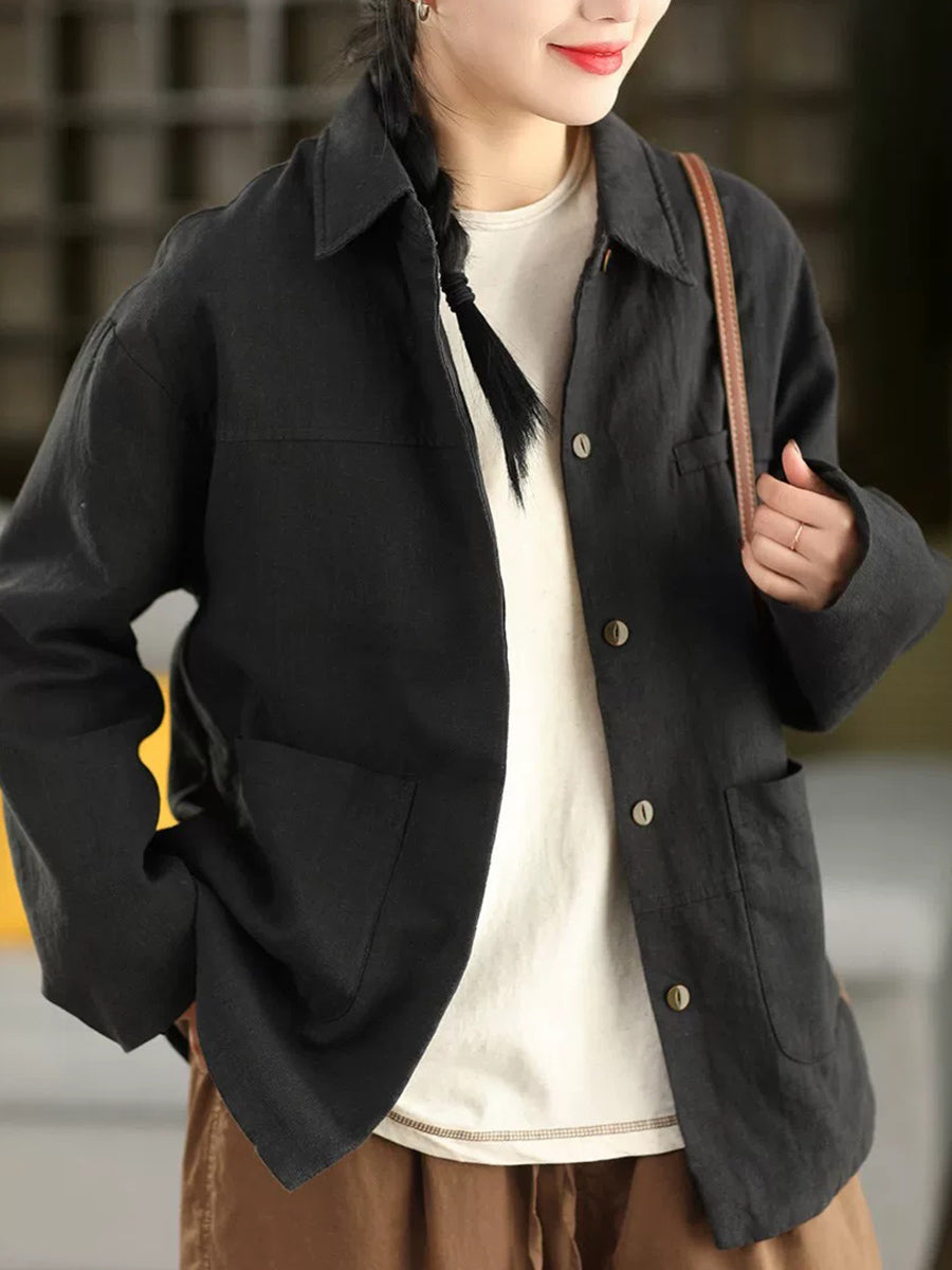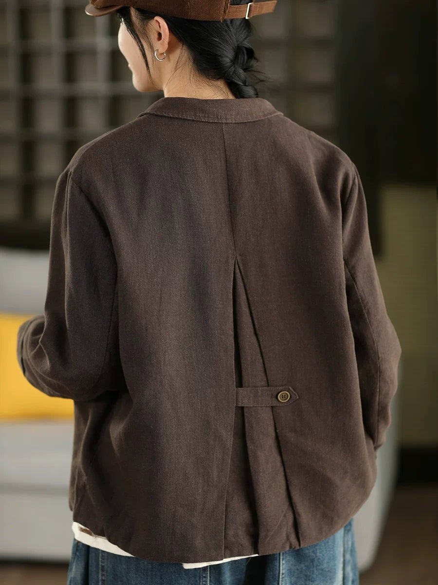 מעיל אביב לנשים בצבע טהור עם צווארון הפוך 100% פשתן