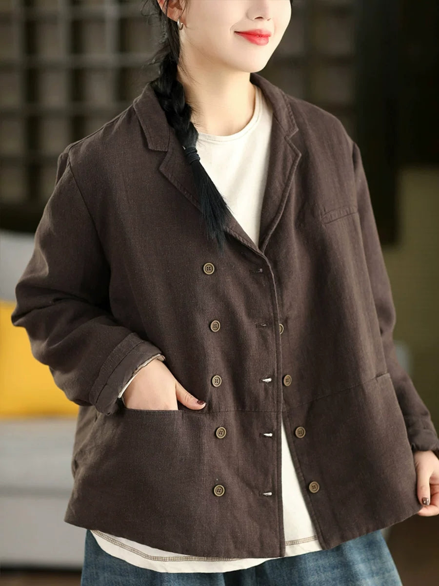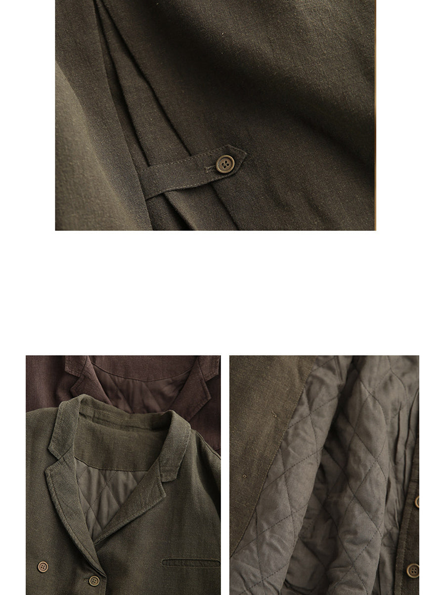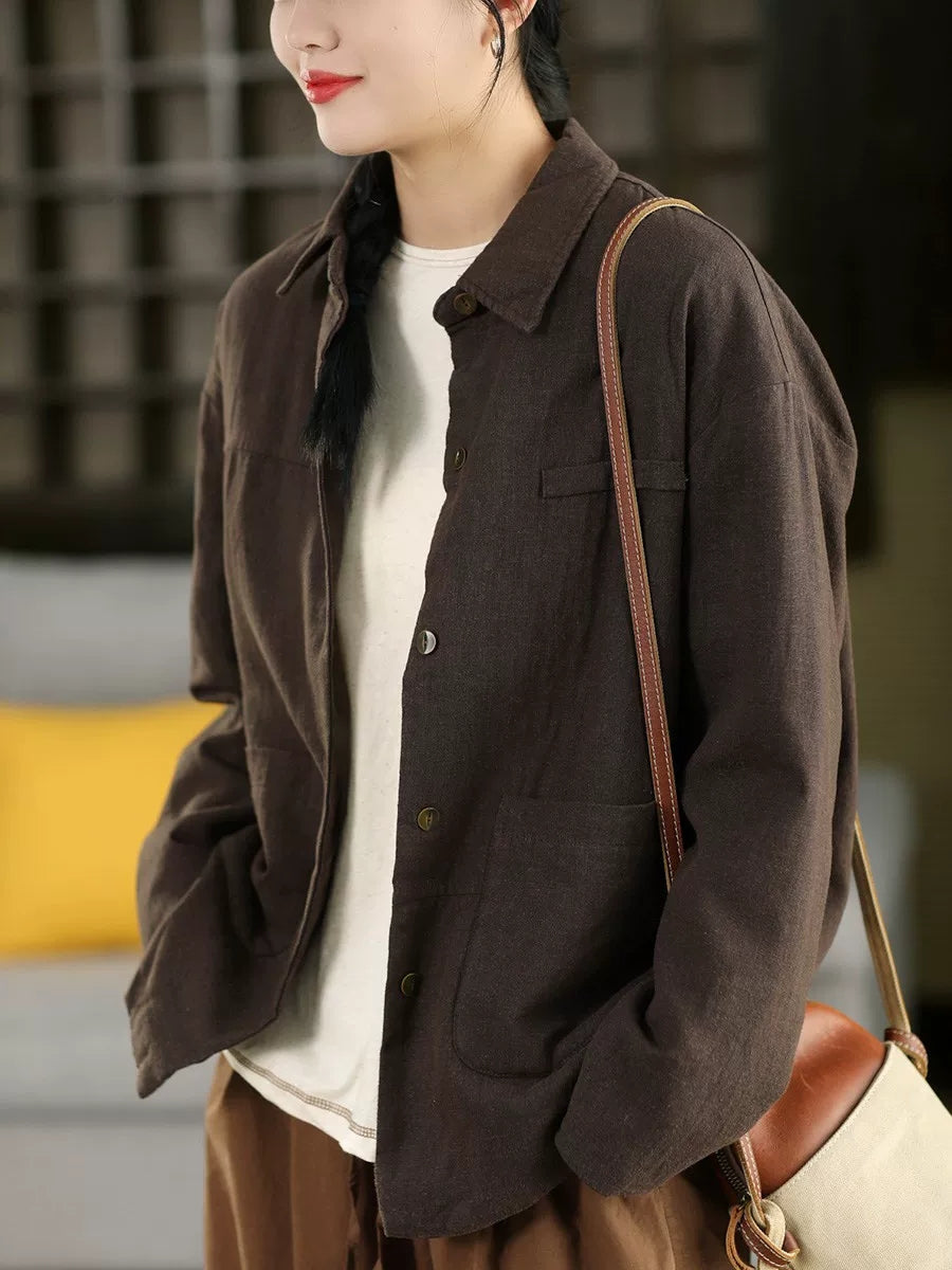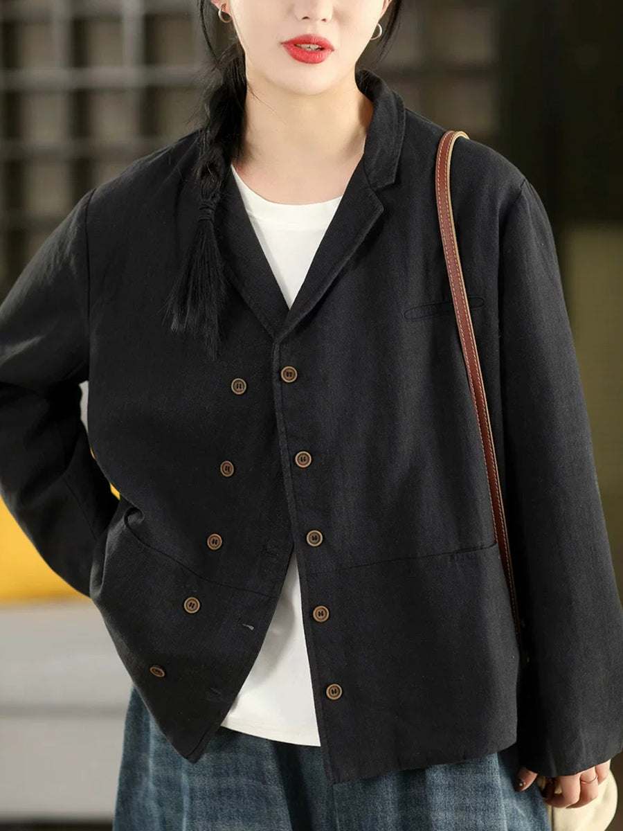 מעיל אביב לנשים בצבע טהור עם צווארון הפוך 100% פשתן