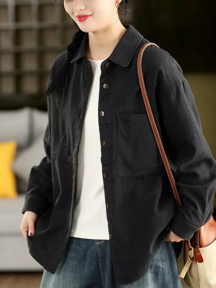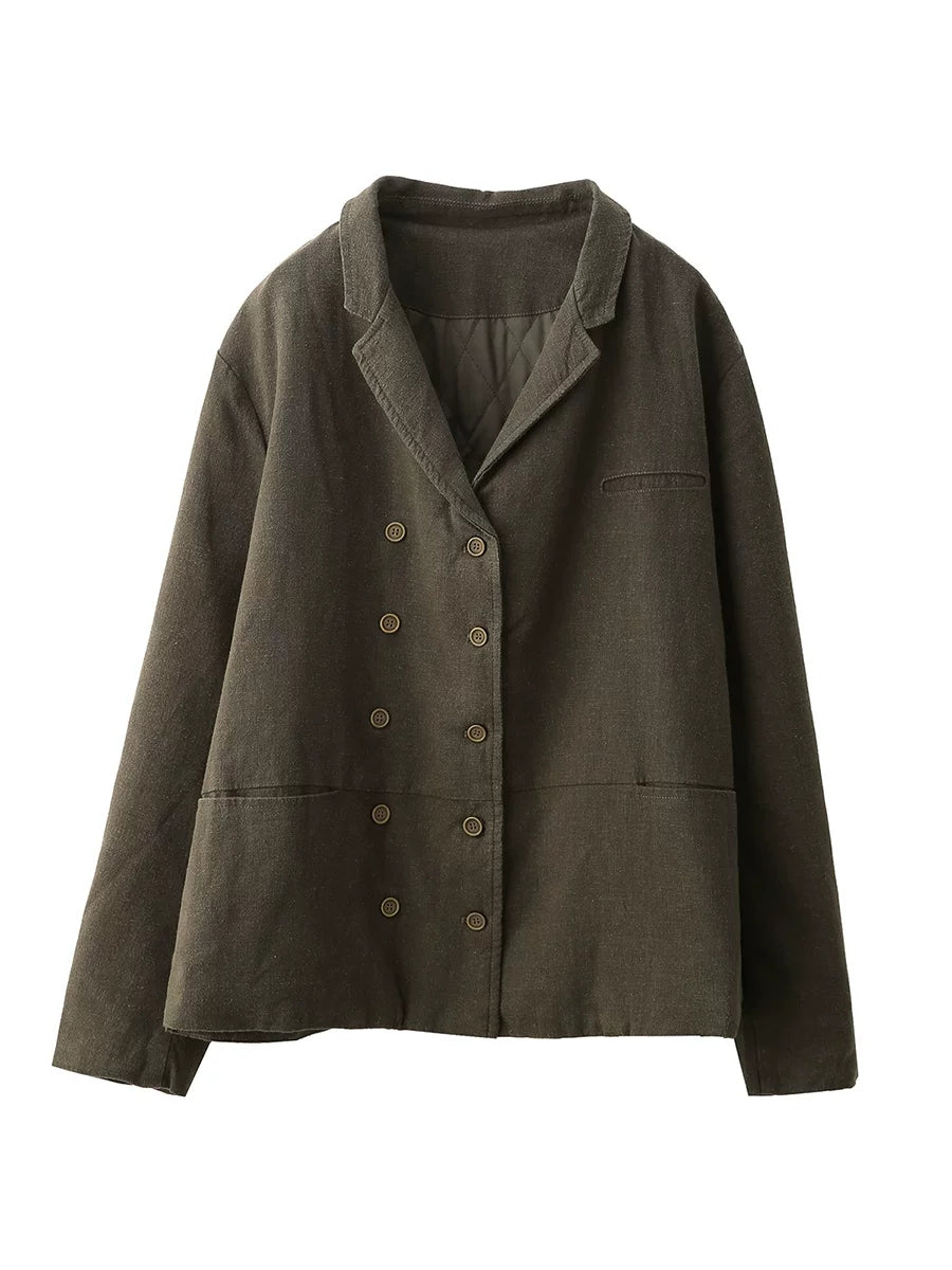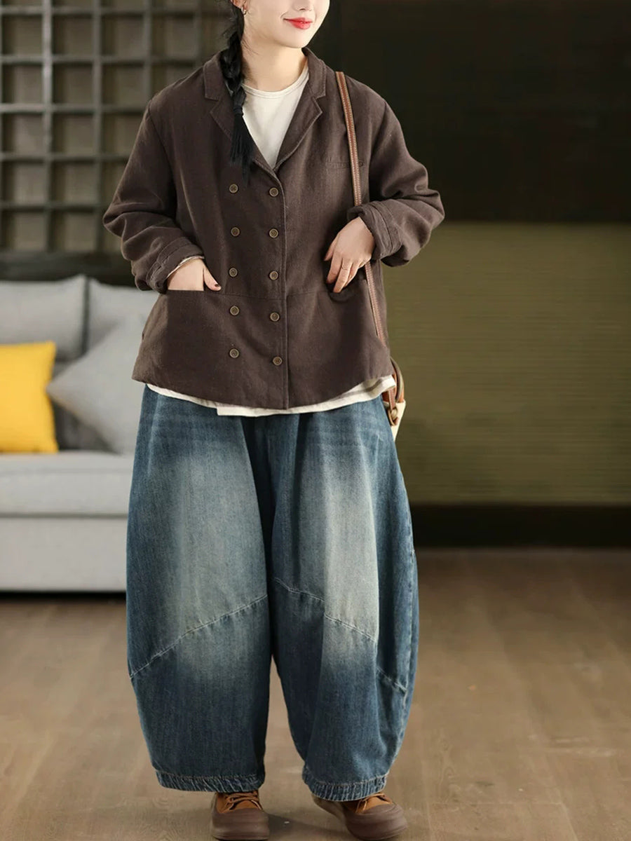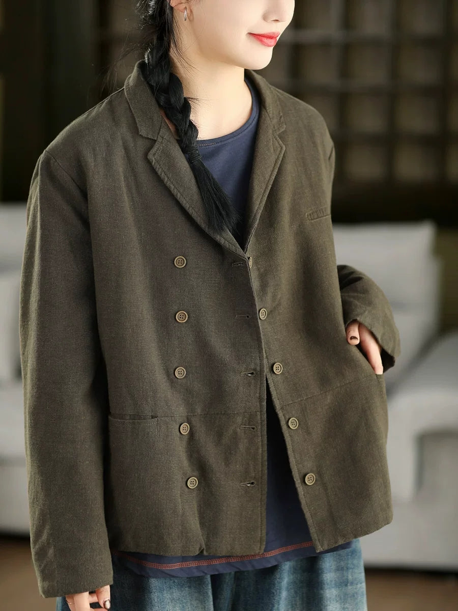 מעיל אביב לנשים בצבע טהור עם צווארון הפוך 100% פשתן
