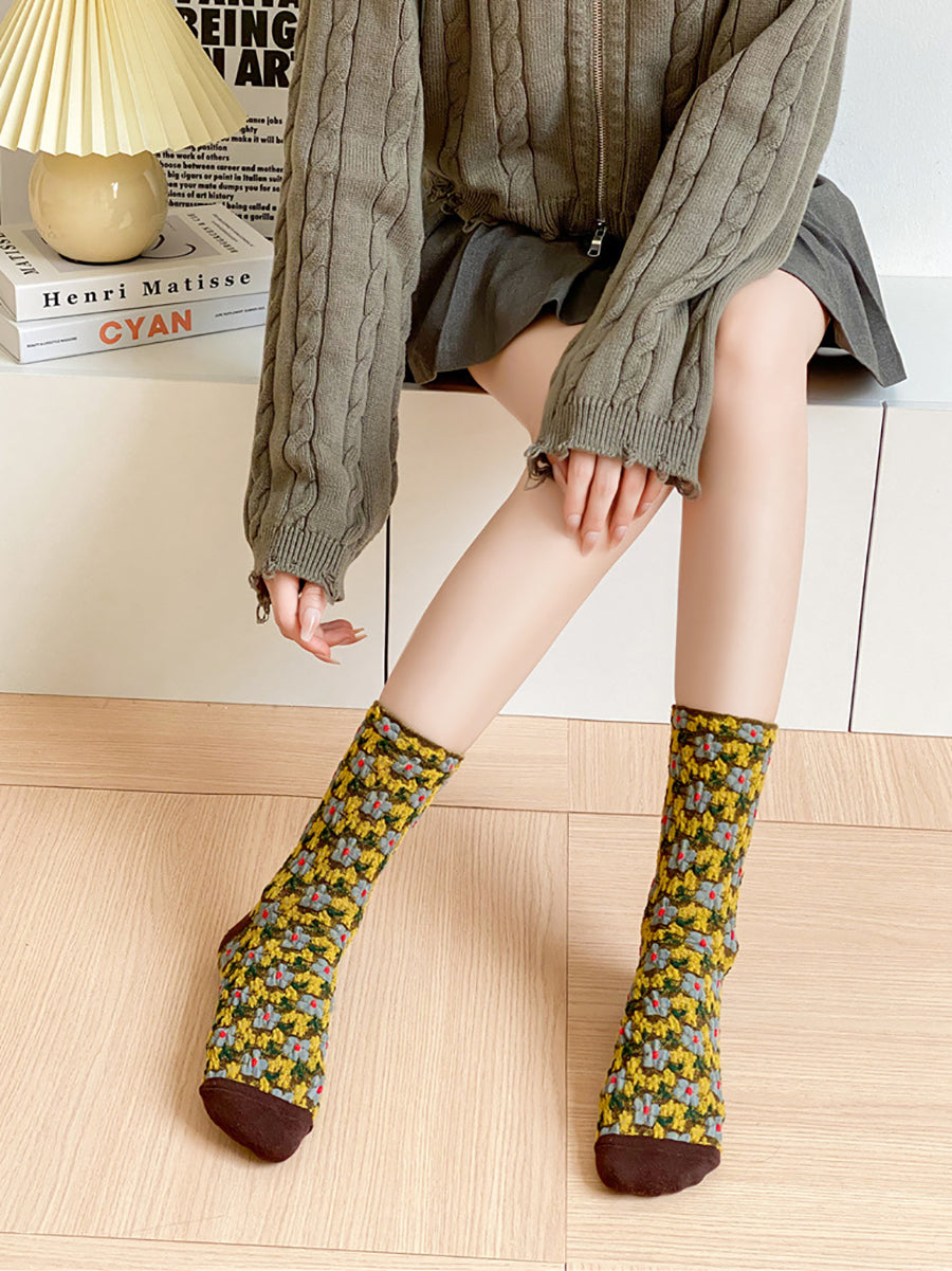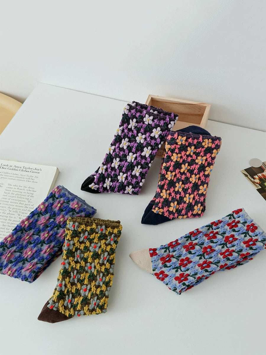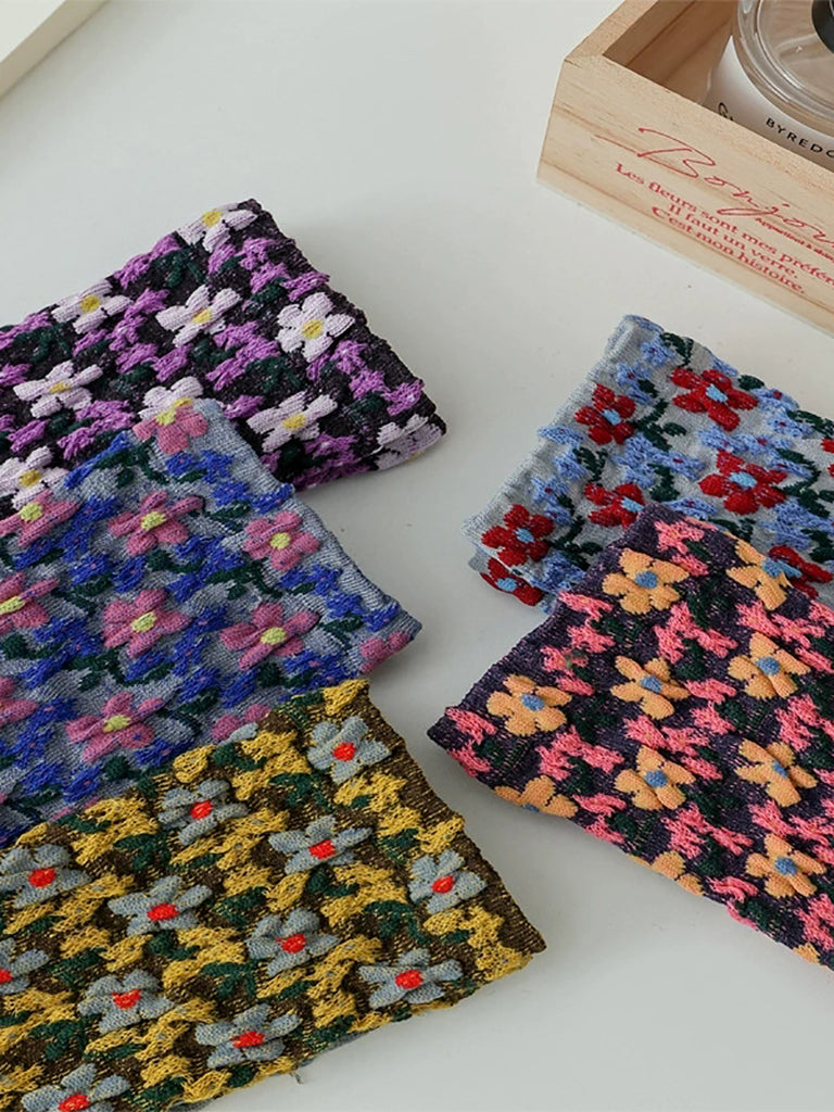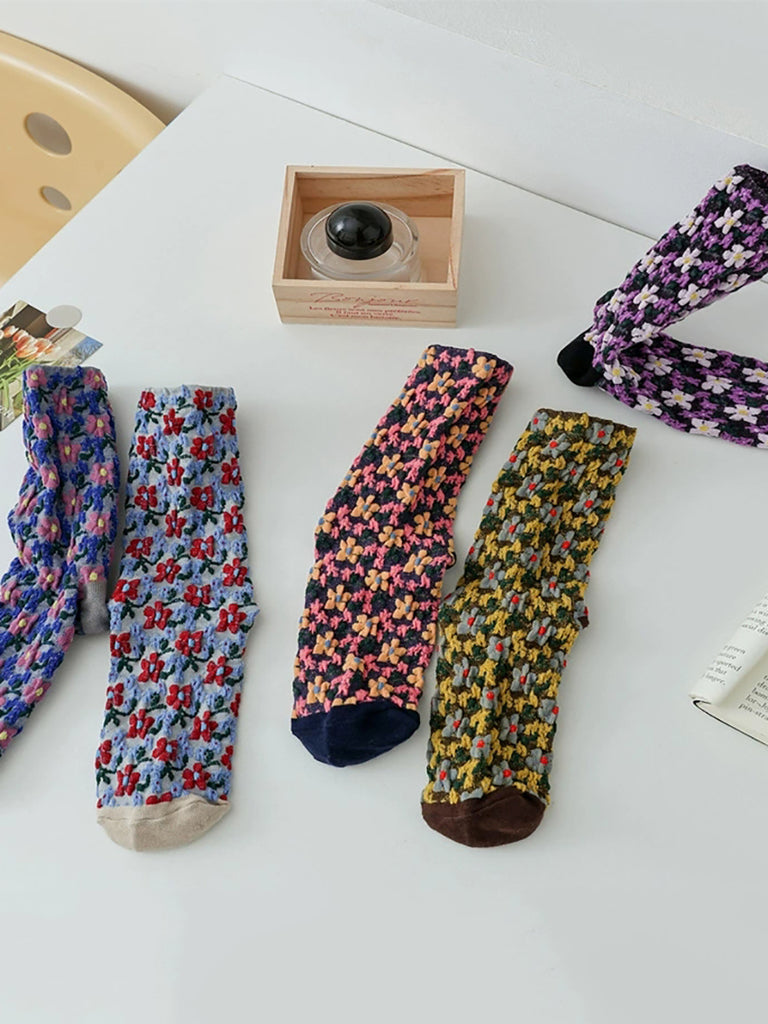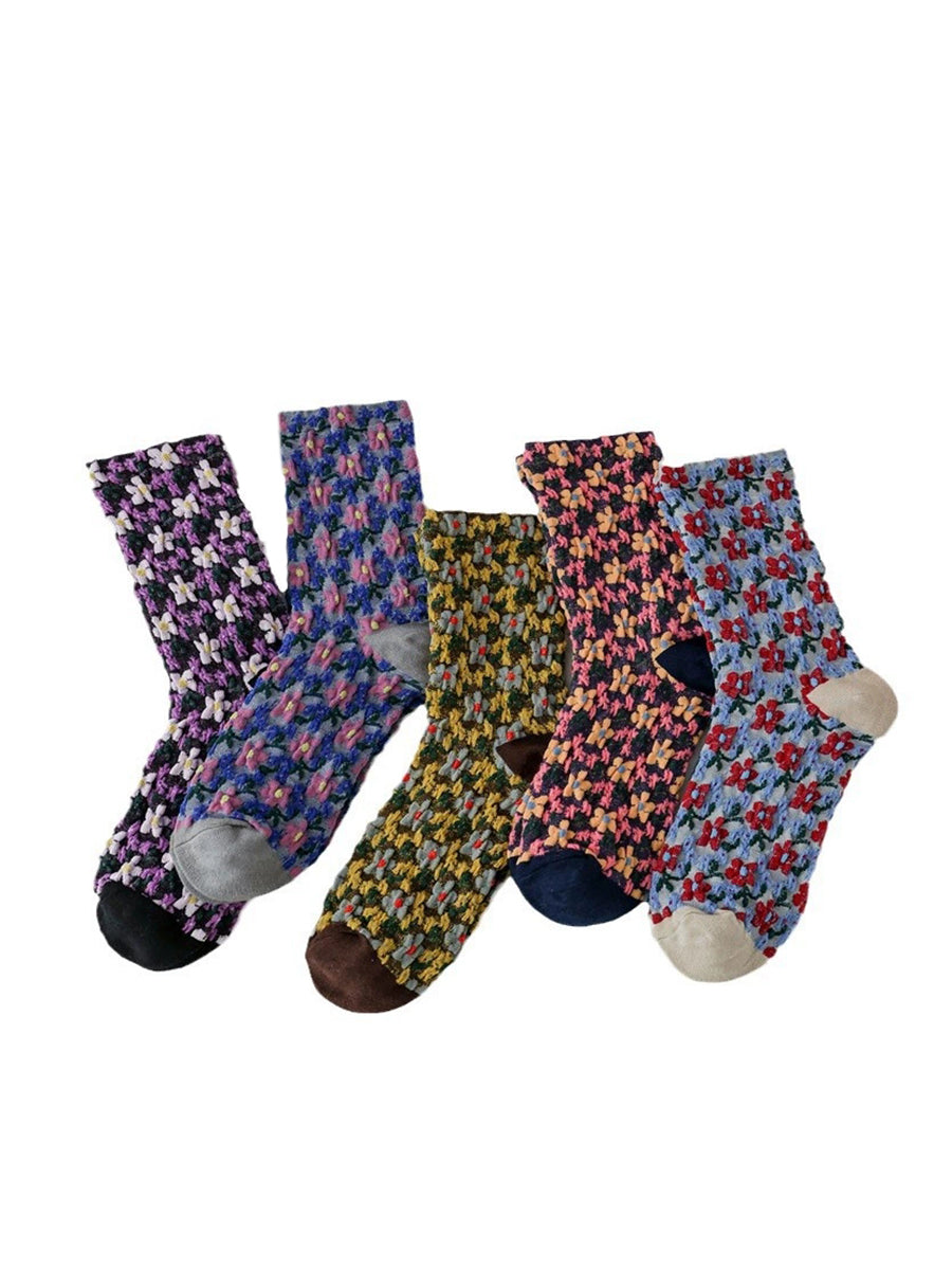 5 זוגות גרביים לנשים בצבע אקארד פרחוני אומנותי