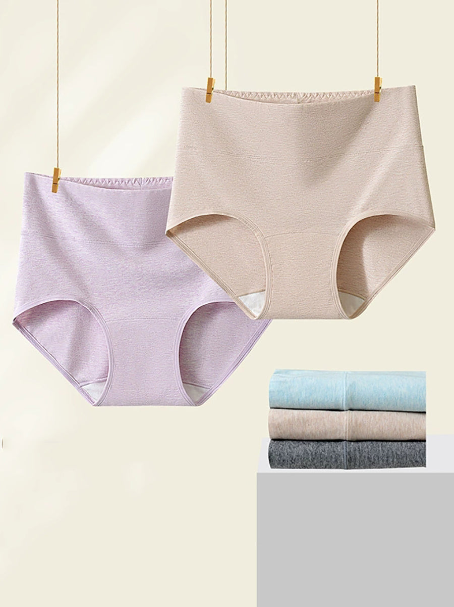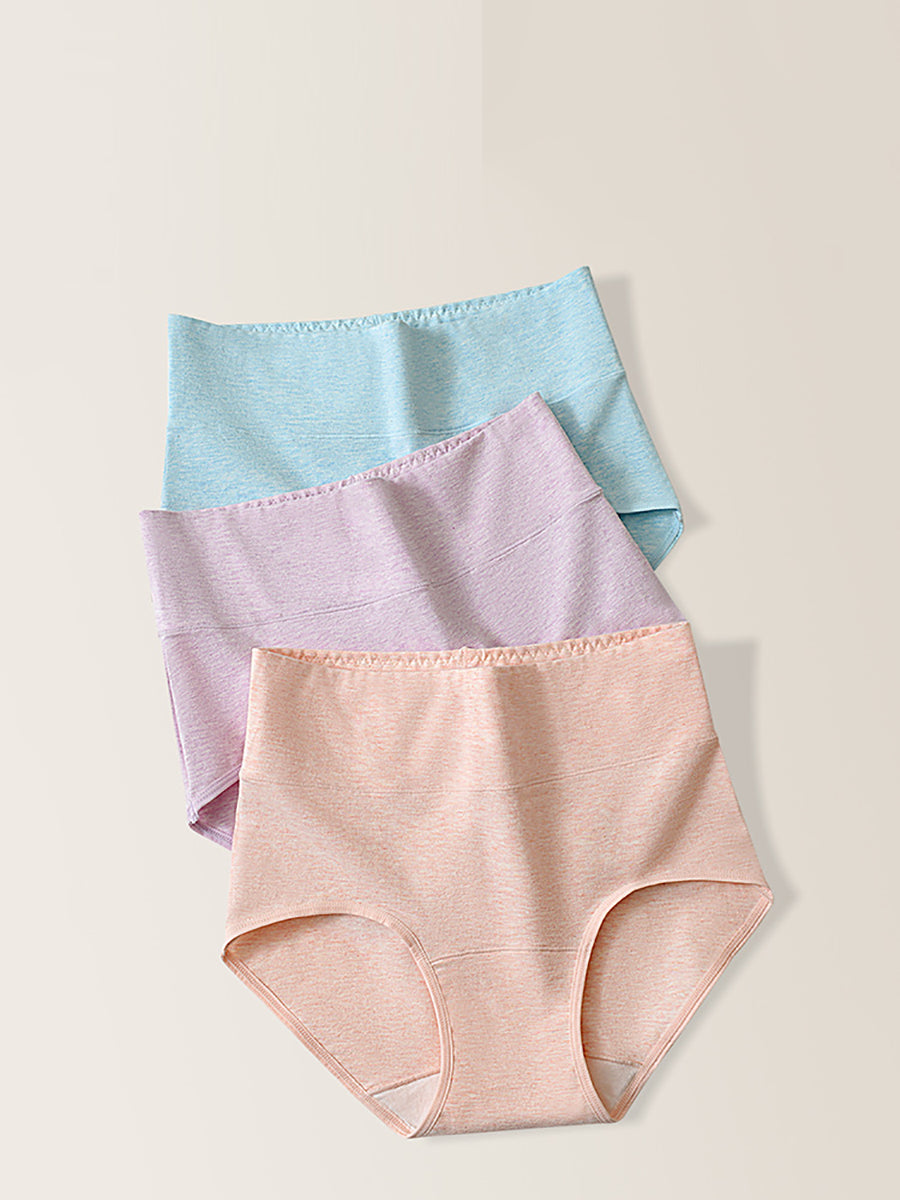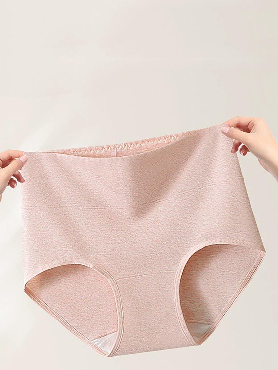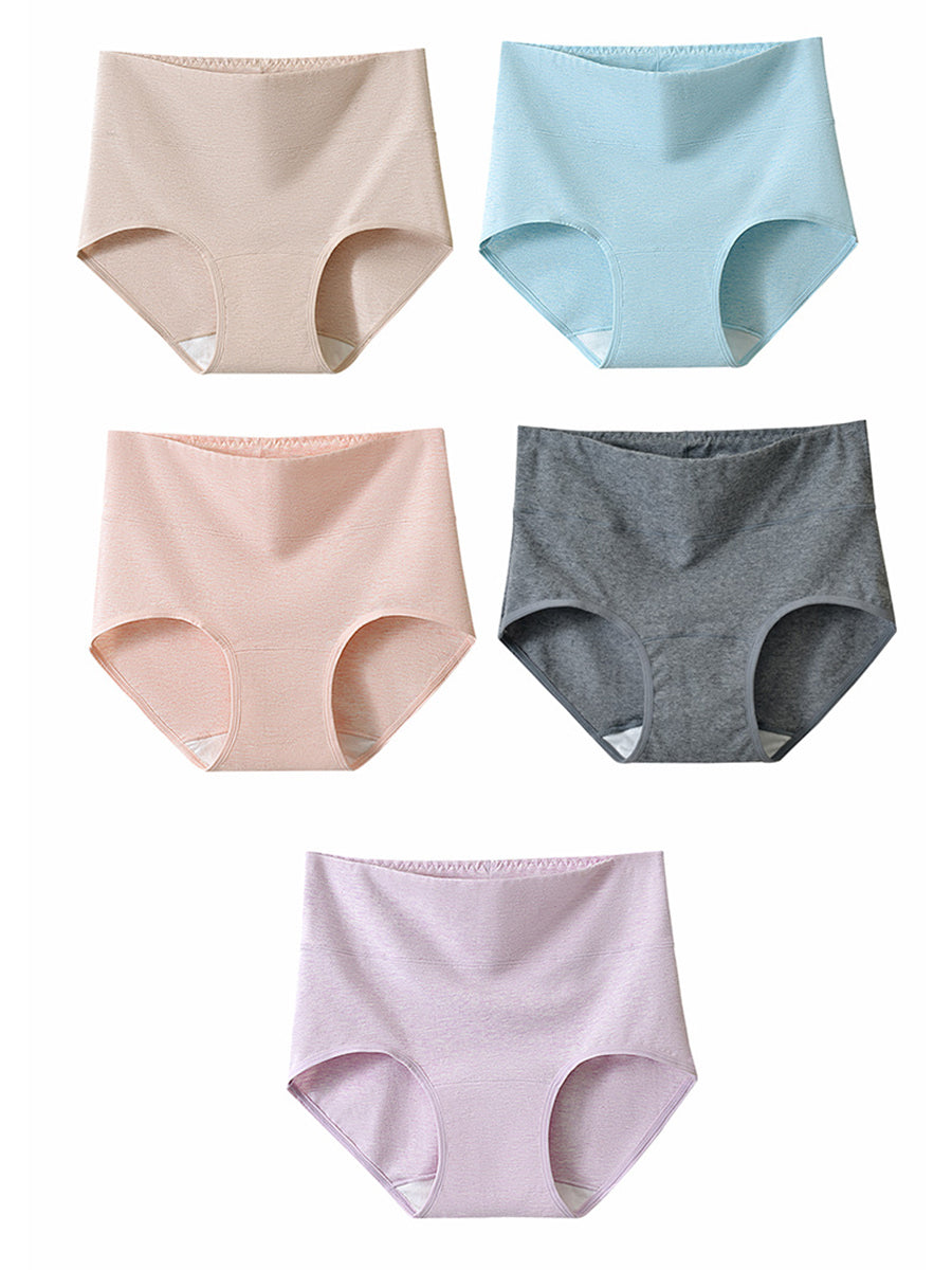 5 חתיכות תחתוני כותנה בצבע טהור לנשים עם מותן גבוה