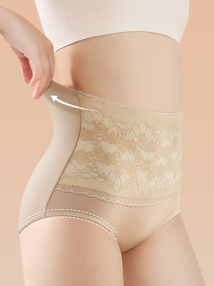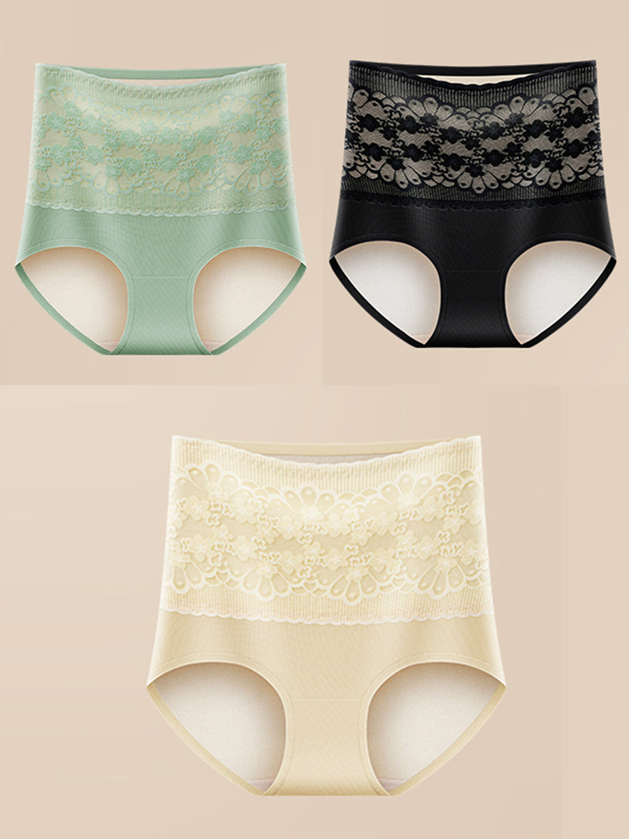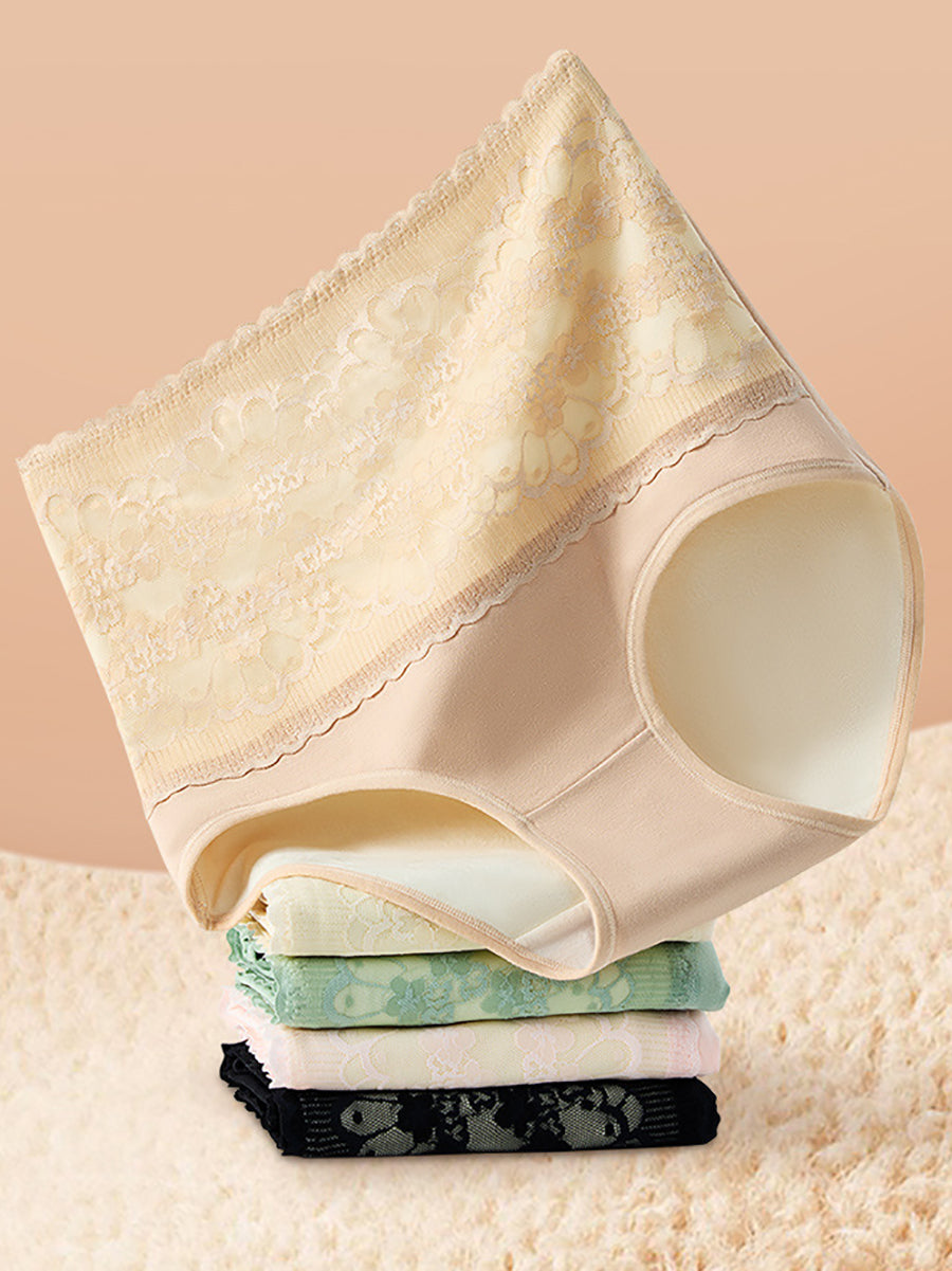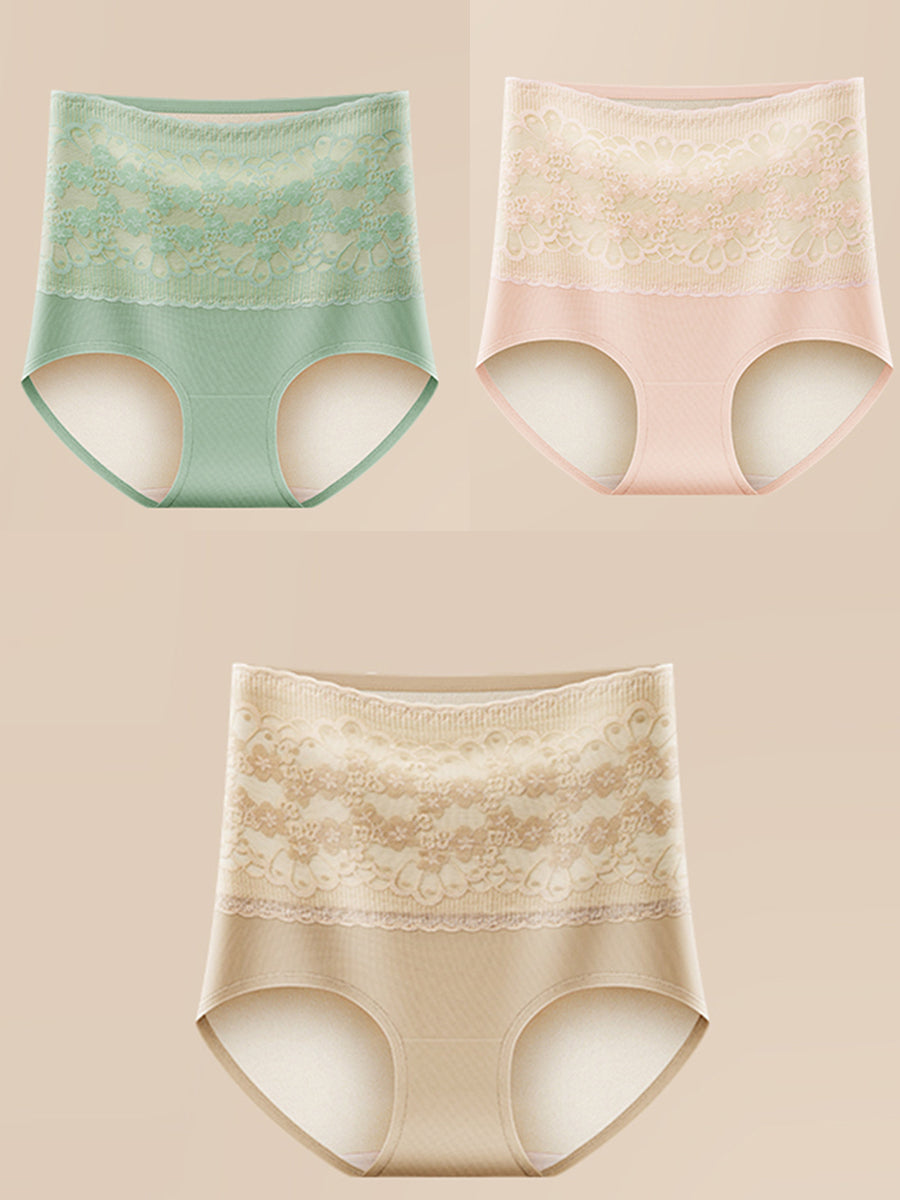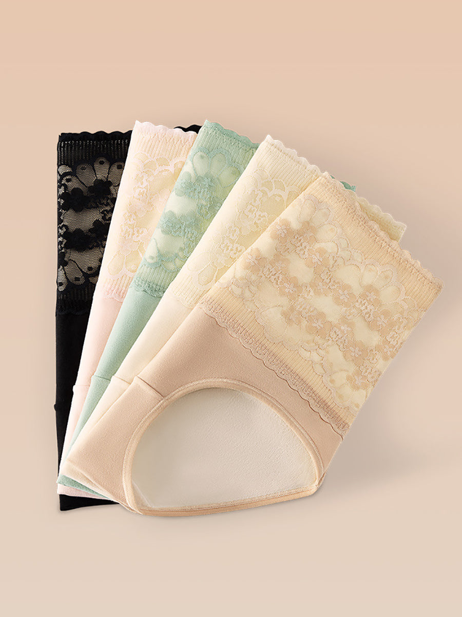5 חלקים תחתוני כותנה בצבע טהור לנשים עם מותן גבוה