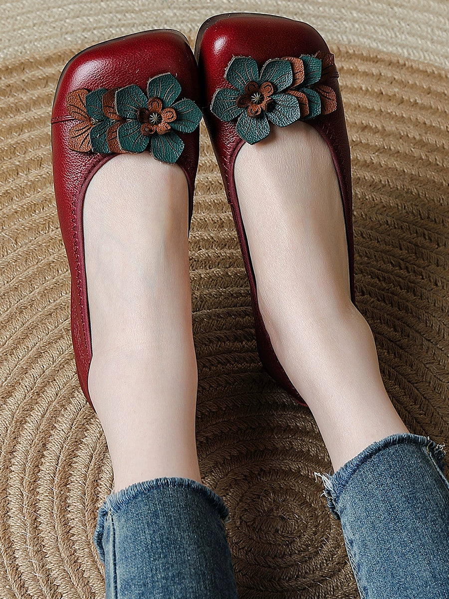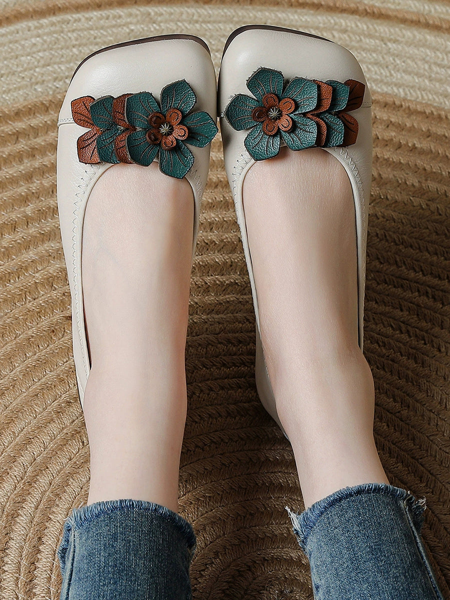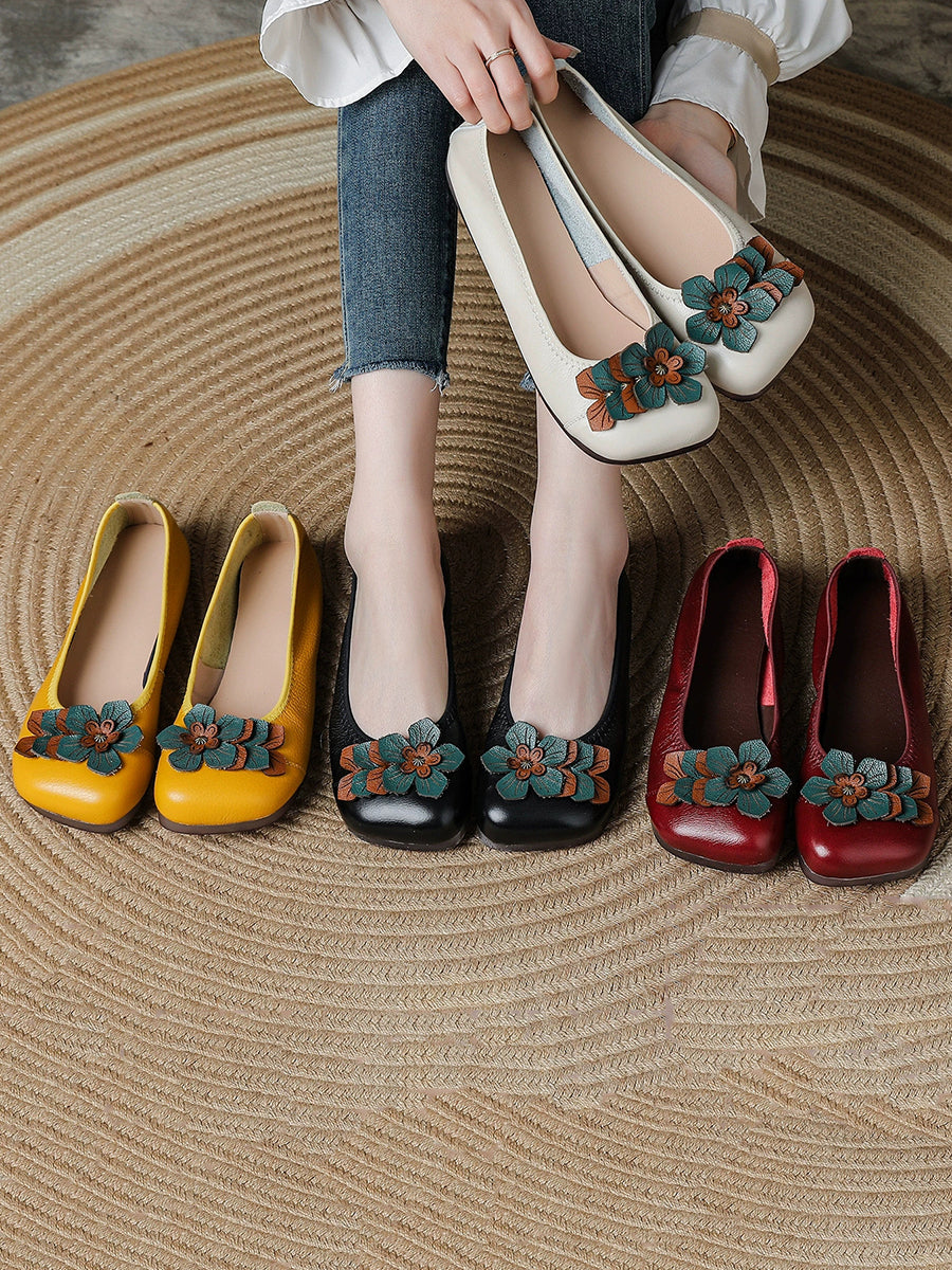 נעלי עור אמיתיות עם שזיף פרחים אומנותי לנשים
