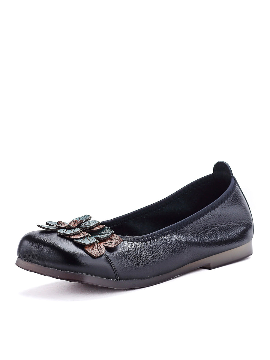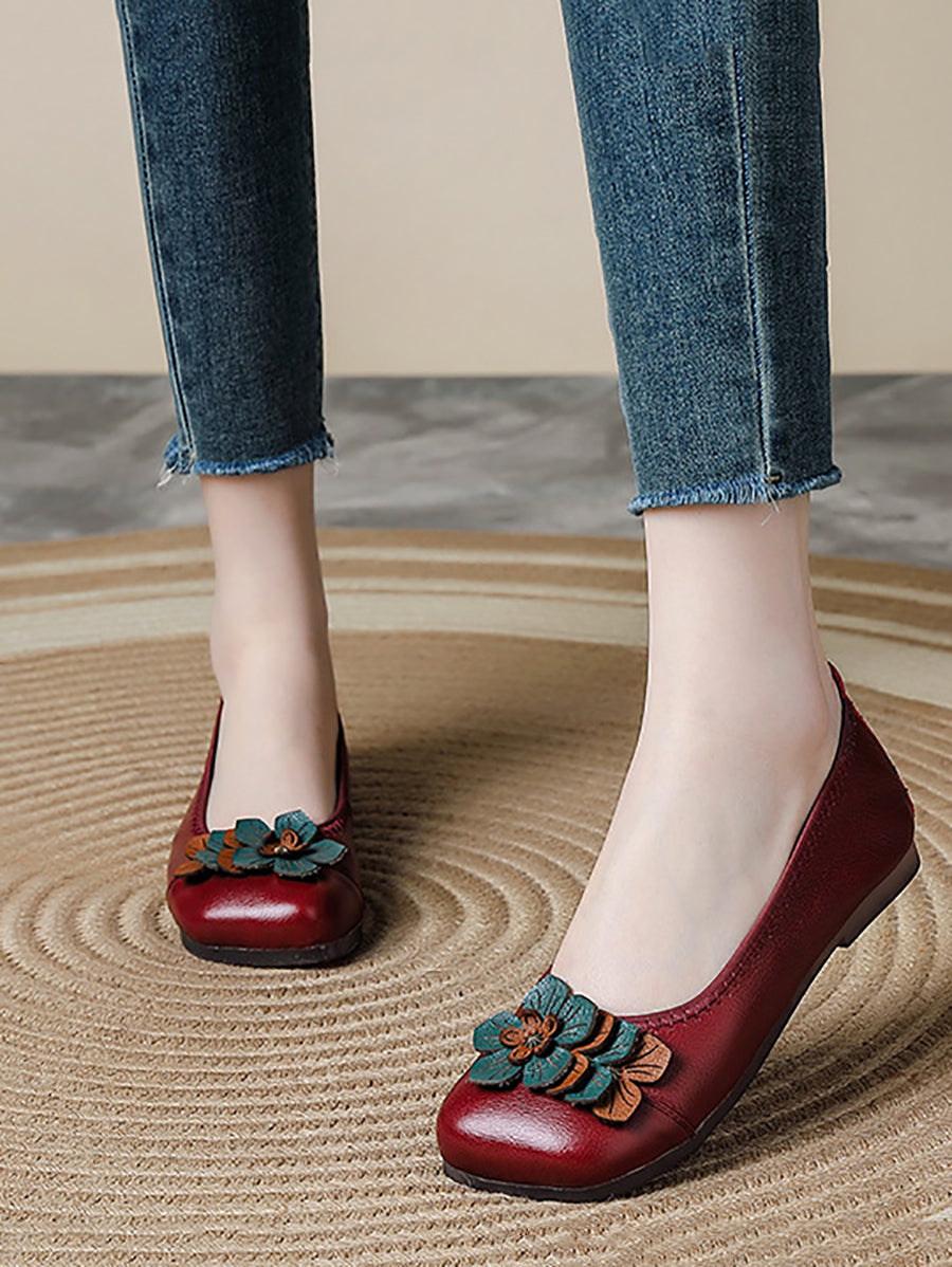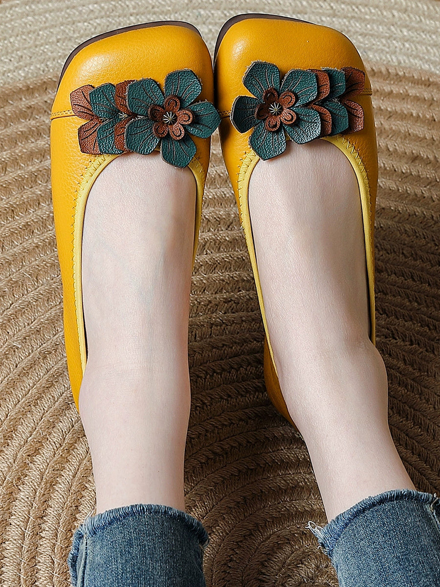 נעלי עור אמיתיות עם שזיף פרחים אומנותי לנשים