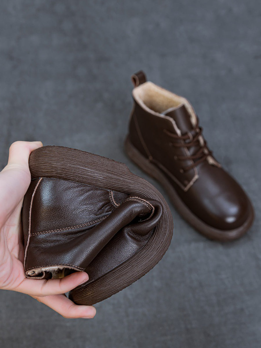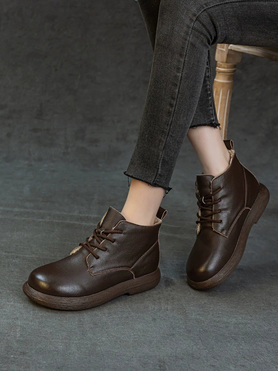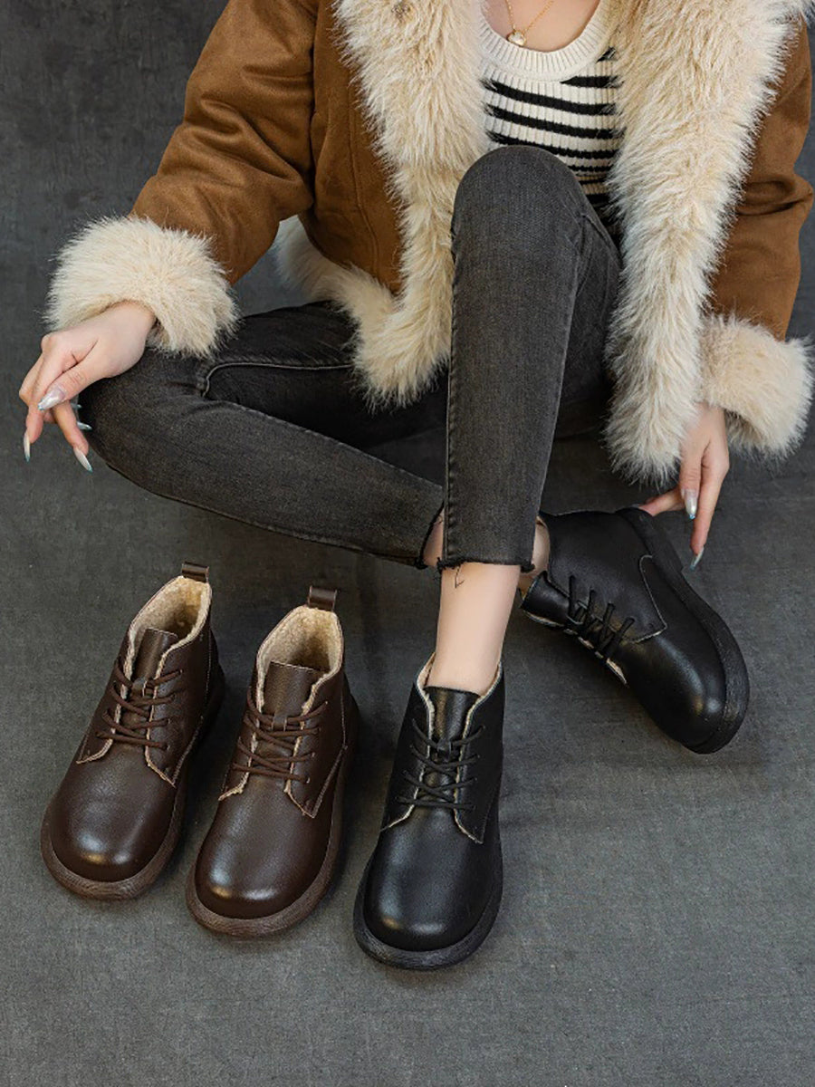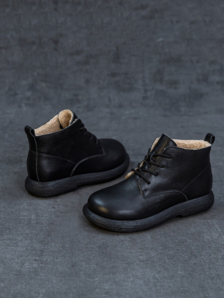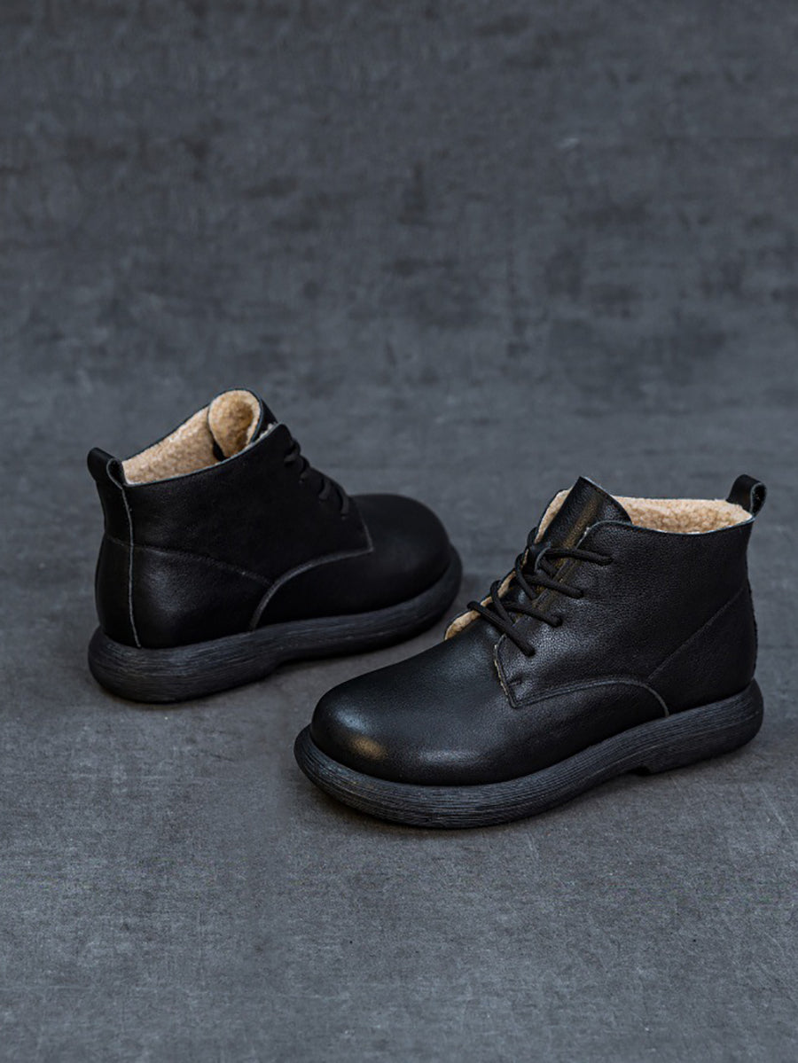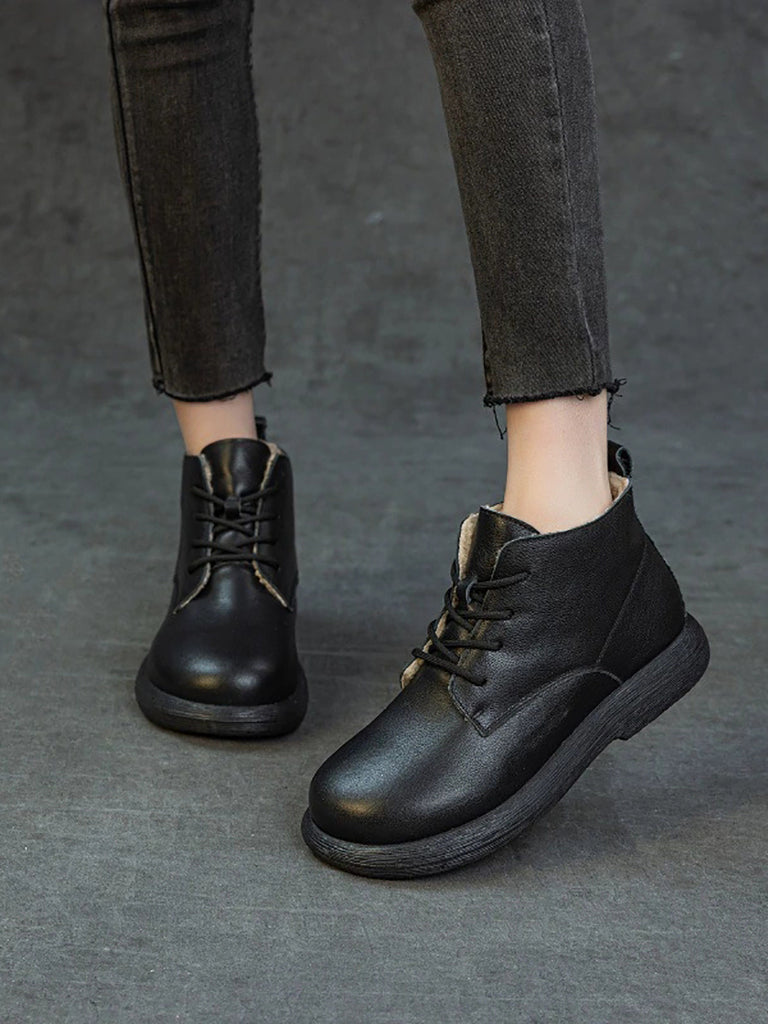 מגפי קרסול עם בטנת פליז מעור אמיתי לנשים בחורף