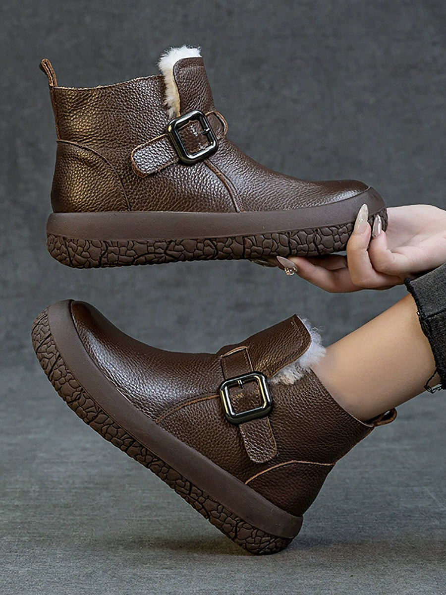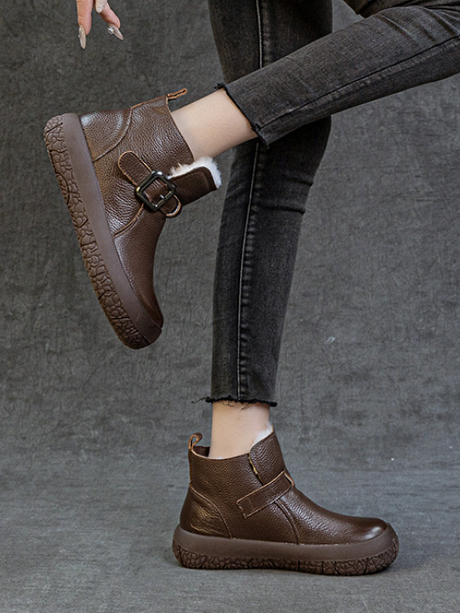 מגפי חורף מעור אמיתי עם בטנת פליז לנשים