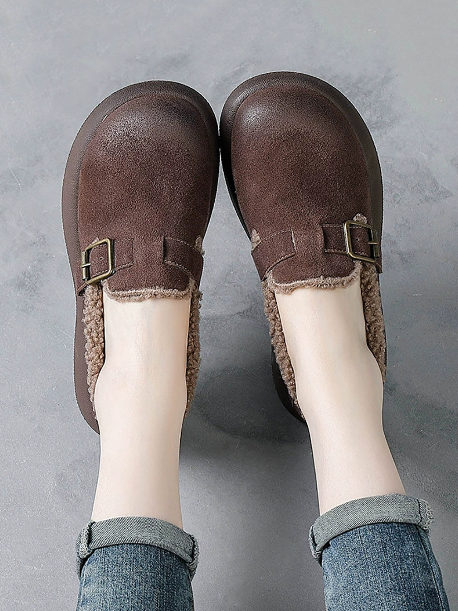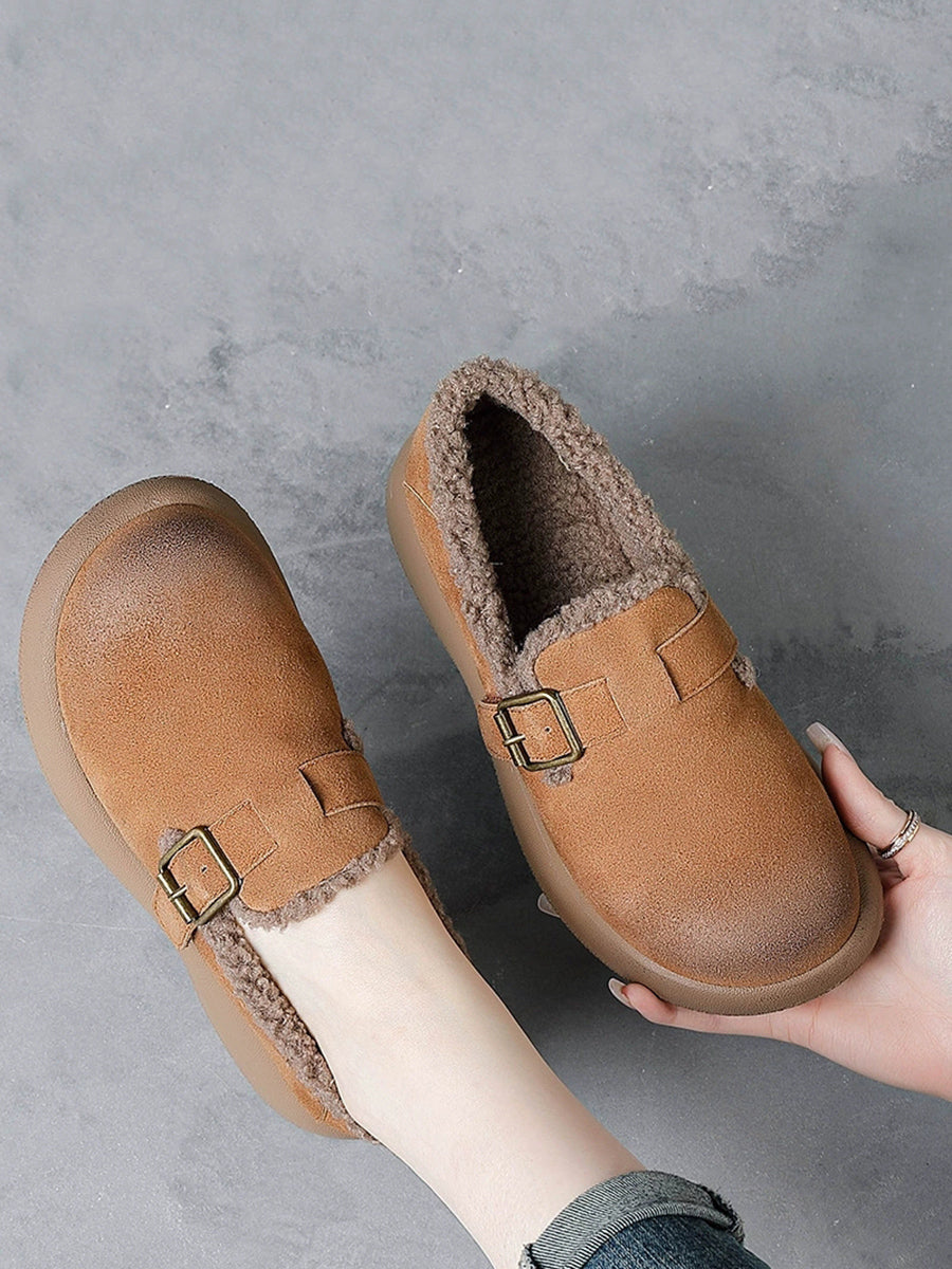 נעלי פלטפורמה לנשים עם בטנת פליז מעור אמיתי לחורף