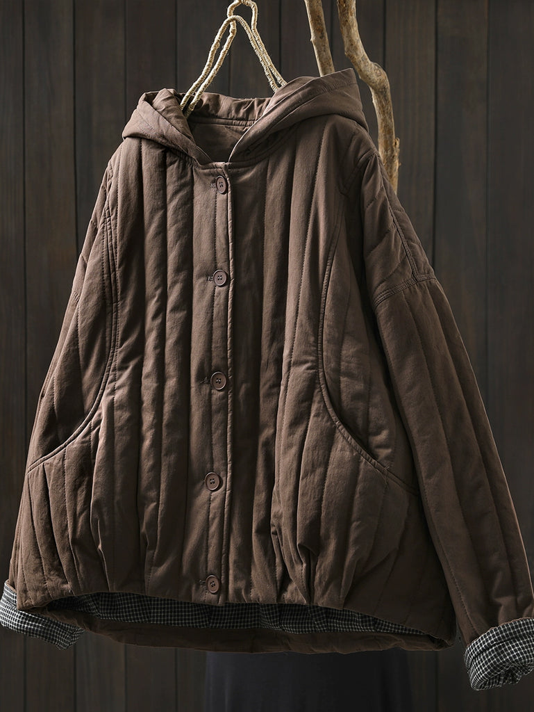 מעיל מרופד בצבע טהור מזדמן לחורף לנשים