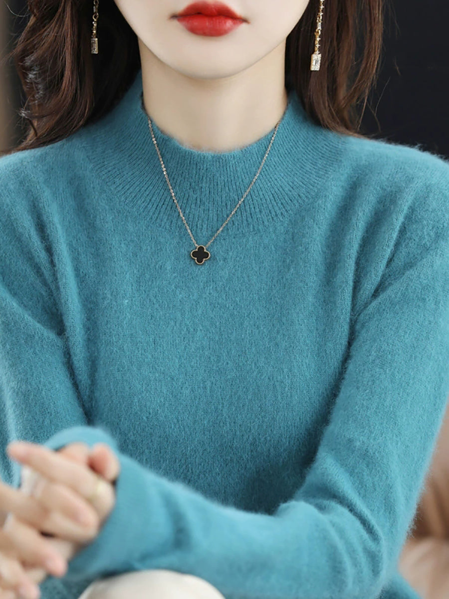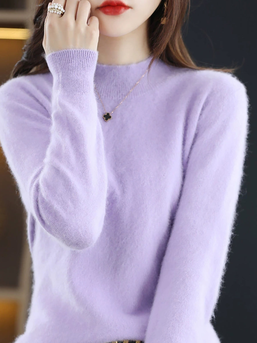 סוודר חצי גולף בצבע טהור באביב מזדמן לנשים