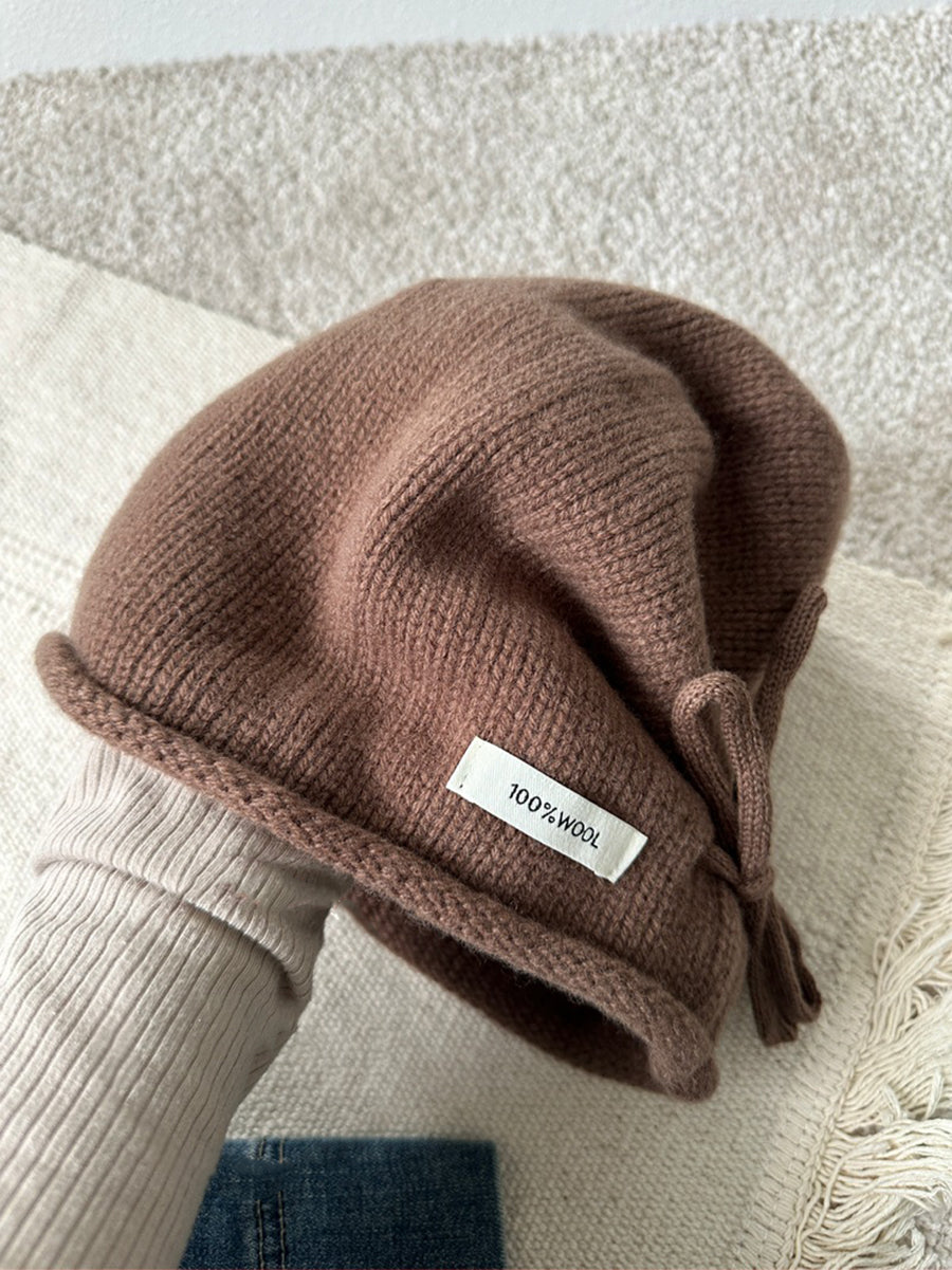 כובע סרוג חבל בצבע טהור לחורף לנשים