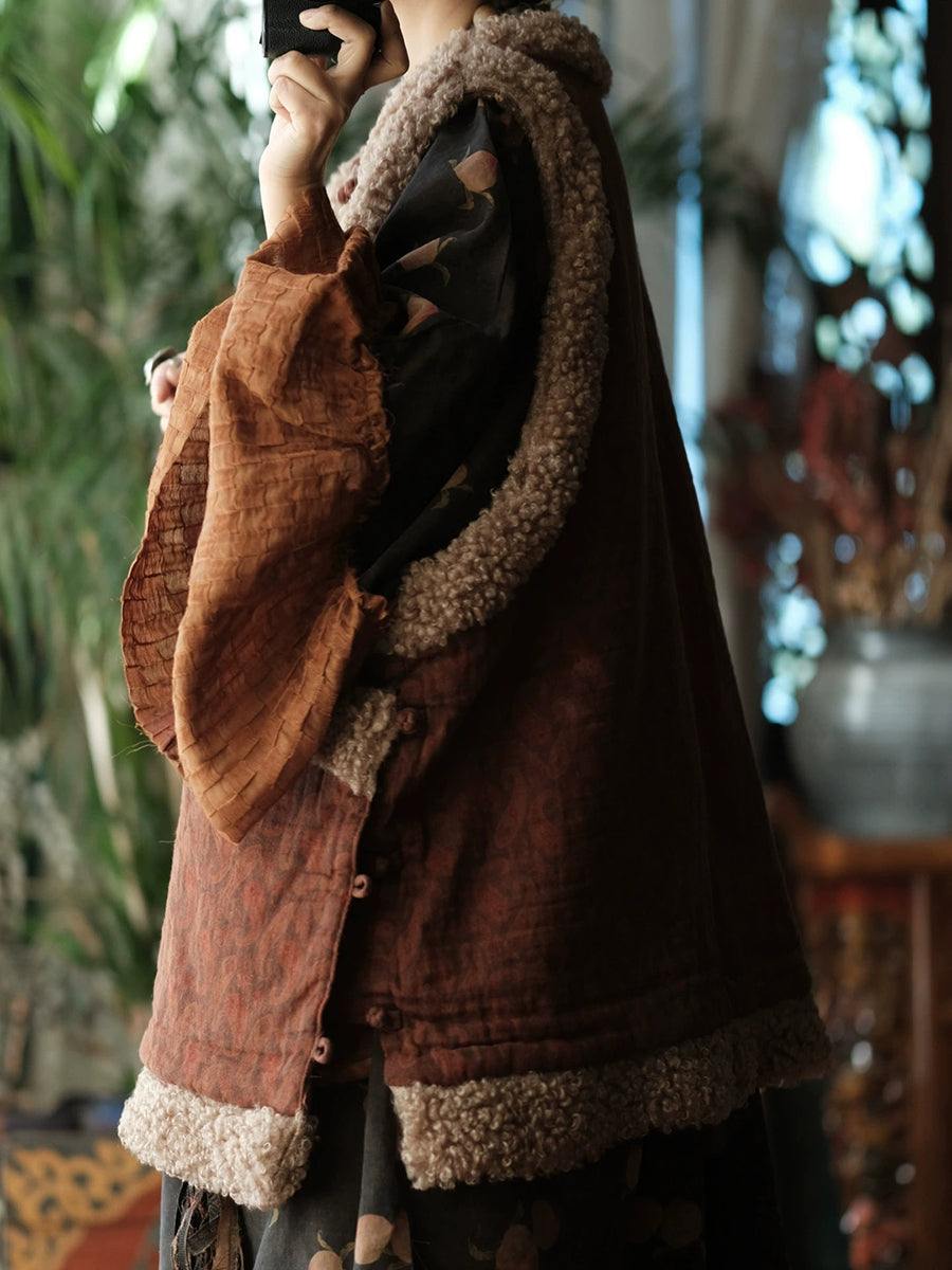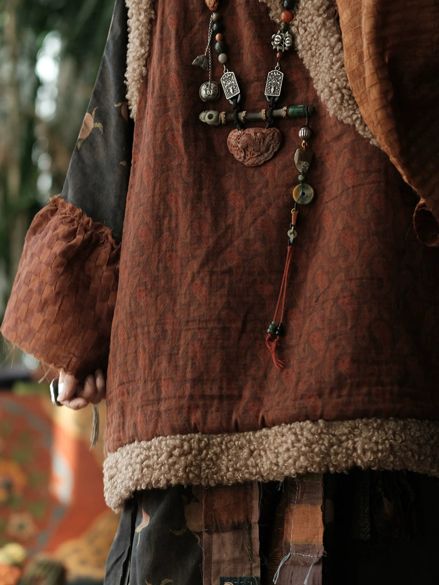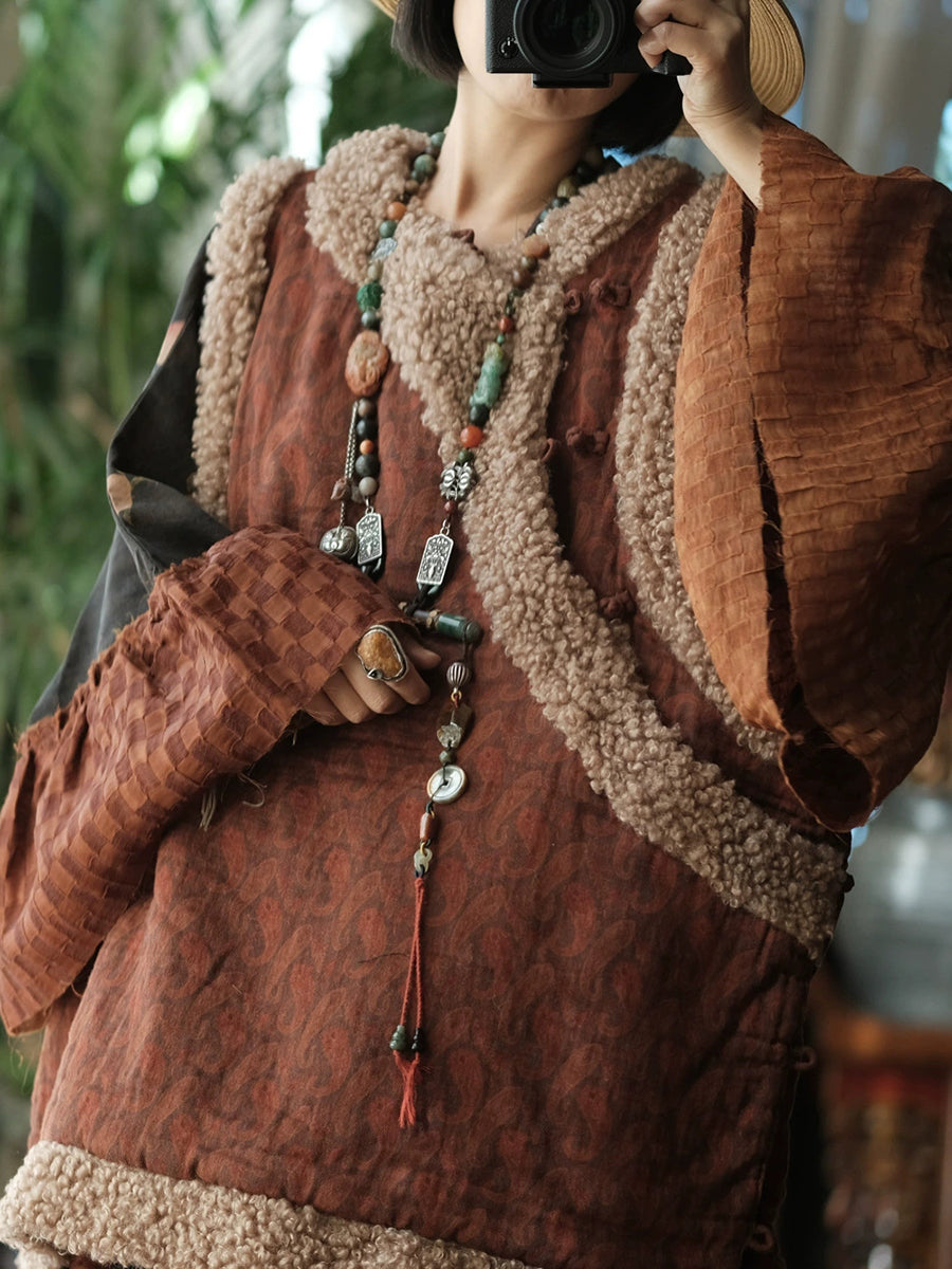 אפוד מרופד עם צווארון O וצווארון חורפי וינטג' של פליז לנשים
