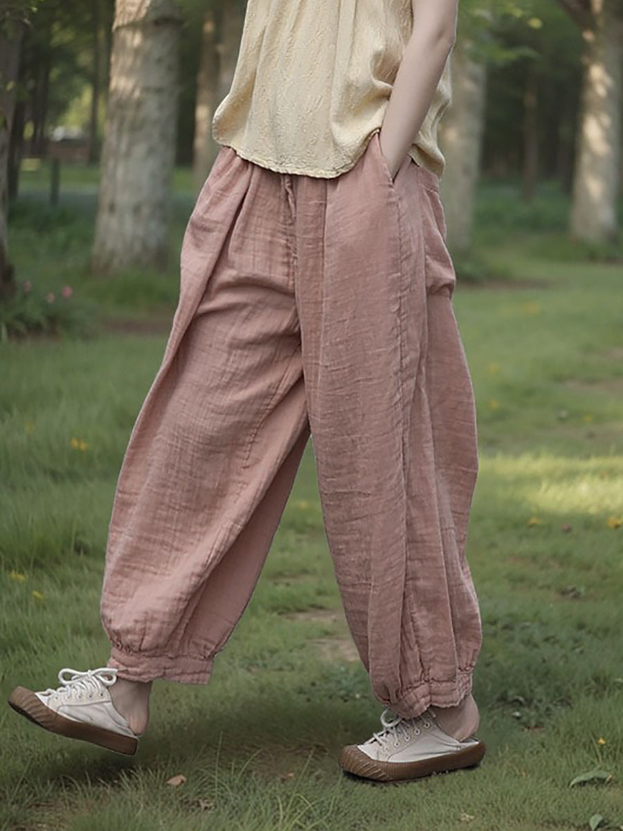 נשים קיץ צבע טהור 100%כותנה מכנסי הרמון