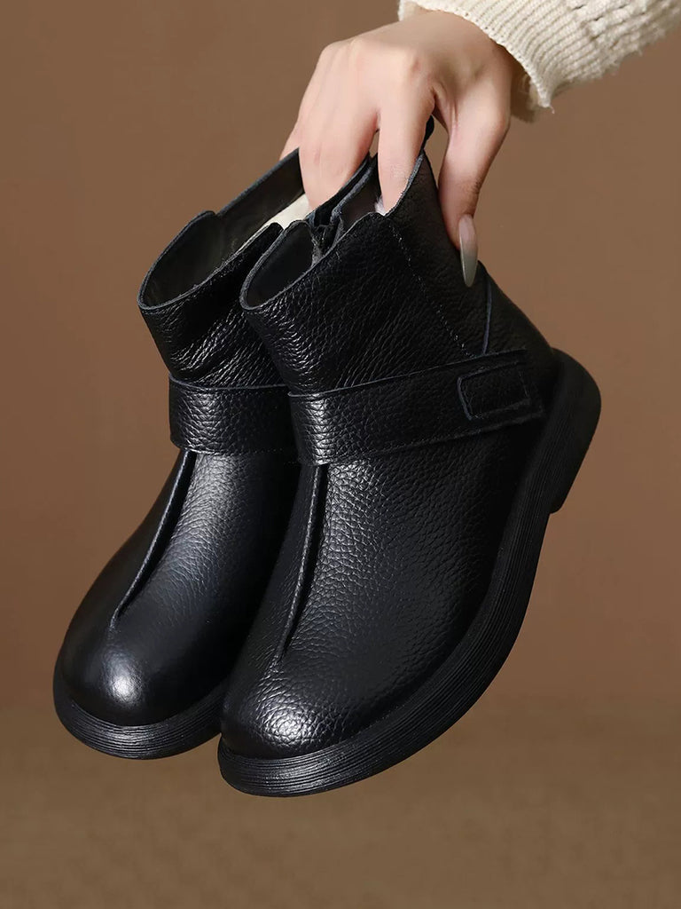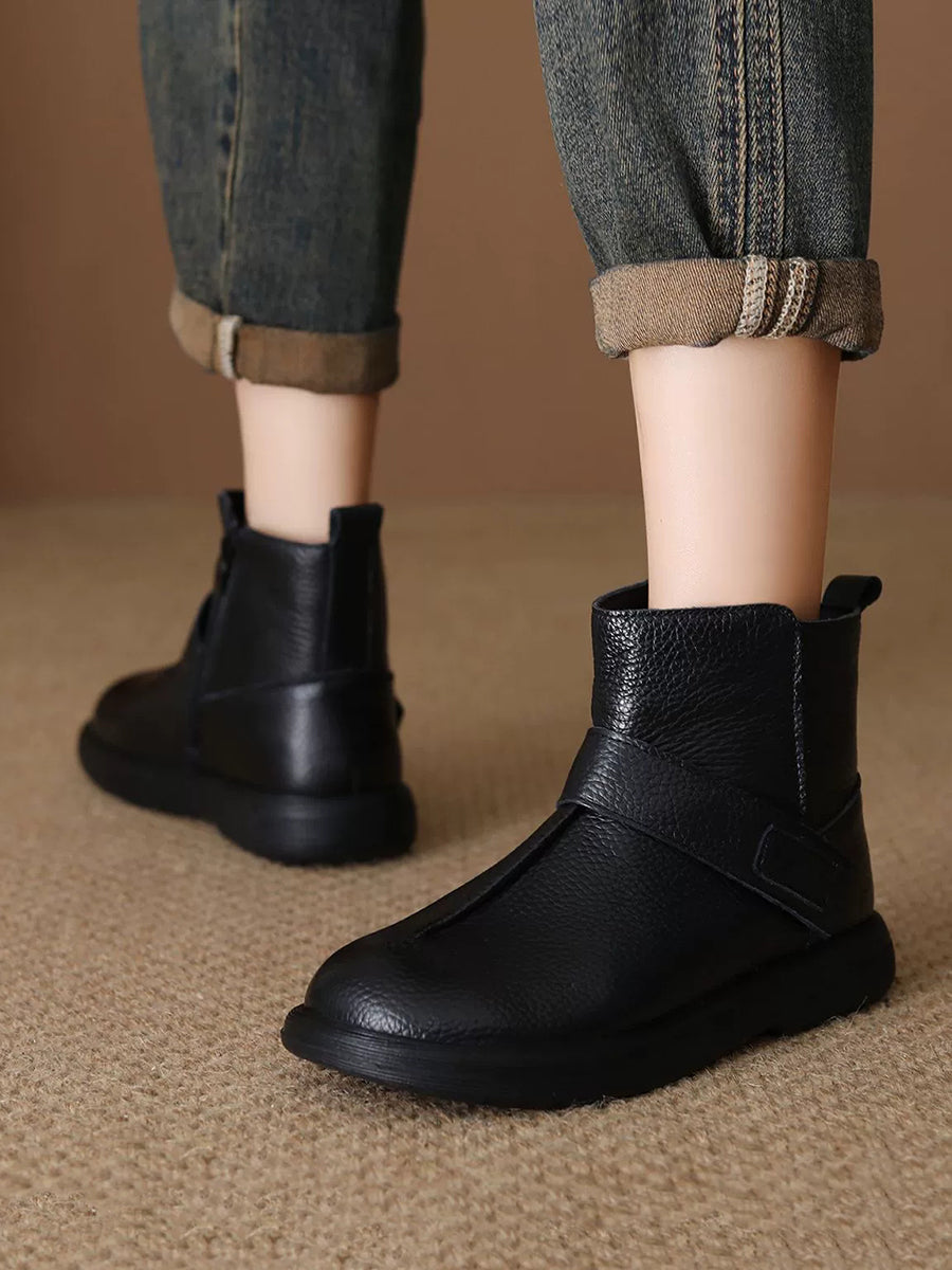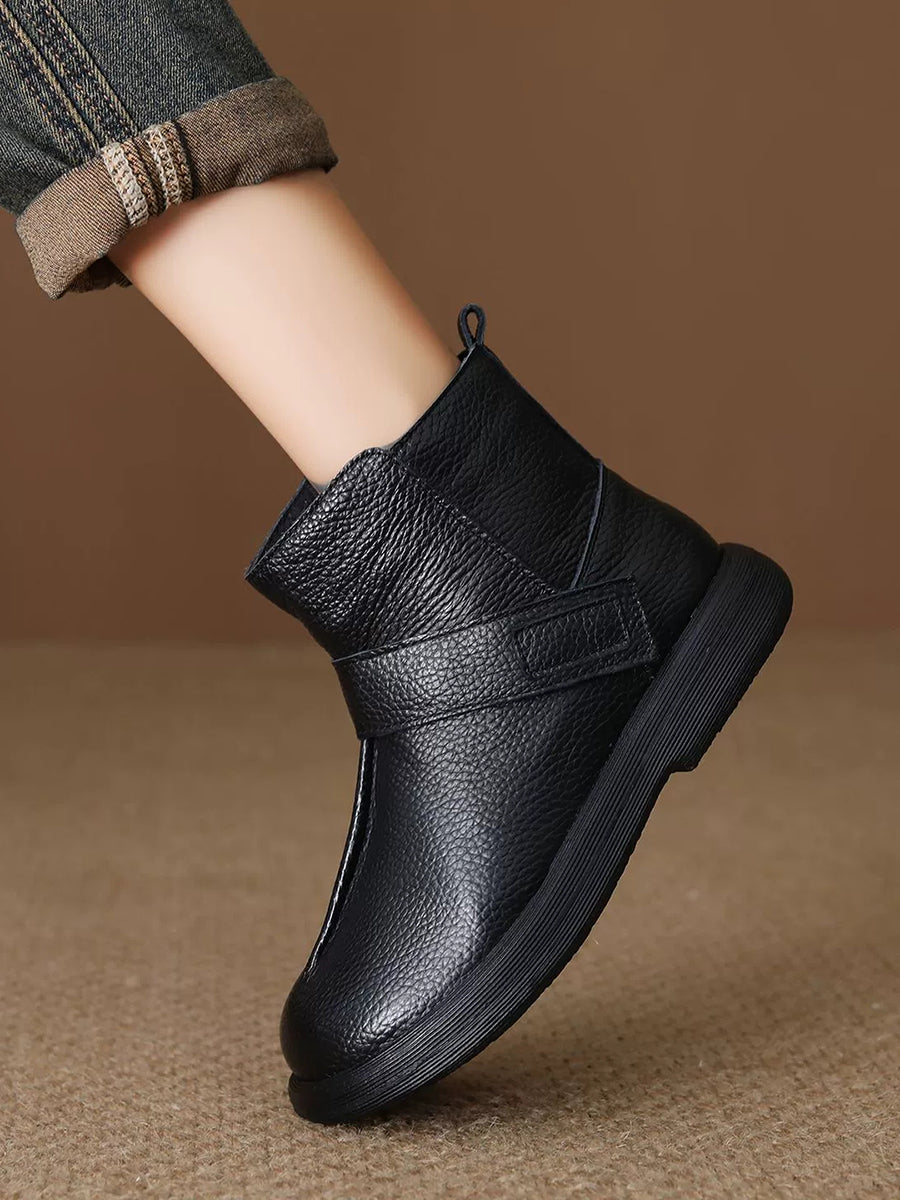 מגפי קרסול וינטג' מעור אמיתי עם בטנת פליז לנשים