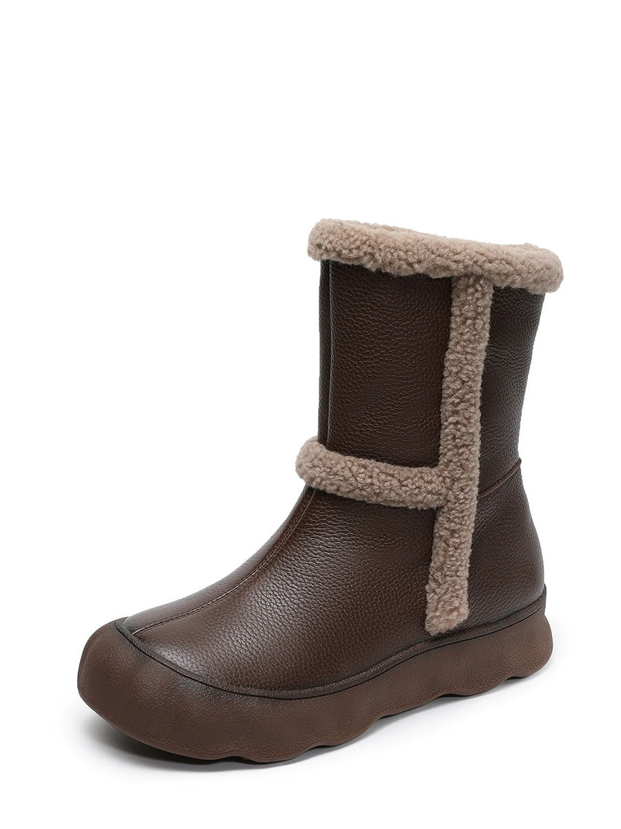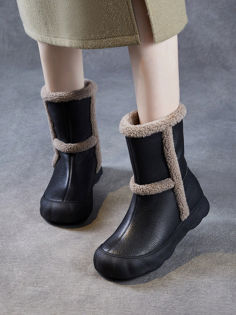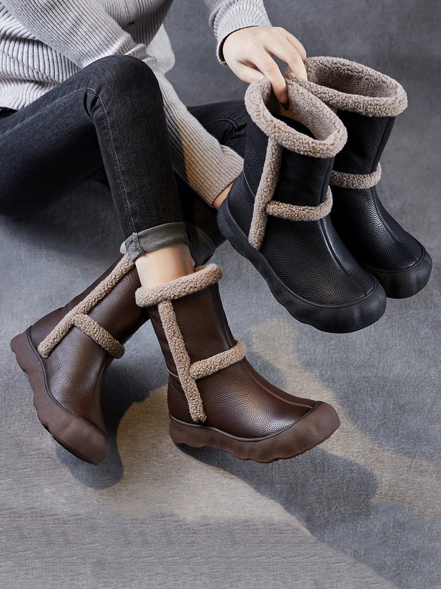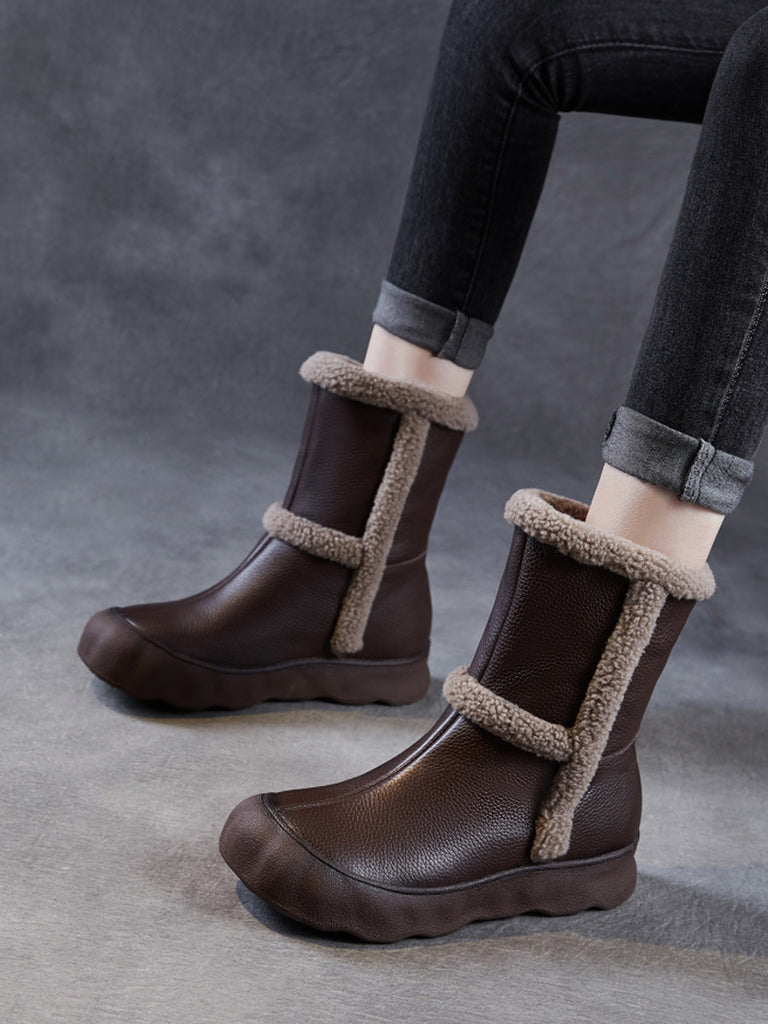 מגפי עור אמיתי וינטג' לנשים עם בטנת פליז