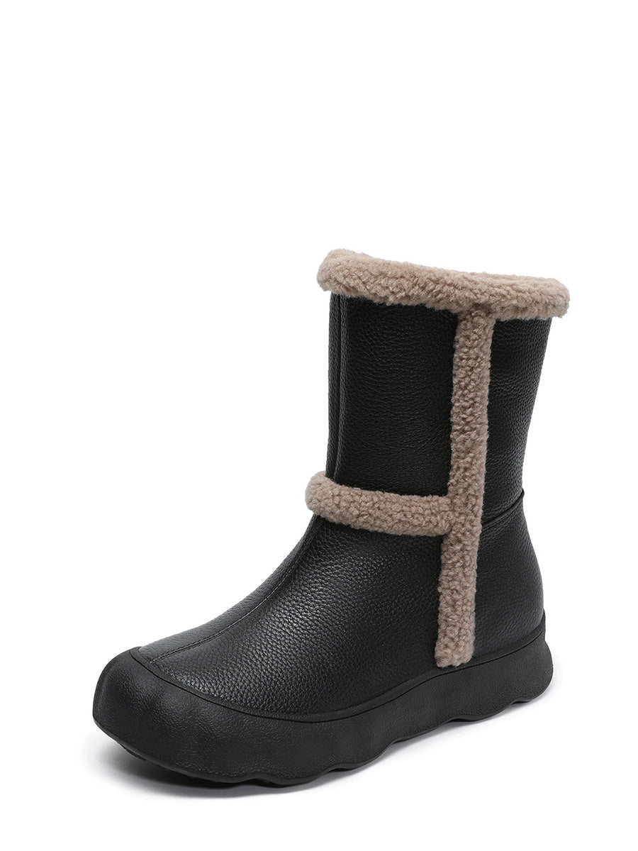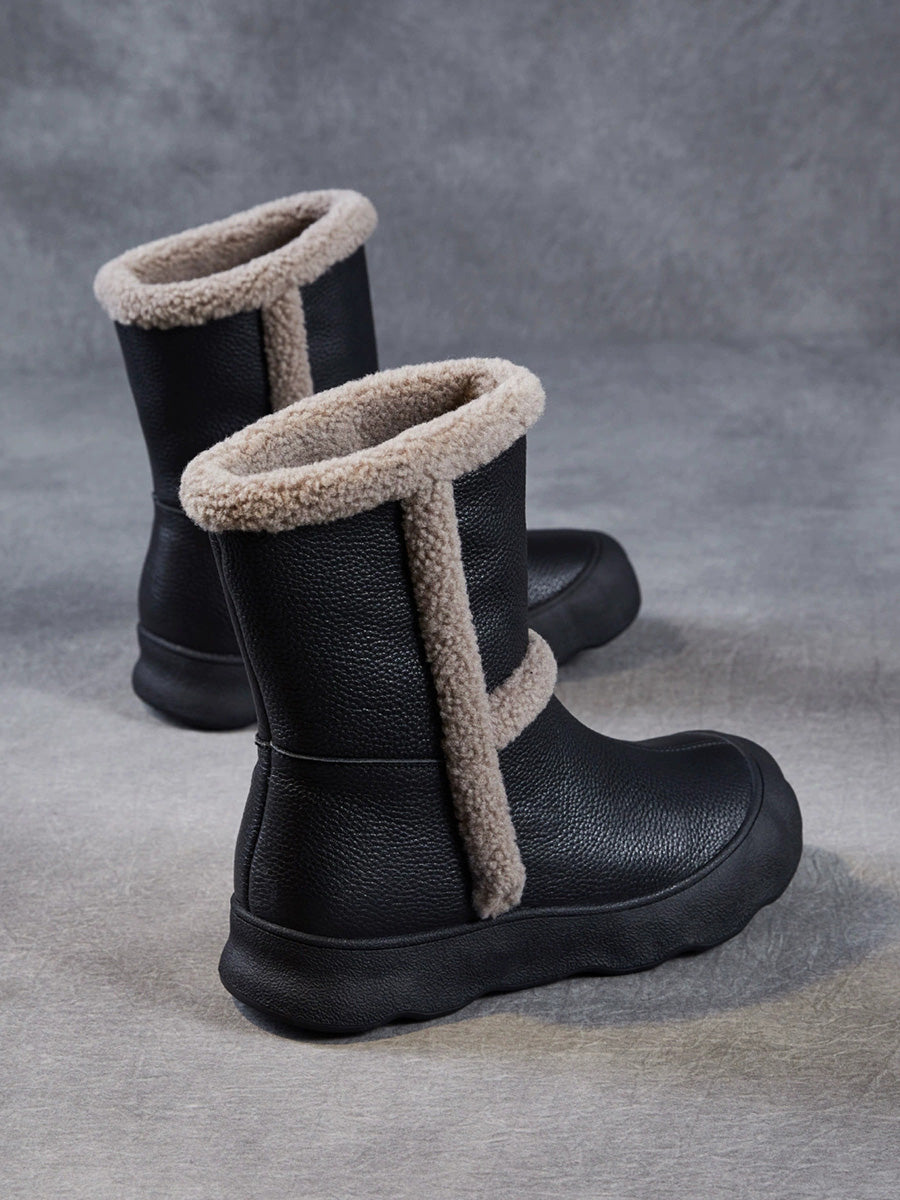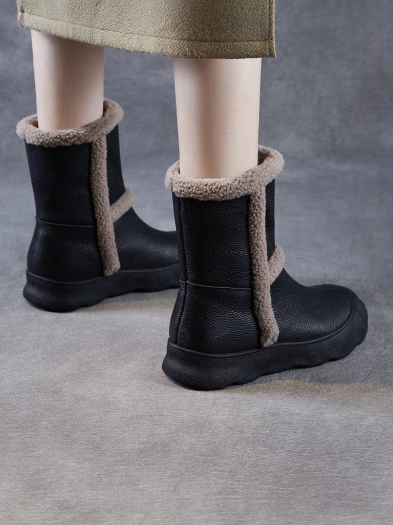 מגפי עור אמיתי וינטג' לנשים עם בטנת פליז