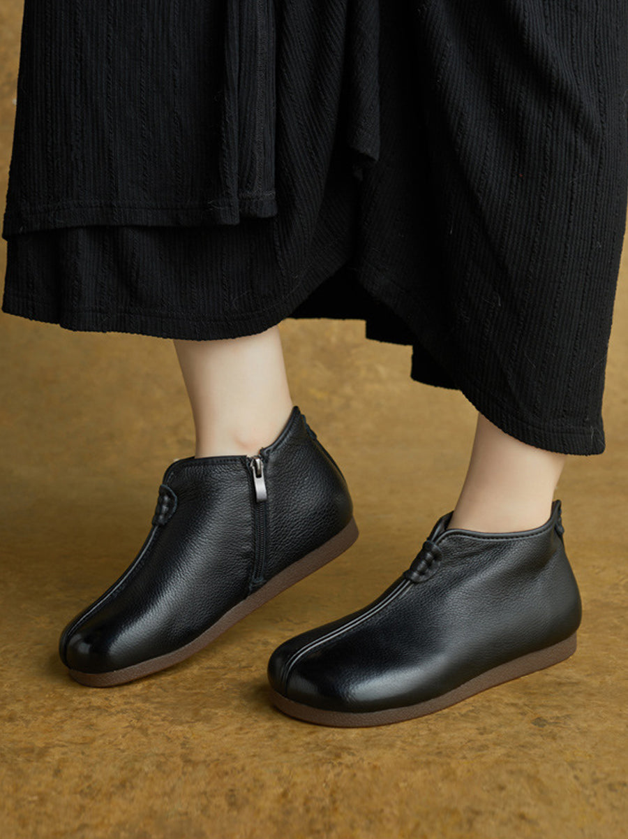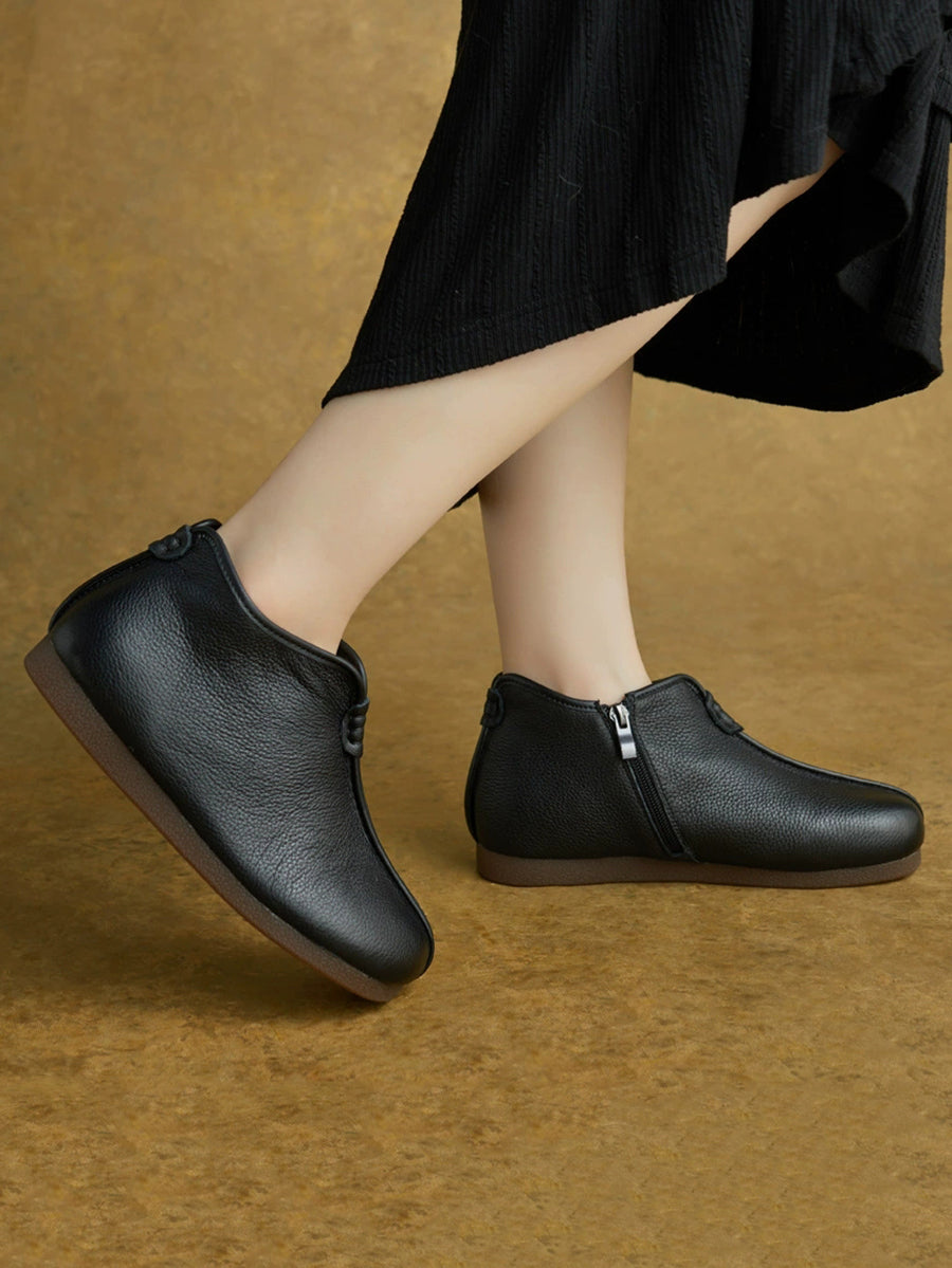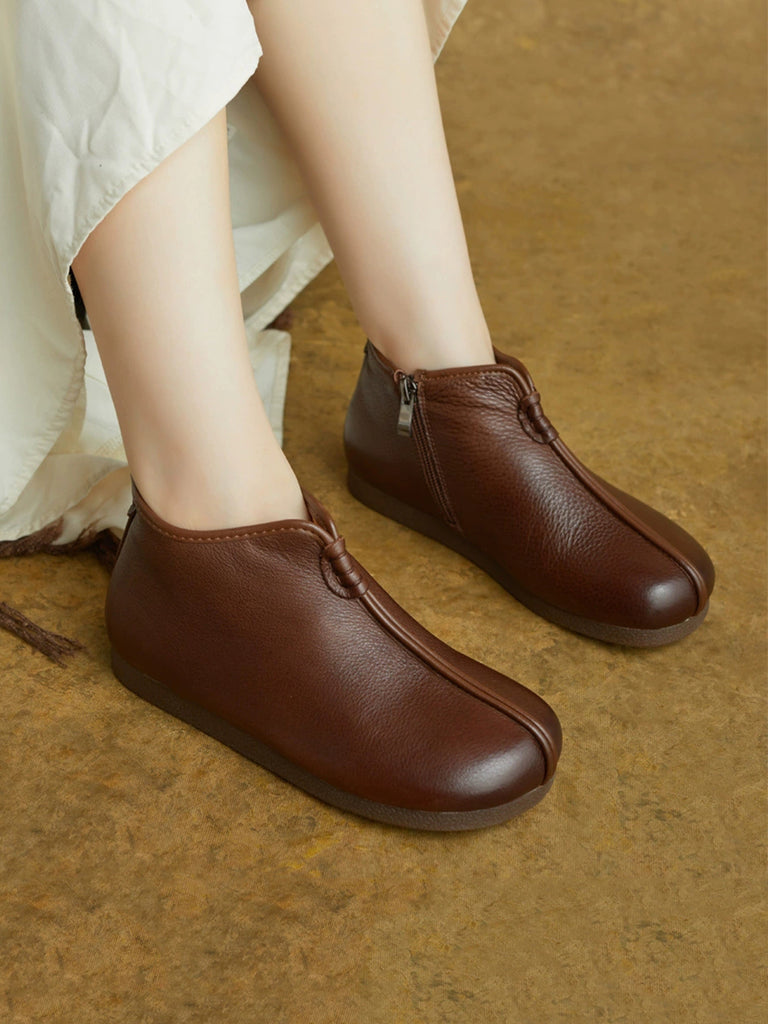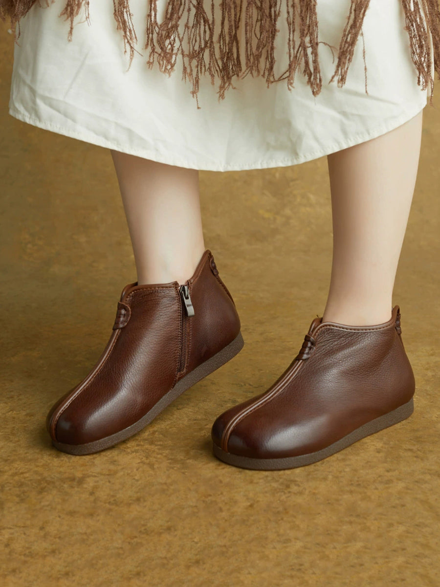 מגפי קרסול מעור אמיתי רטרו לחורף לנשים
