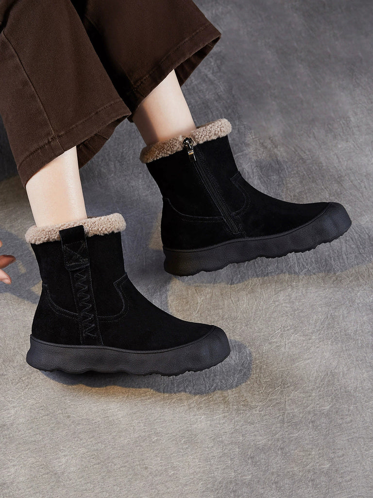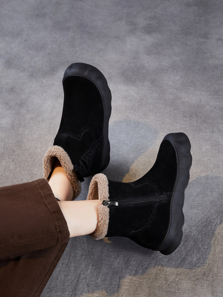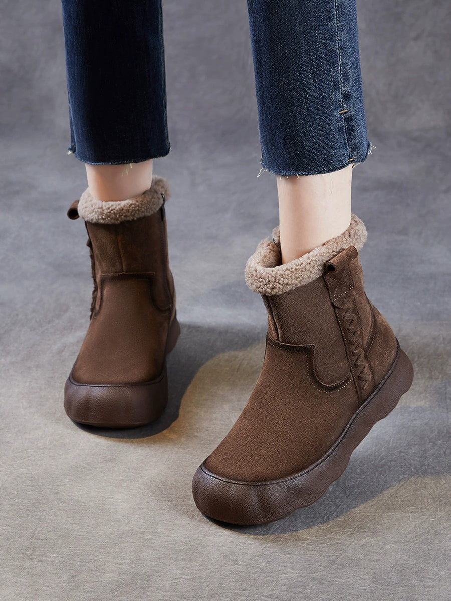 מגפי חורף וינטג' מעור עם בטנת פליז לנשים