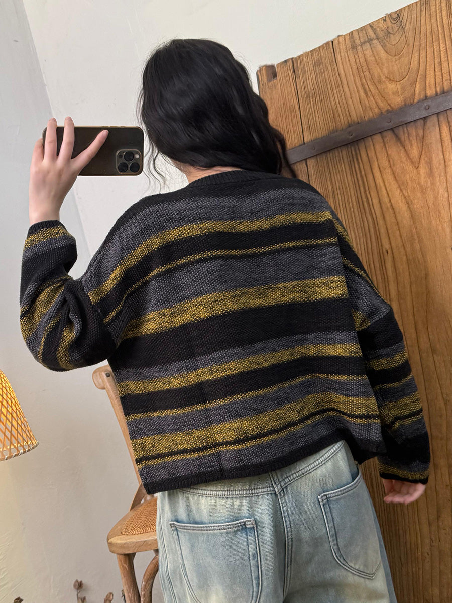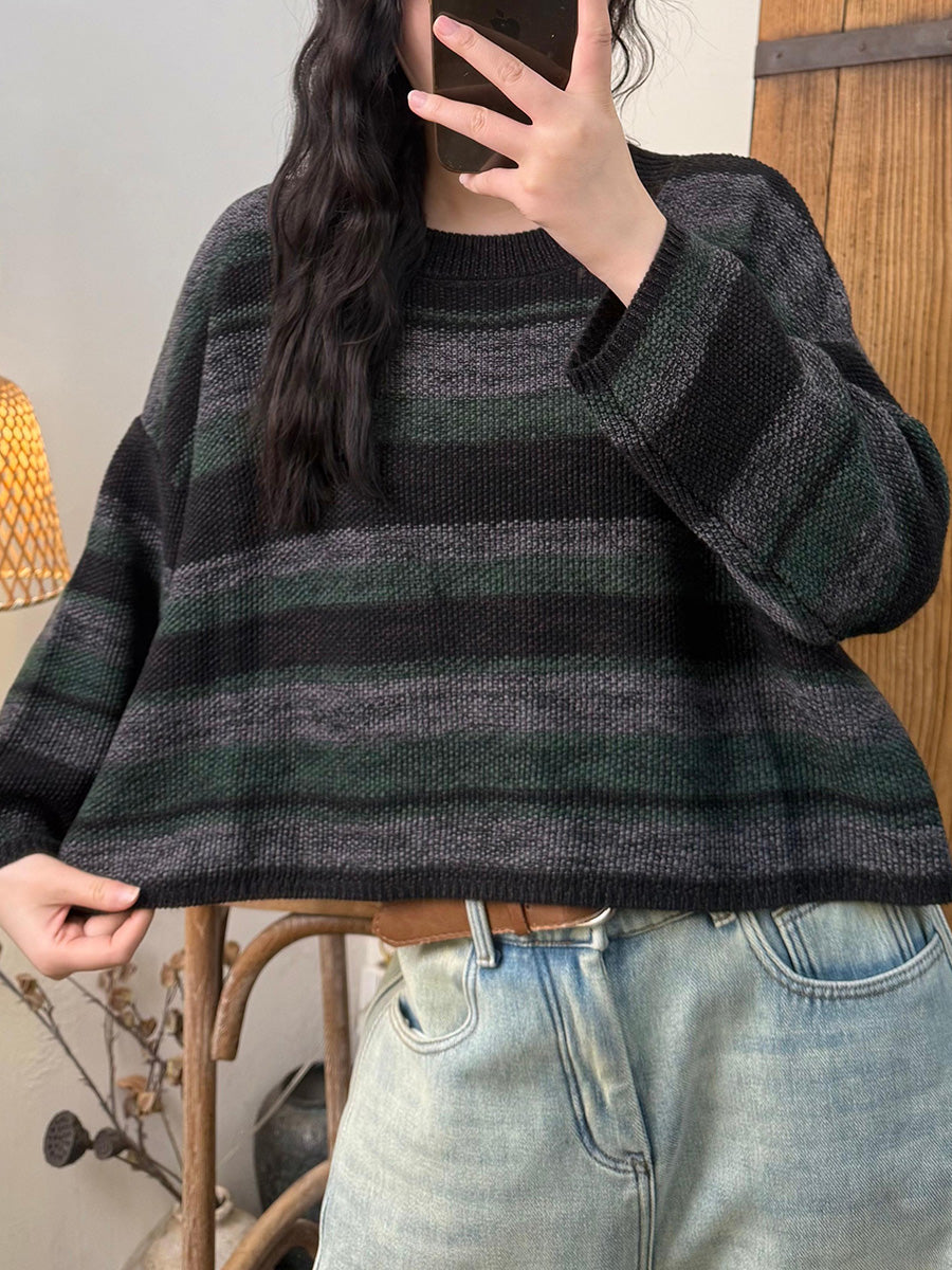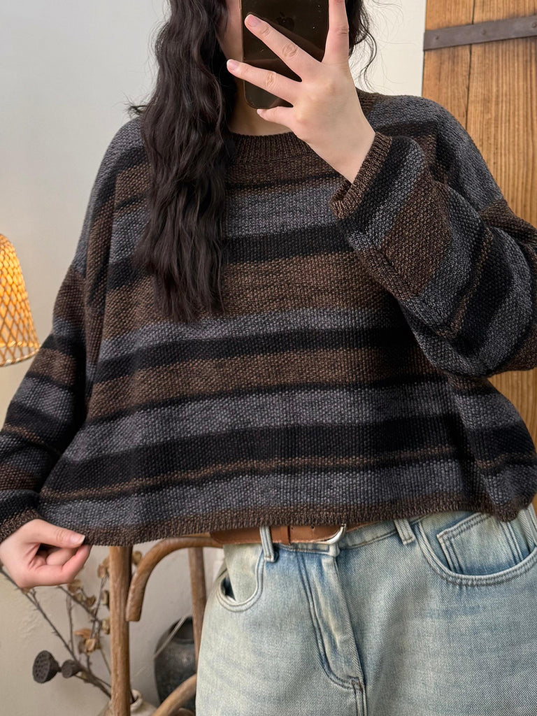 סוודר O-צוואר עם פסים בסגנון רטרו לנשים