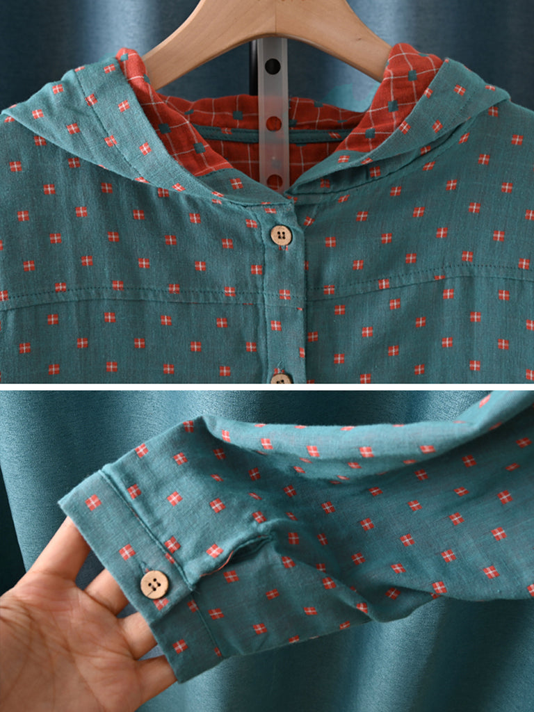 חולצת סתיו וינטג' משובצת עם קפוצ'ון 100% כותנה לנשים