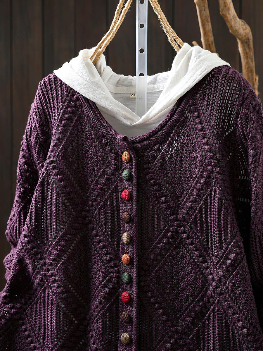 סוודר סרוג עם צווארון O וצווארון מעוינים בסגנון סתיו לנשים