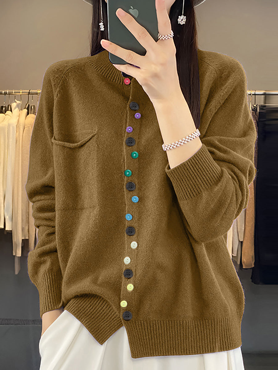נשים סתיו צמר O-Neck סוודר סריג בצבע טהור