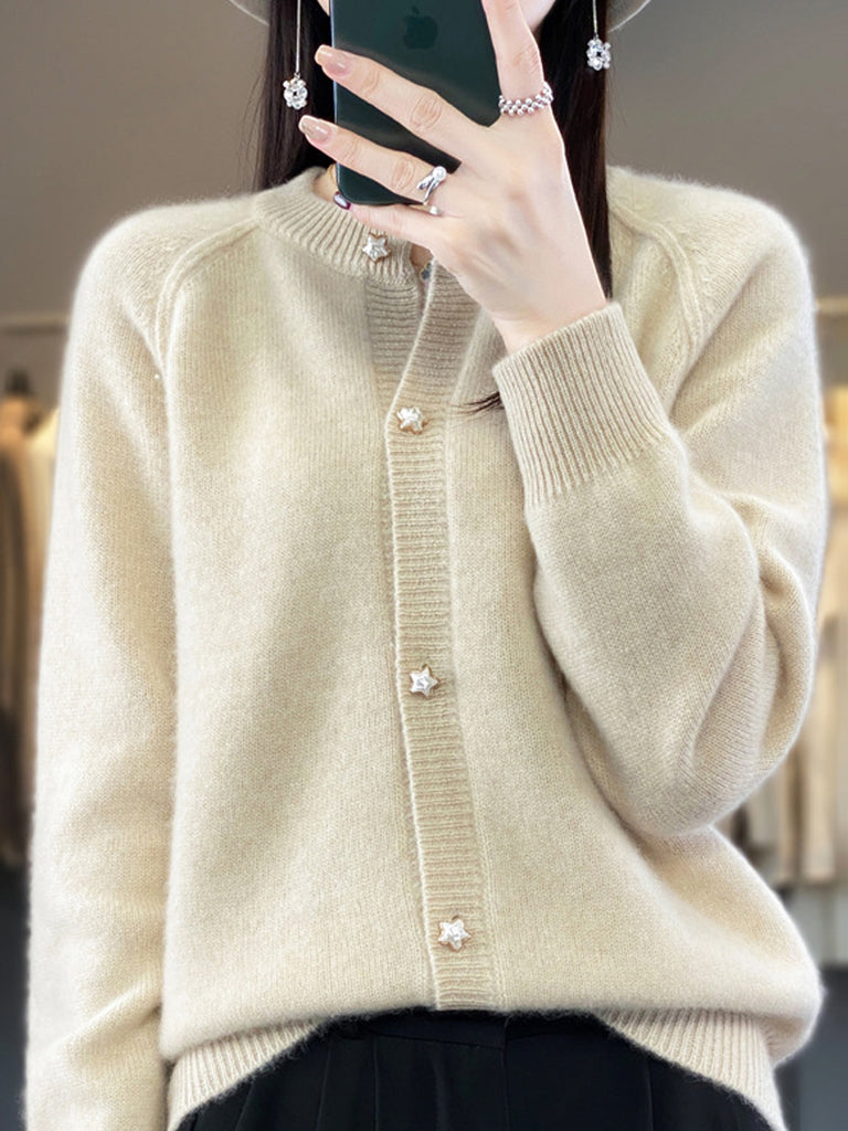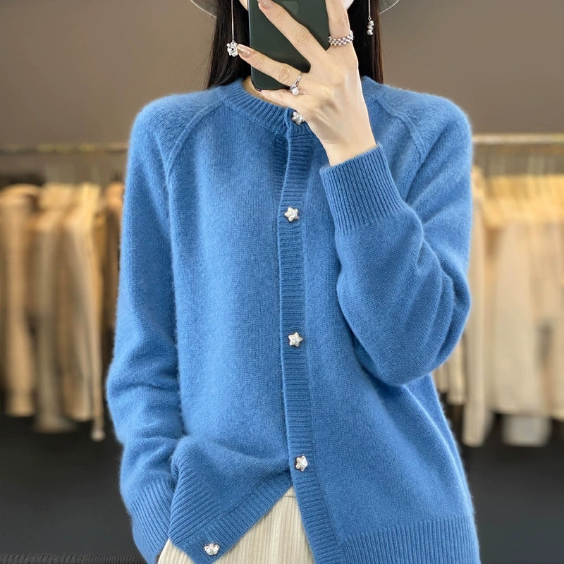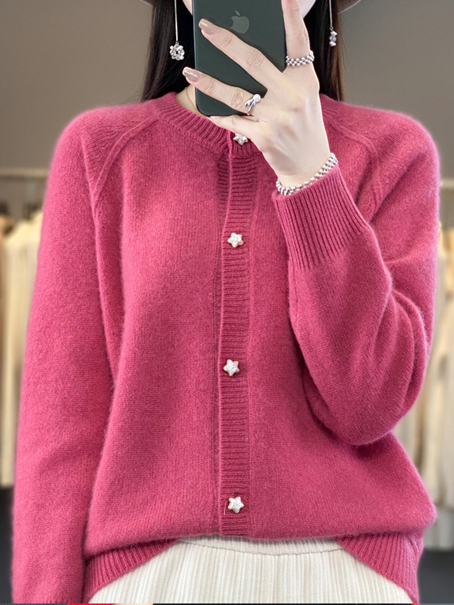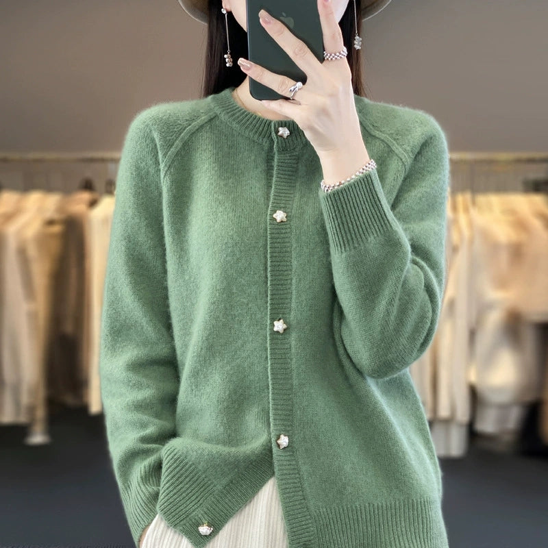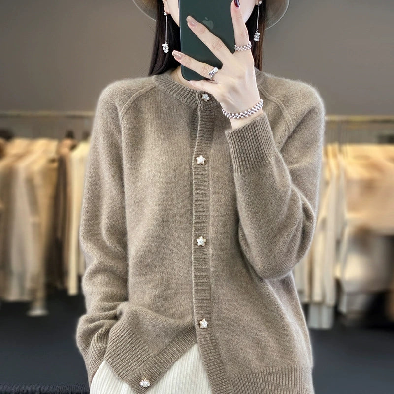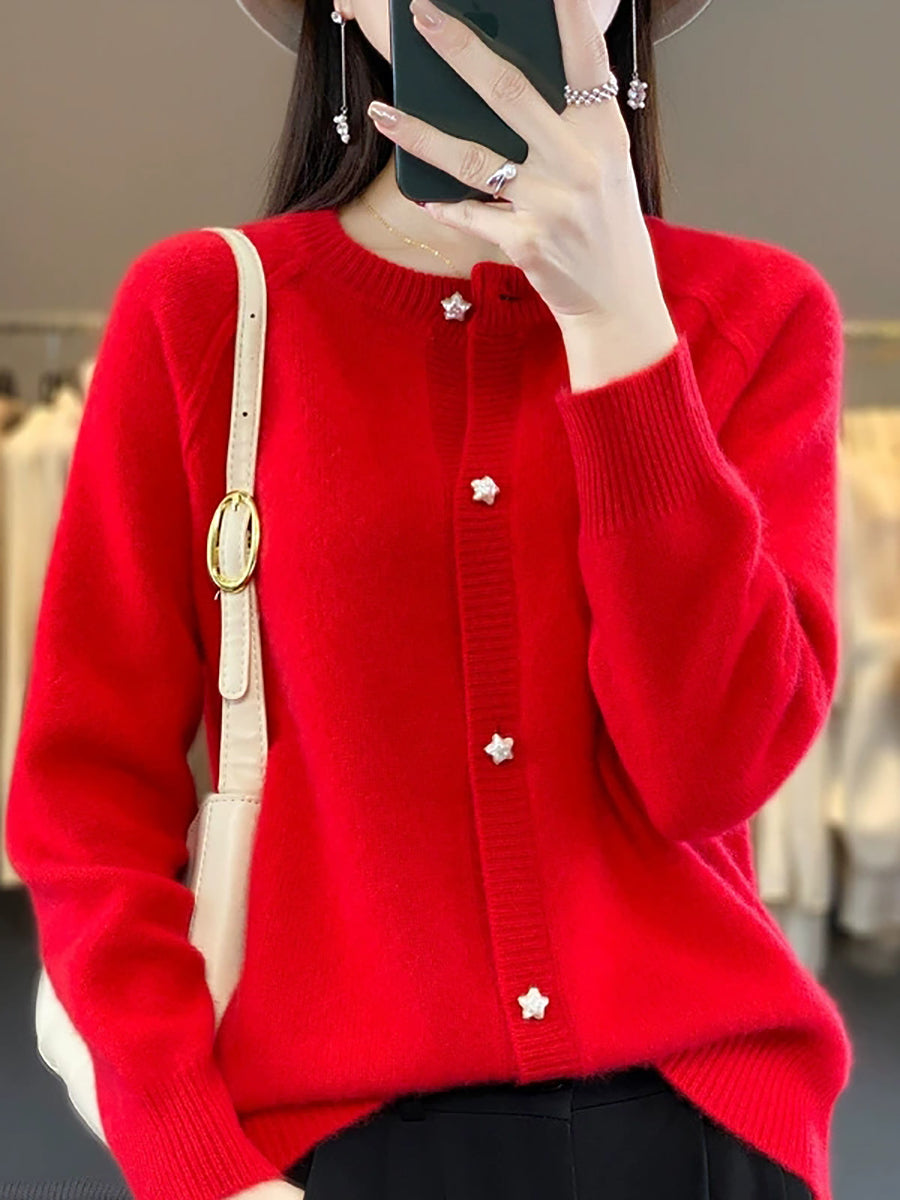 סוודר O-צוואר בצבע טהור לחורף לנשים
