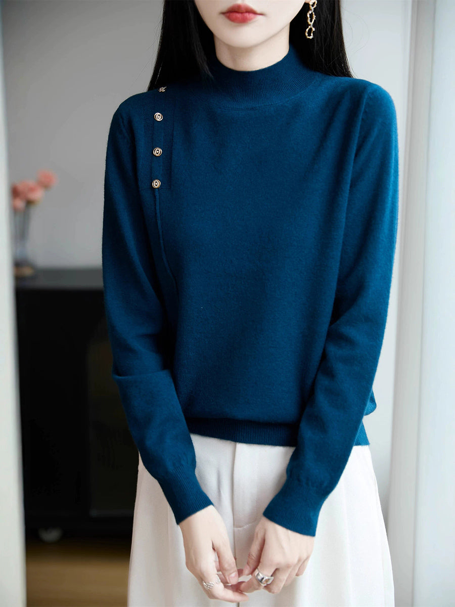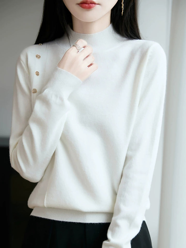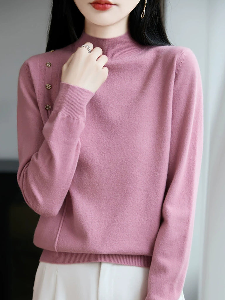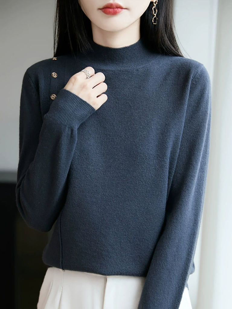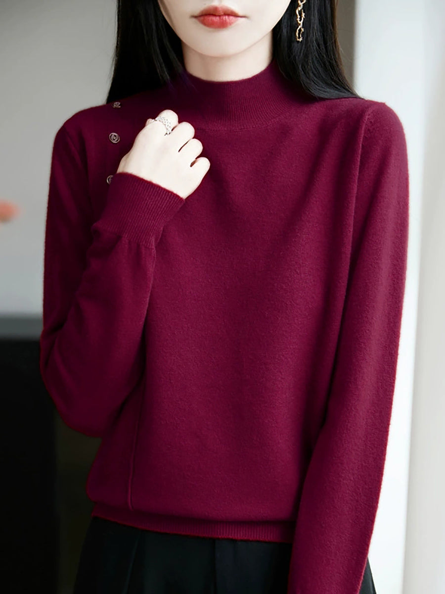 נשים חורף מזדמן טהור צבע חולצה עם צווארון גולף תחתון