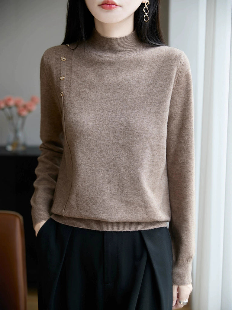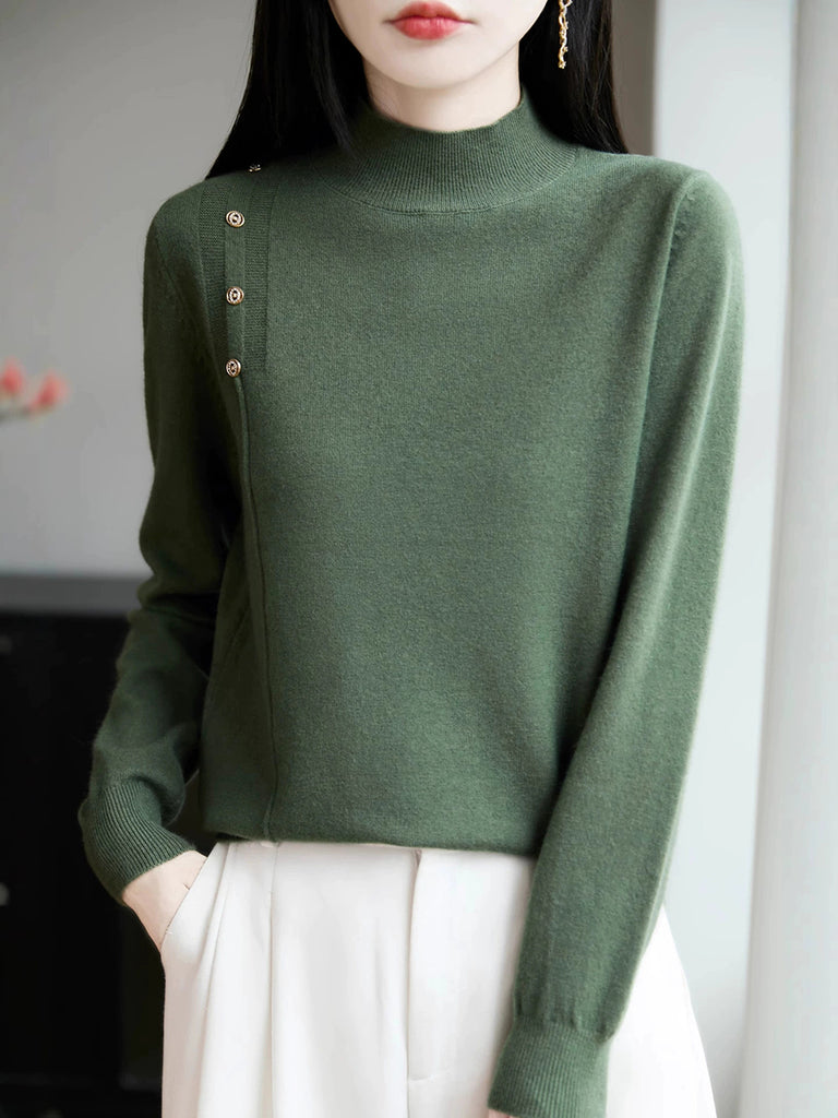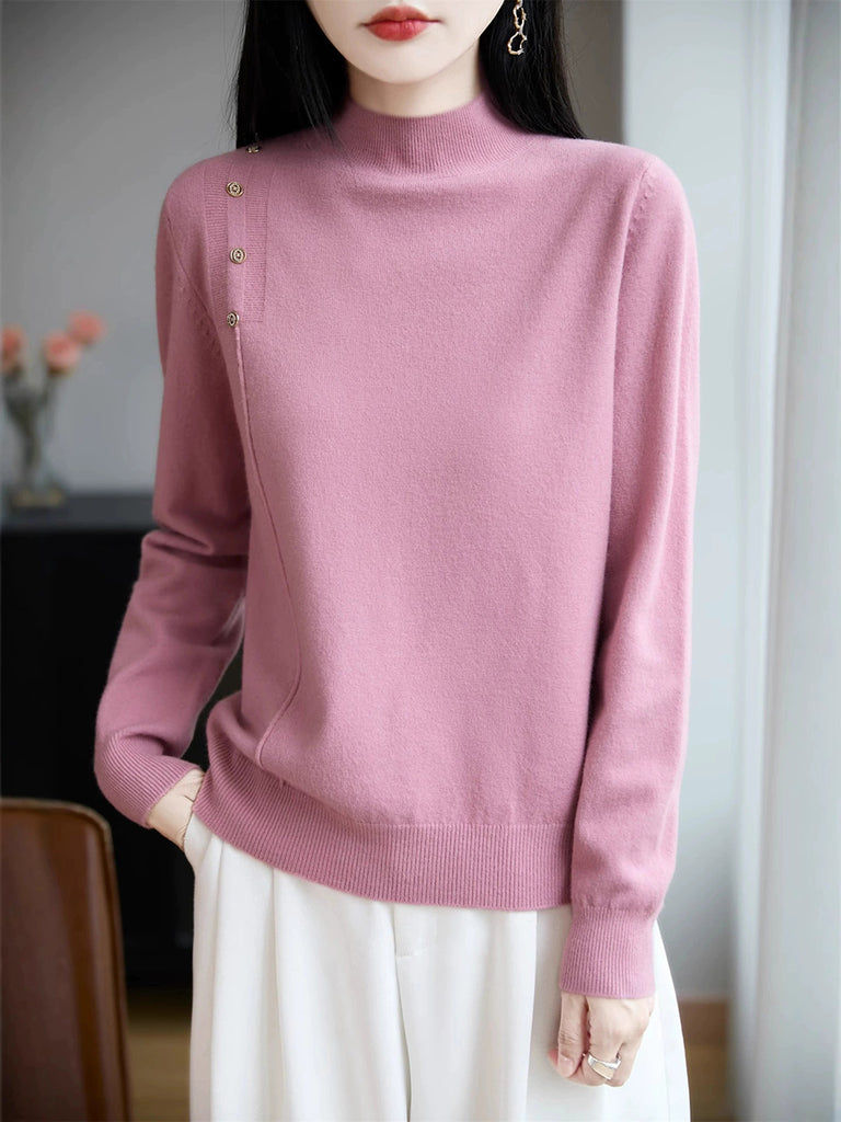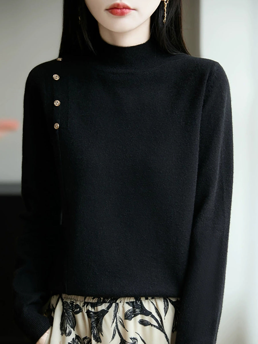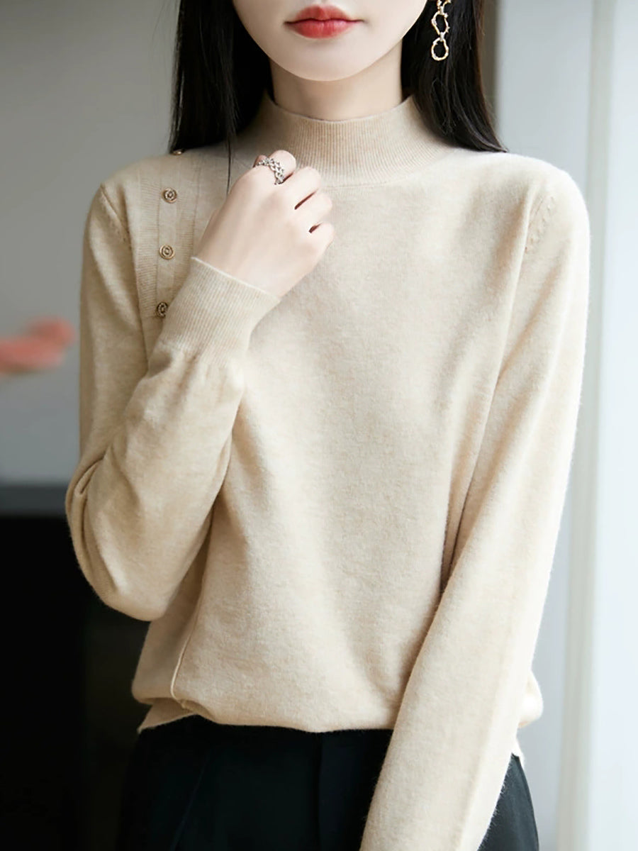 נשים חורף מזדמן טהור צבע חולצה עם צווארון גולף תחתון